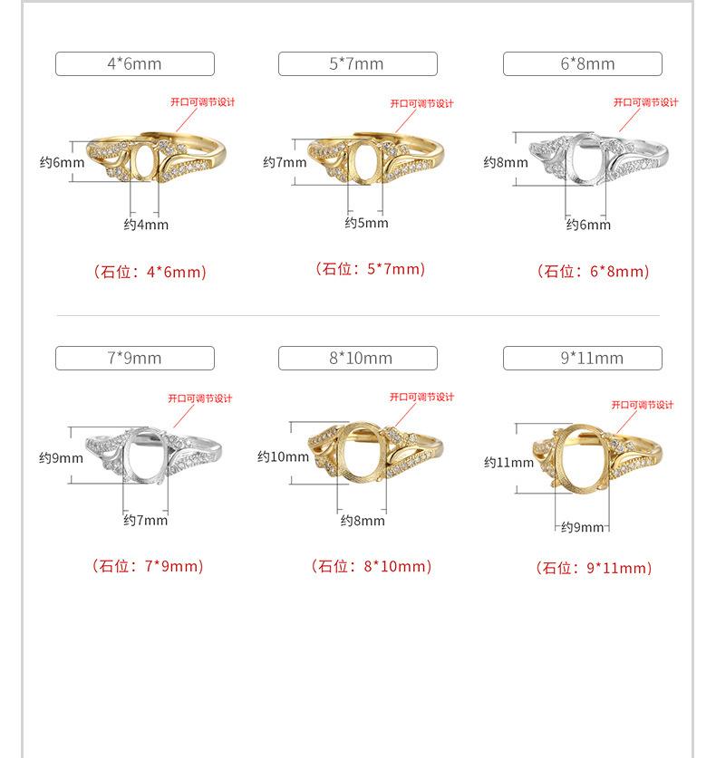 White gold -4*6mm, Gold -4*6mm, White gold -5*7mm, Gold -5*7mm, White gold -6*8mm, Gold -6*8mm, White gold -7*...