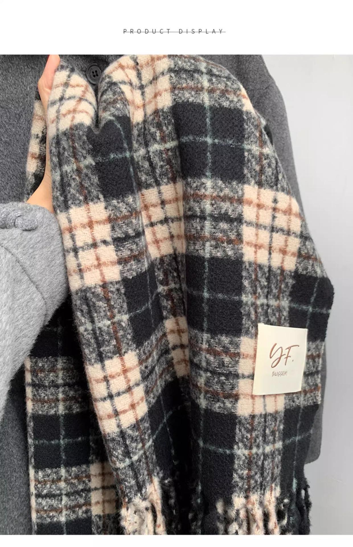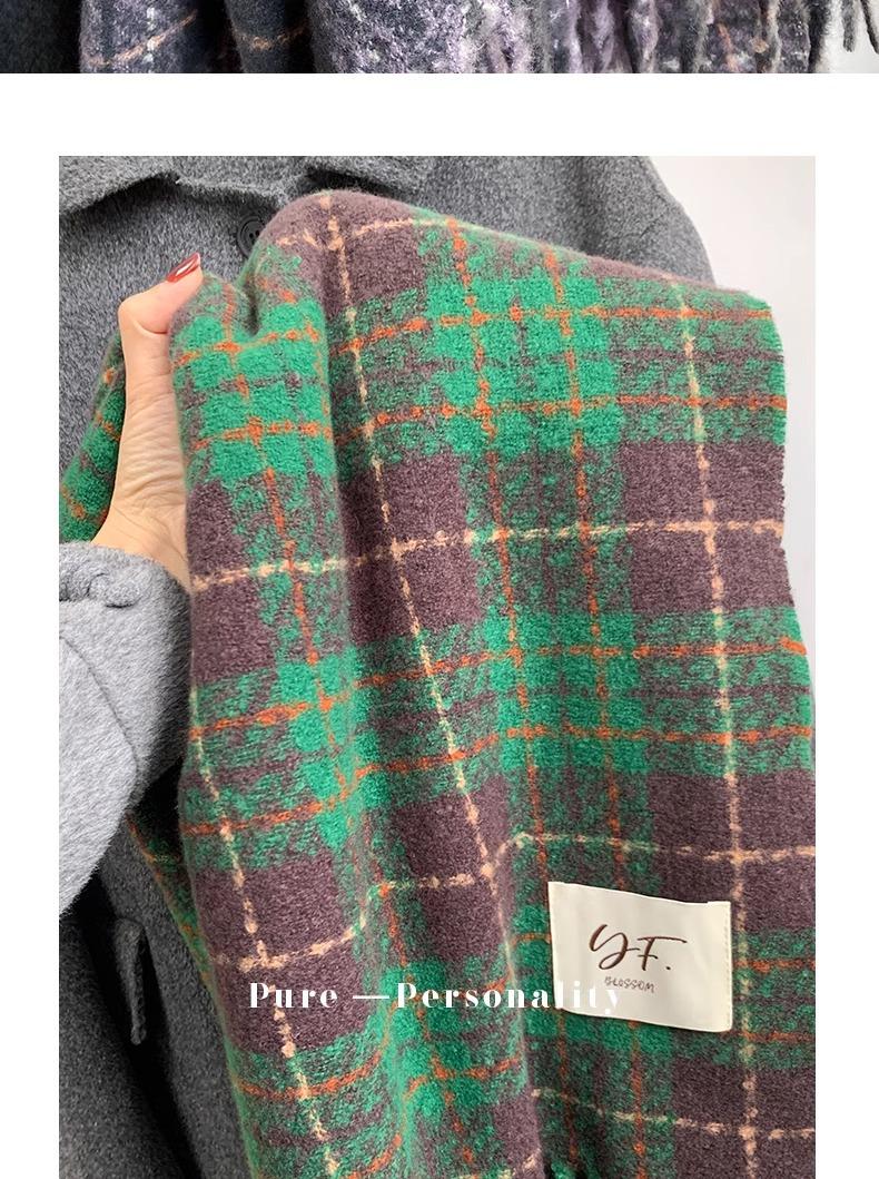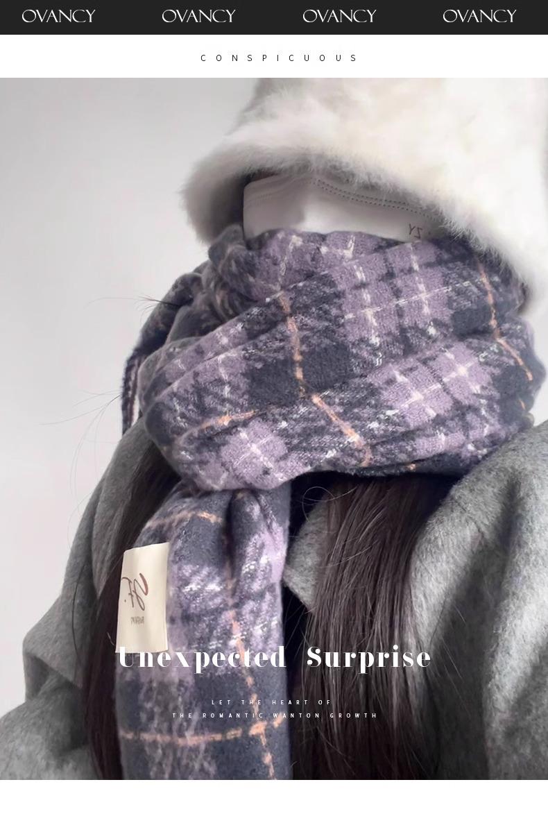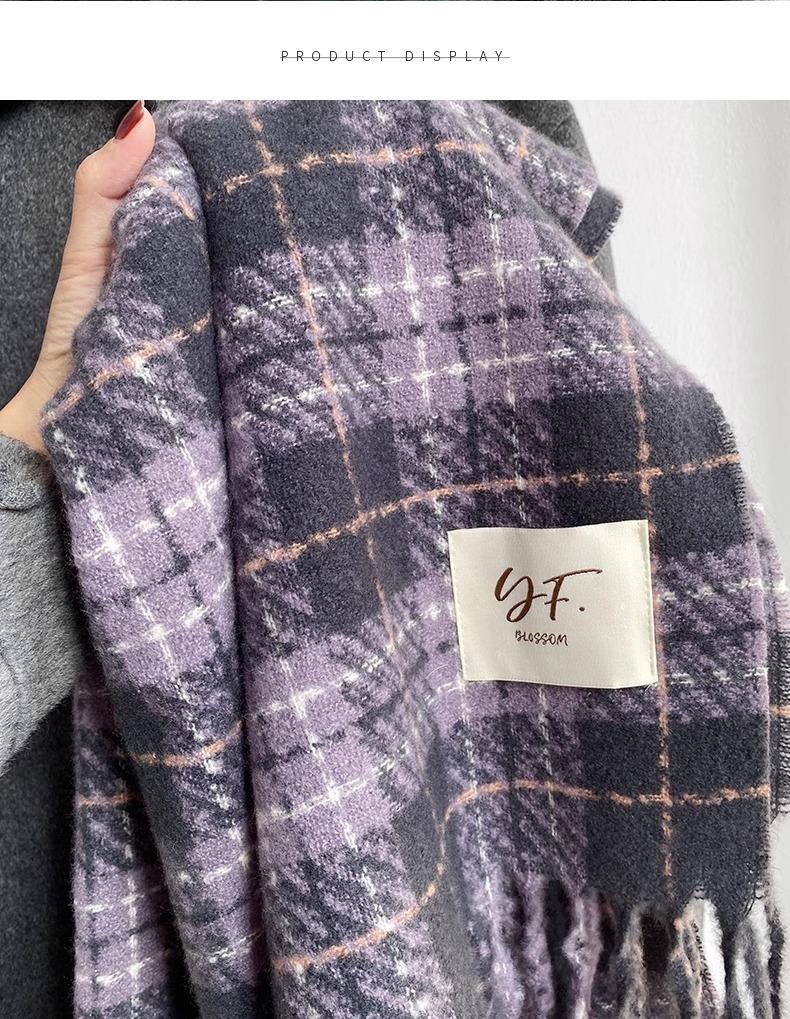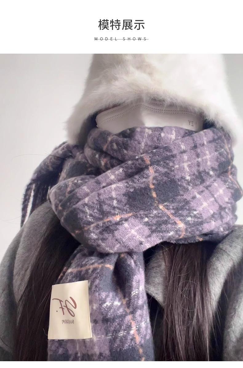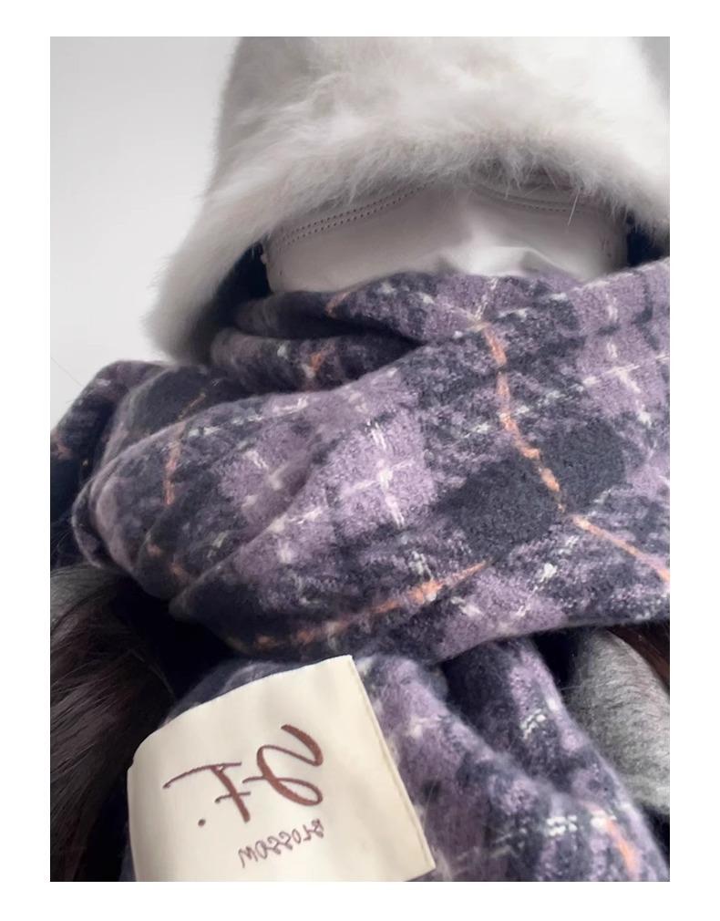 Bufanda púrpura taro de alta calidad para mujer invierno estilo coreano versátil chal a cuadros suave glutinoso retro bufanda gruesa y cálida para hombre