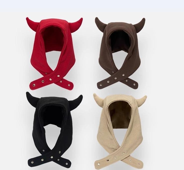 Devil horn Lei Feng hat-Black, Devil horn Lei Feng hat-Red, Devil horn Lei Feng hat-beige, Devil horn Lei Feng hat-Brown