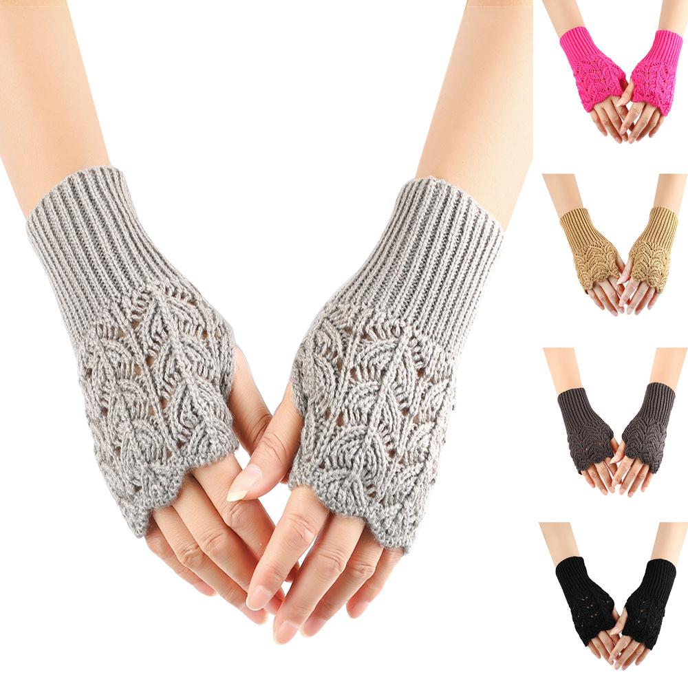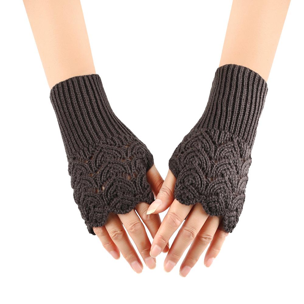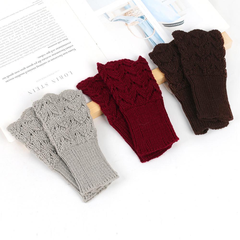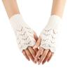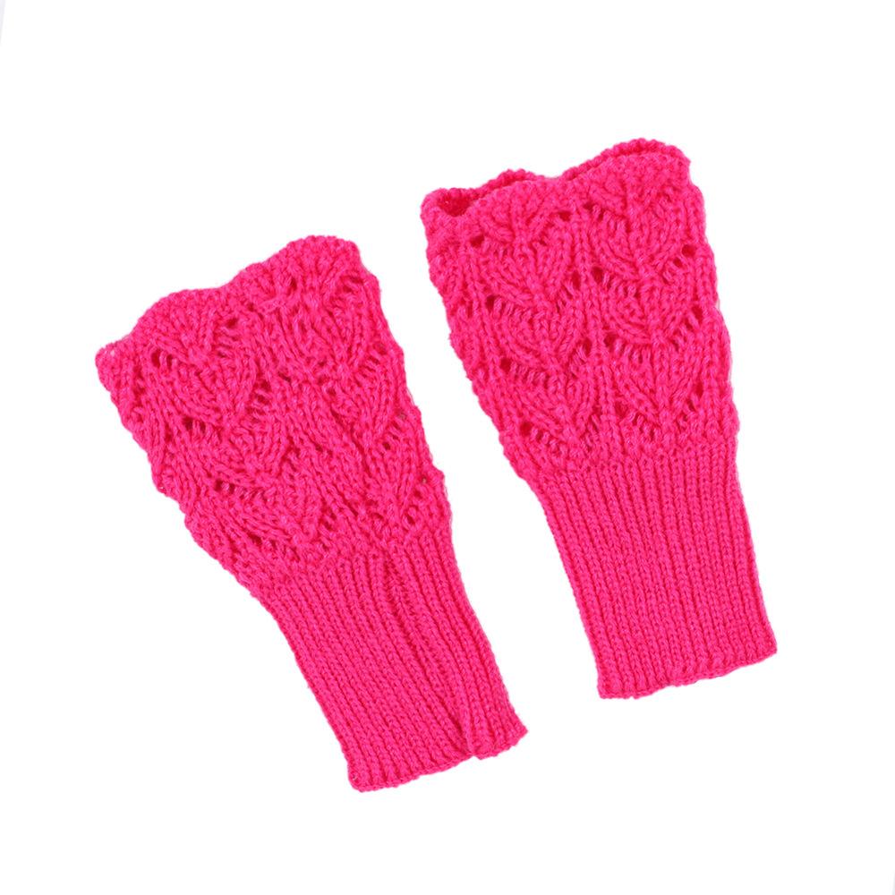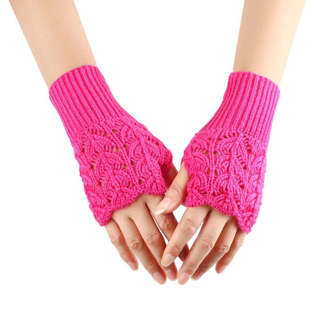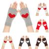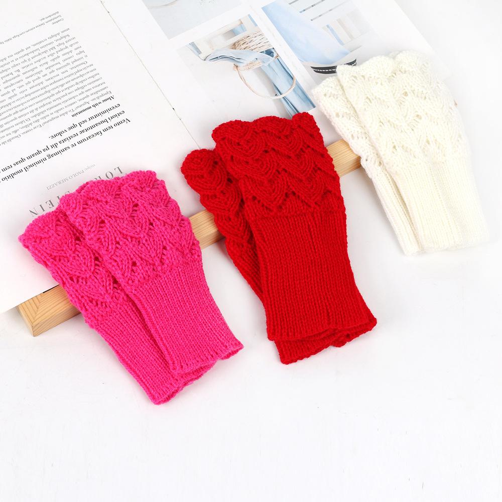 Guantes de lana con forma de corazón de melocotón hueco, guantes de punto con dedos perforados, guantes acrílicos cálidos con muñequera para otoño e invierno.