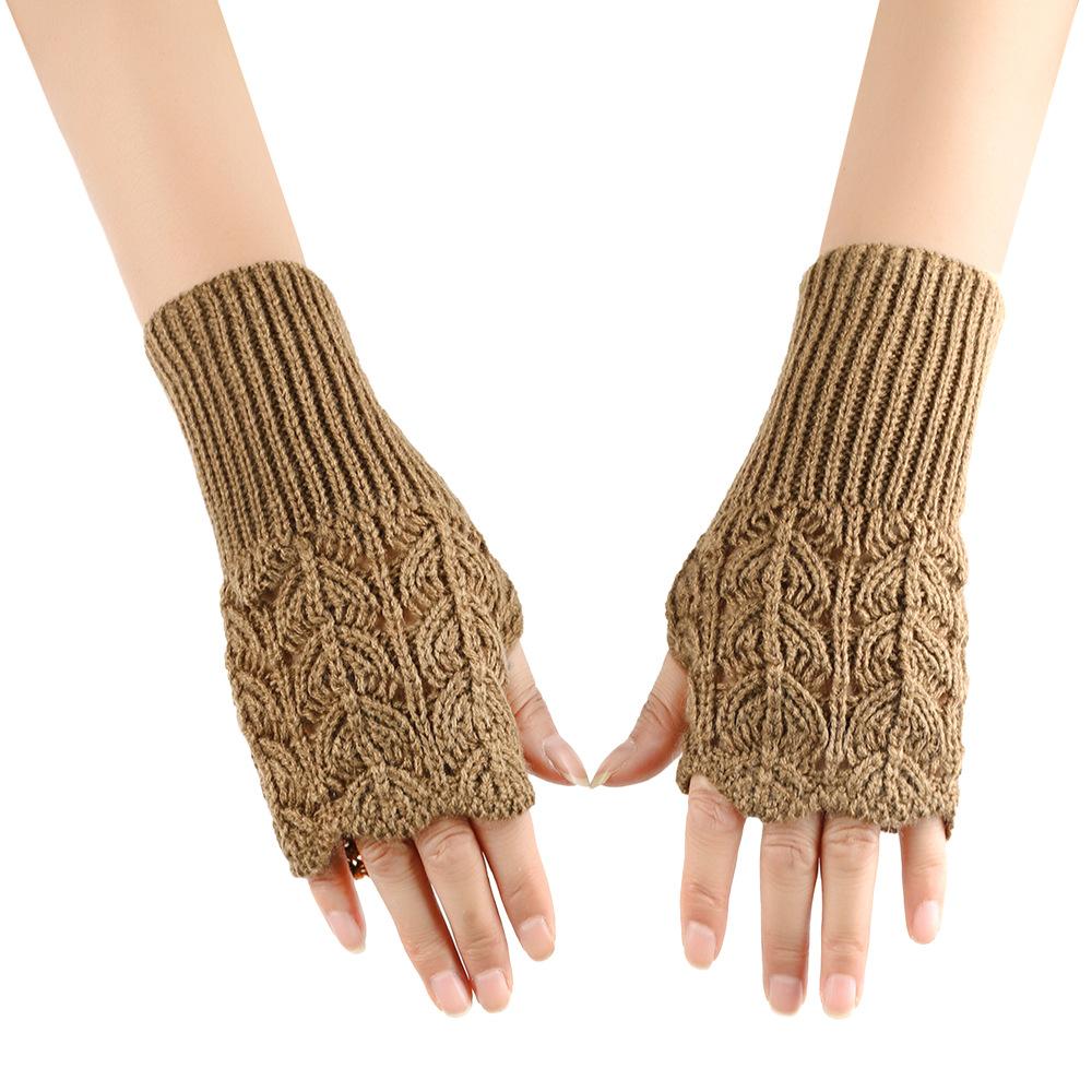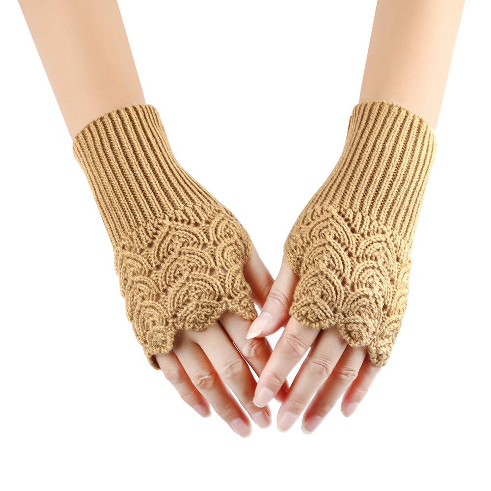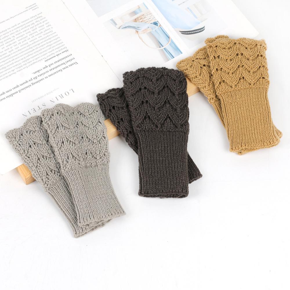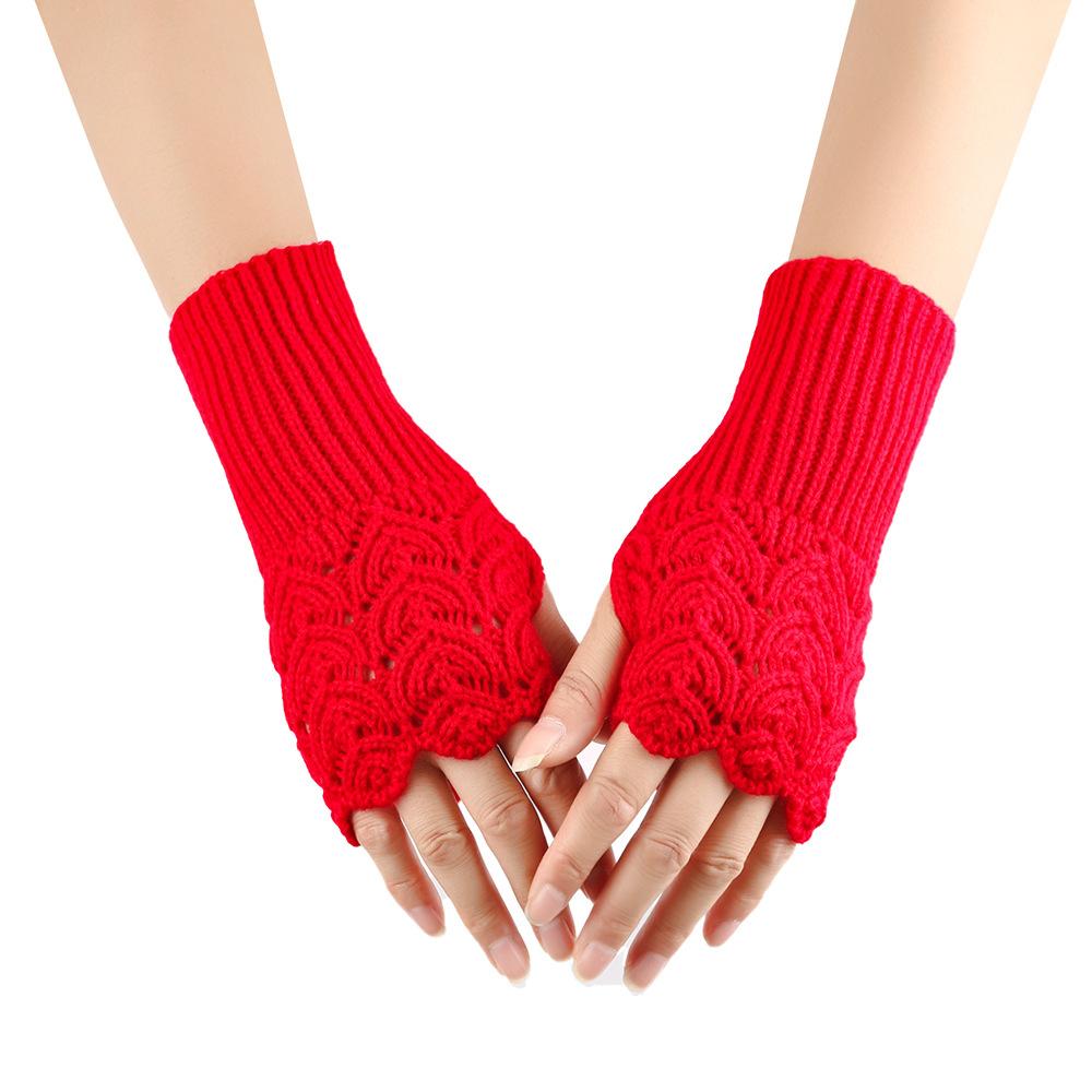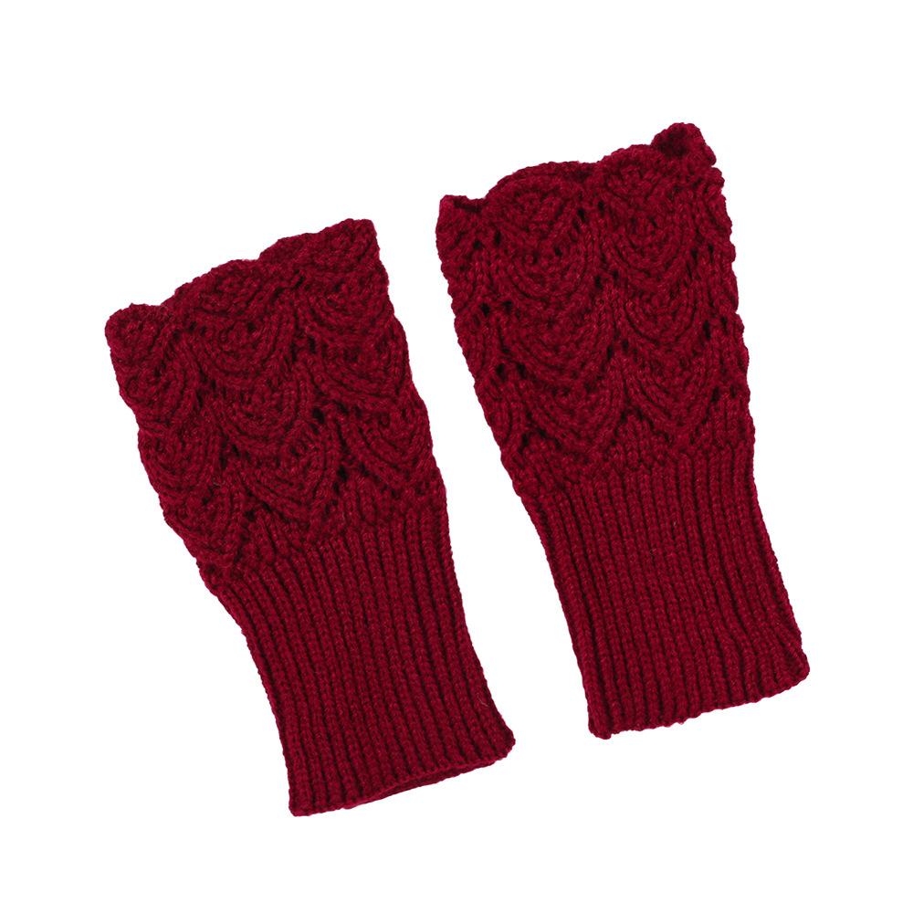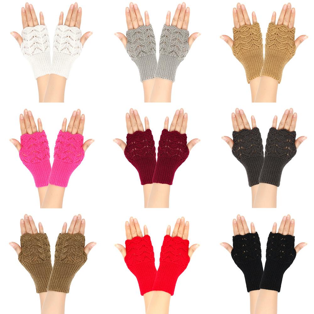 Guantes de lana con forma de corazón de melocotón hueco, guantes de punto con dedos perforados, guantes acrílicos cálidos con muñequera para otoño e invierno.