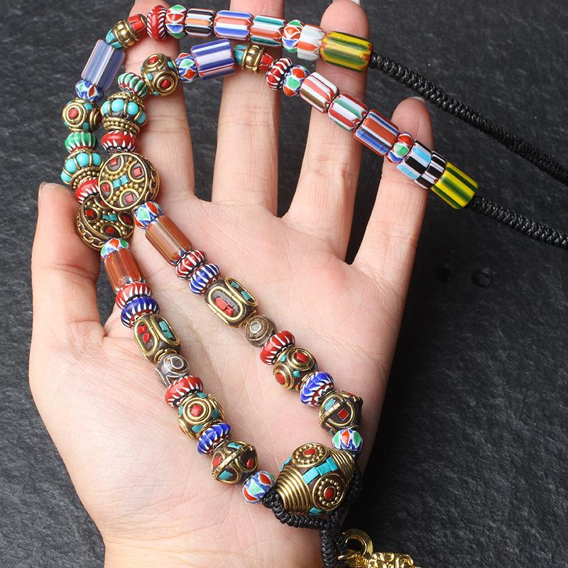 Cadena original de la marca Buddha tailandesa, collar vintage hecho a mano de Nepal, colgante bohemio Gawu Thangka con cuerda