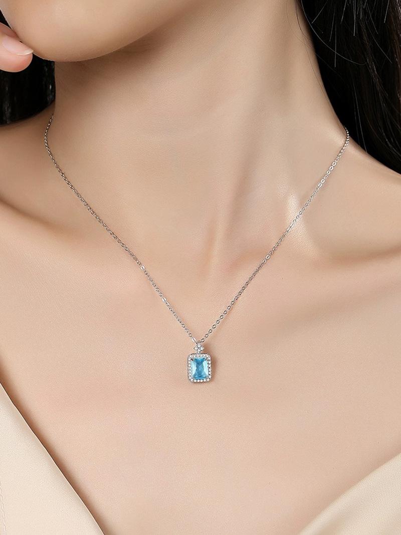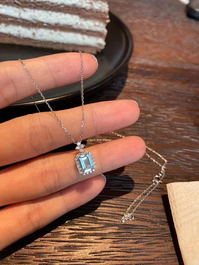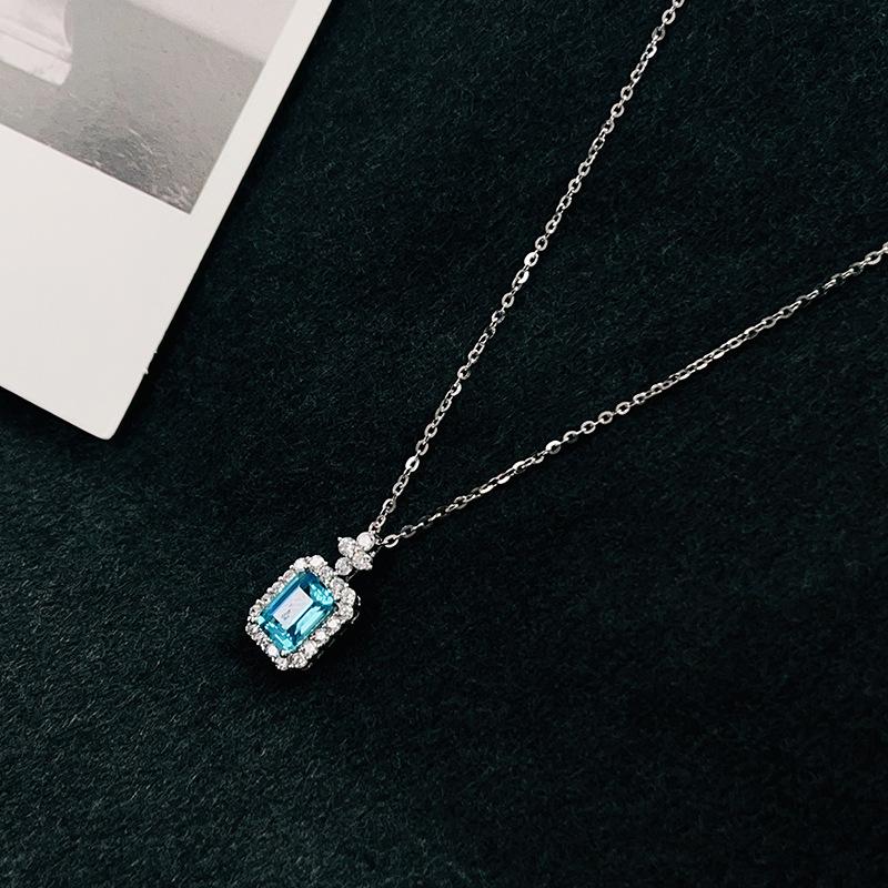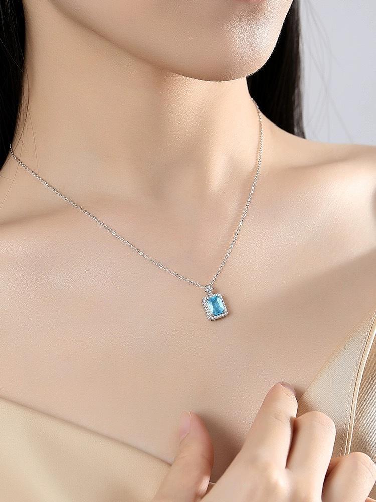 Collar con Colgante de Aguamarina de Plata de Ley S925 Transfronterizo para Mujer, Cadena de Collar de Botella de Perfume Francés con Incrustaciones de Diamantes de Verano que No se Desvanece