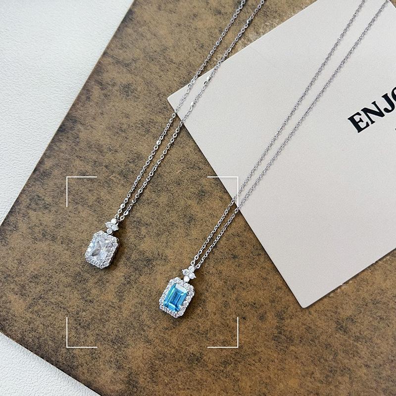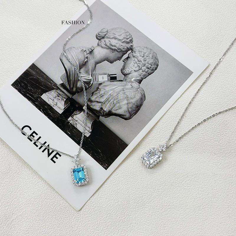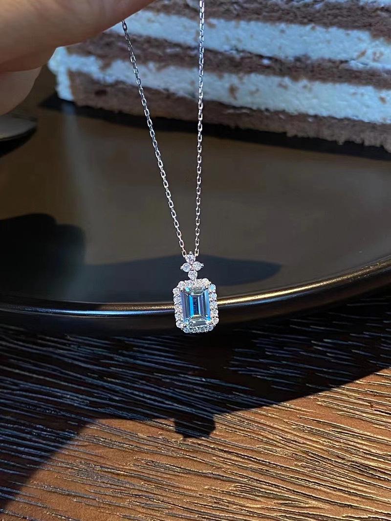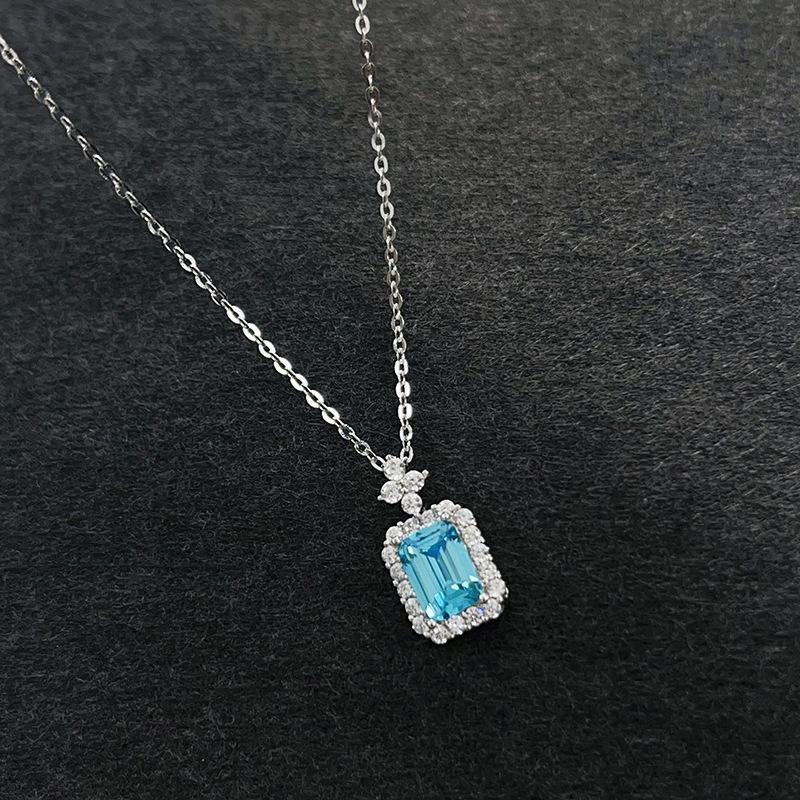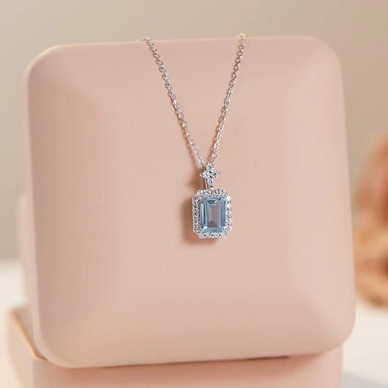 Collar con Colgante de Aguamarina de Plata de Ley S925 Transfronterizo para Mujer, Cadena de Collar de Botella de Perfume Francés con Incrustaciones de Diamantes de Verano que No se Desvanece