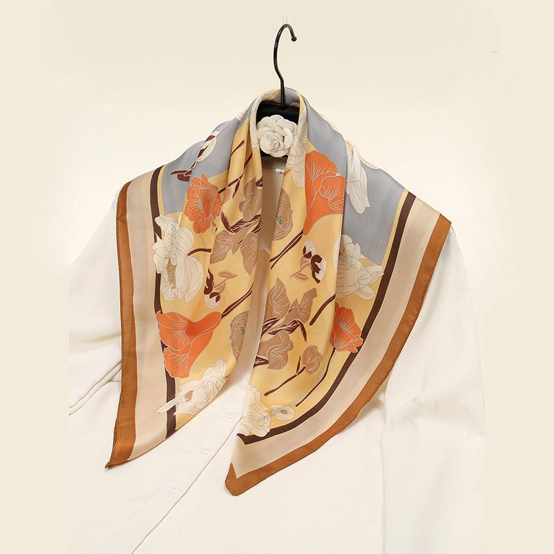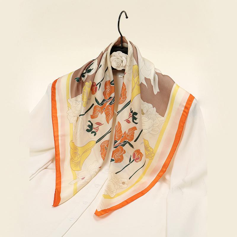 Pañuelo de seda pequeño con estampado de verano y otoño para mujer, pequeño, largo, de alta gama, estilo francés, cuadrado, para atar y atar.