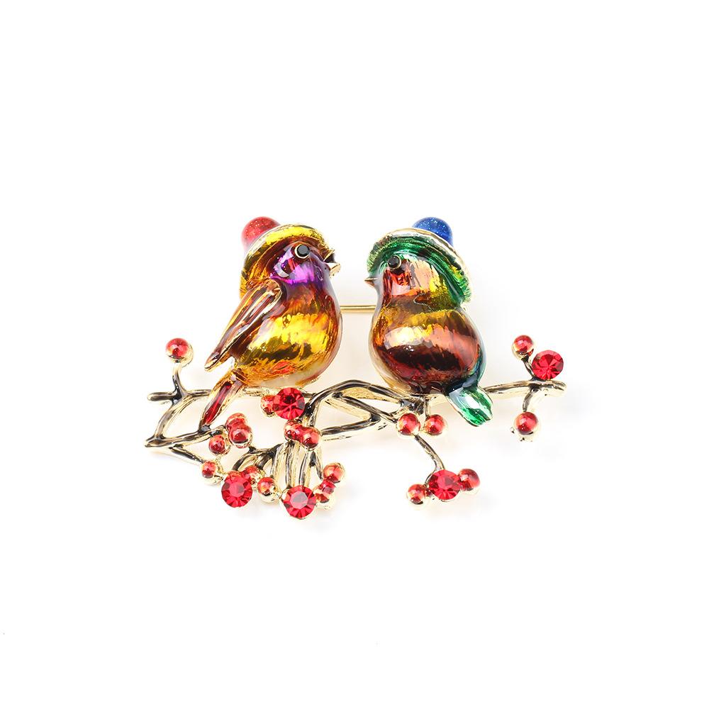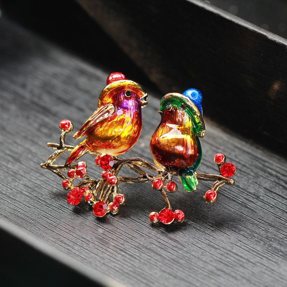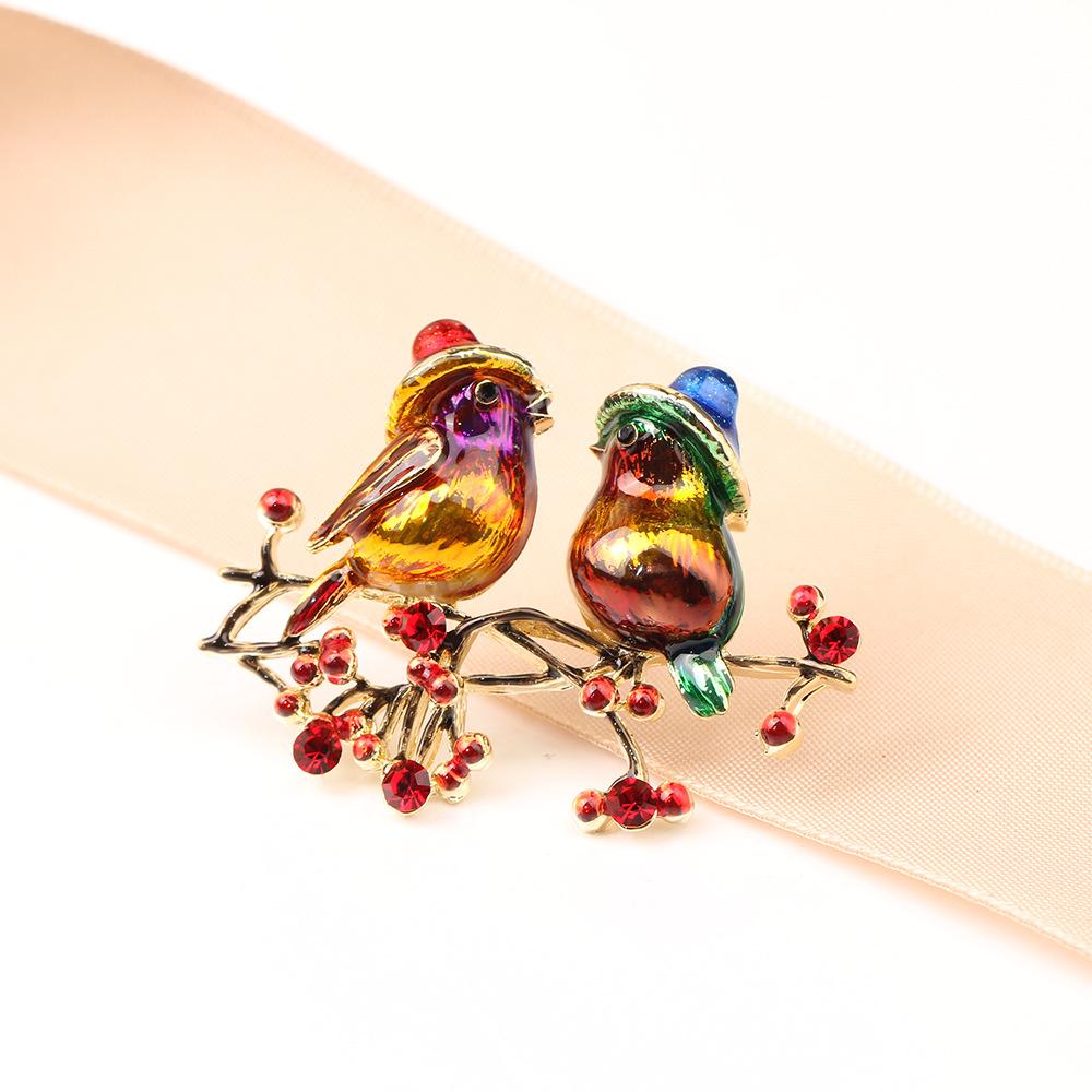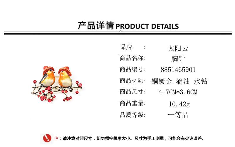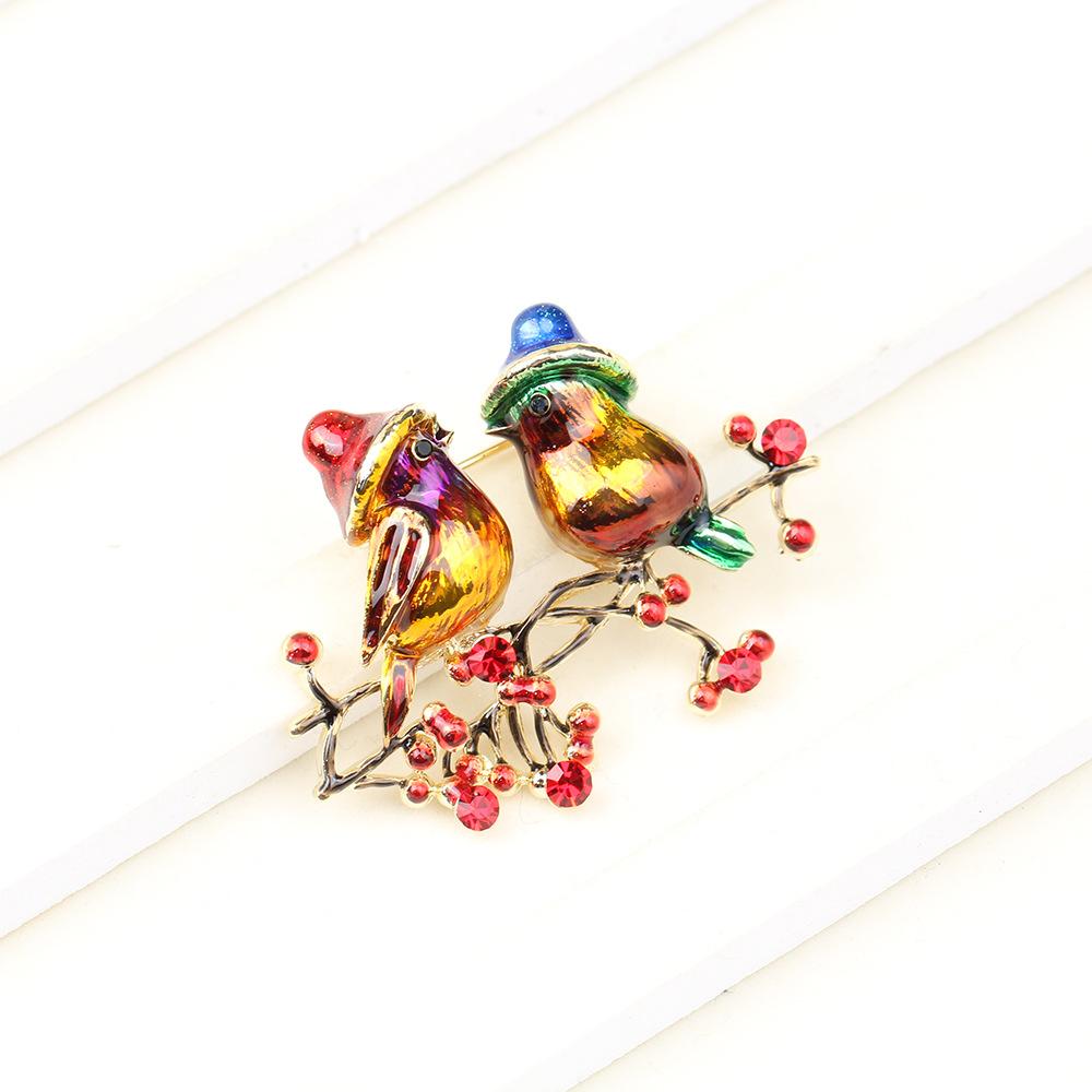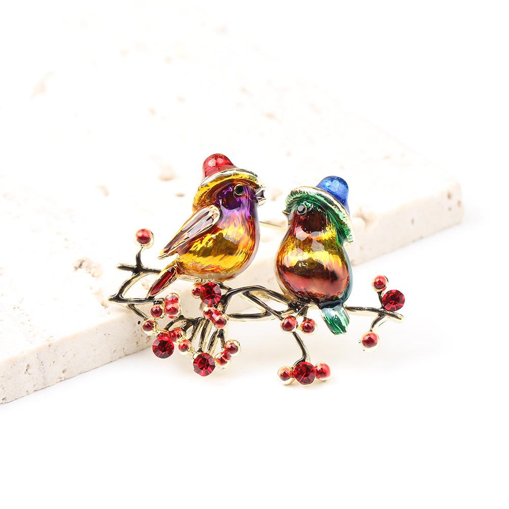 Broche de pájaro amoroso de dos colores con forma de gota de aceite y nube de sol, con personalidad sencilla, pequeños alfileres de animales, venta al por mayor mixta