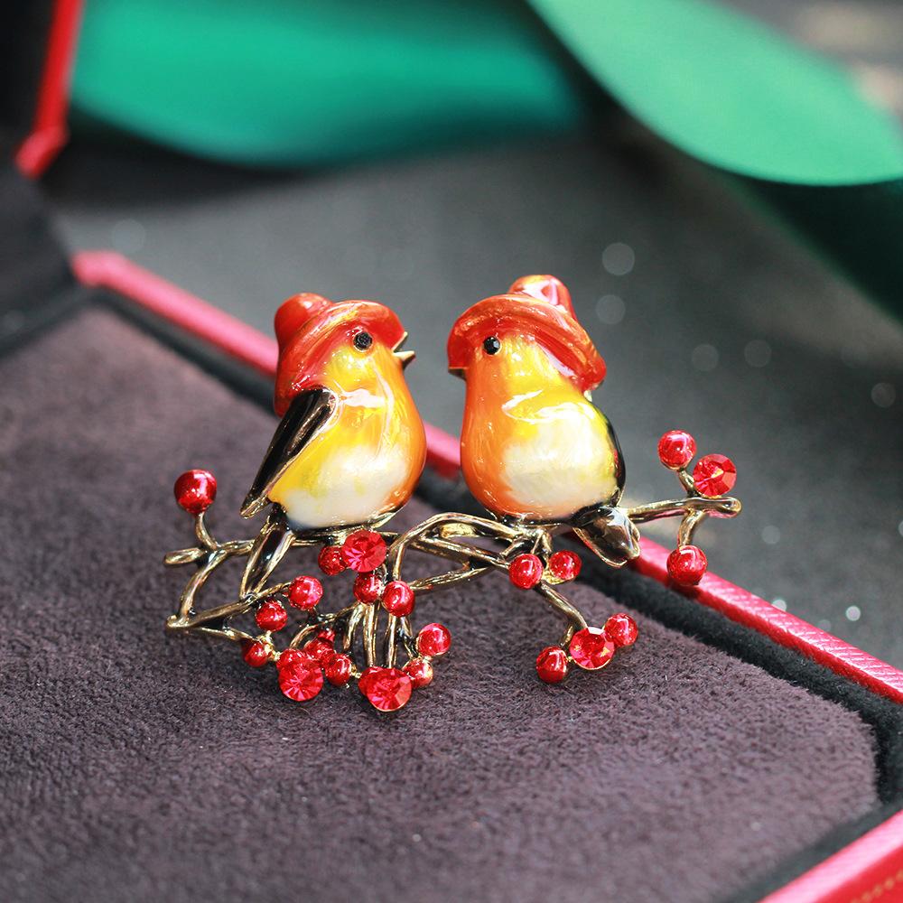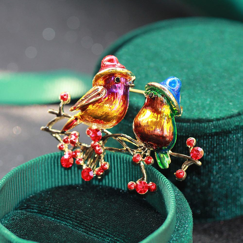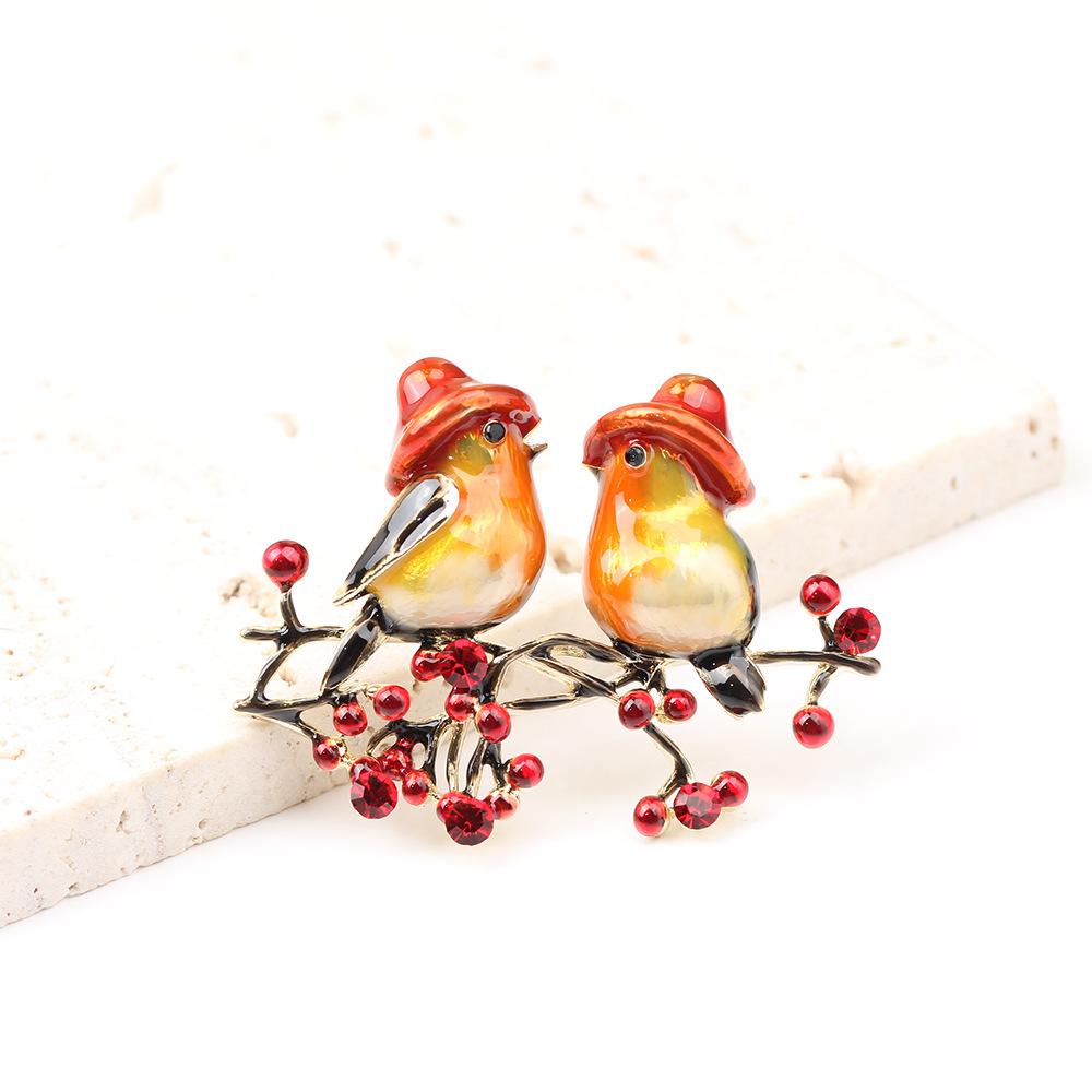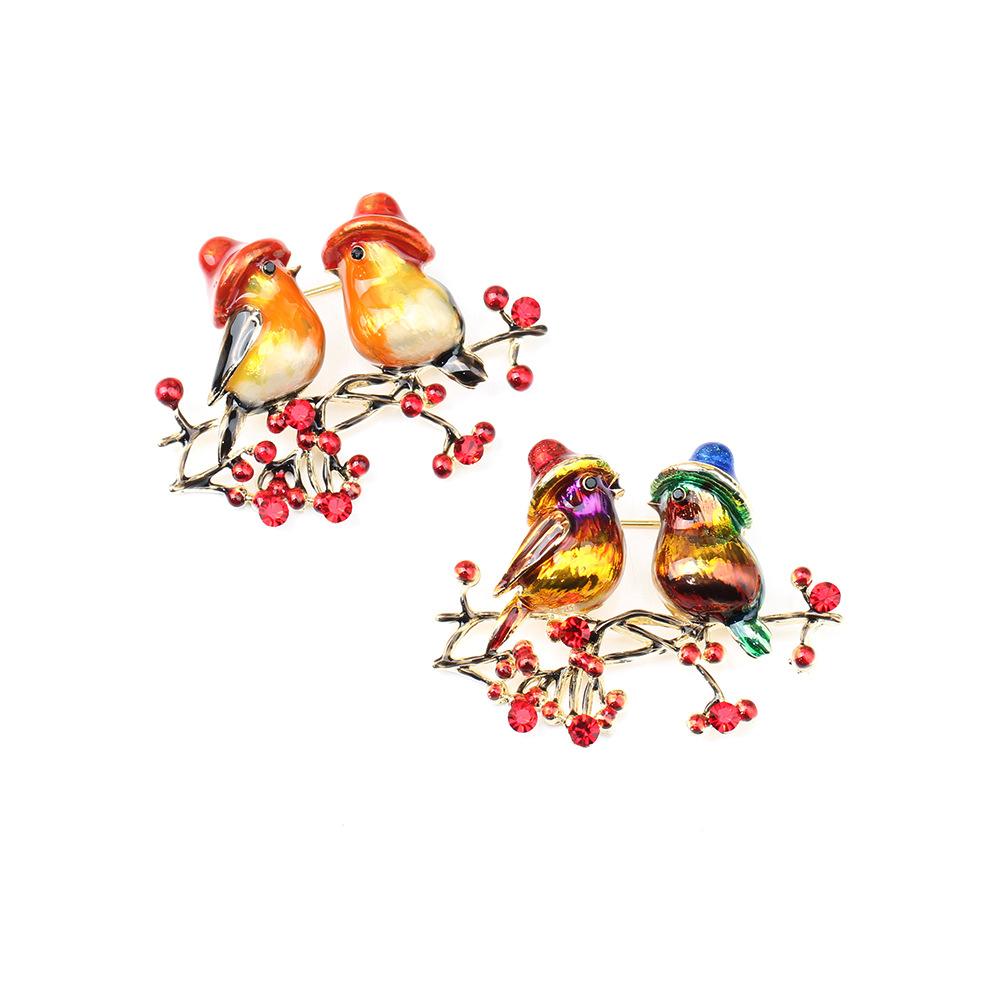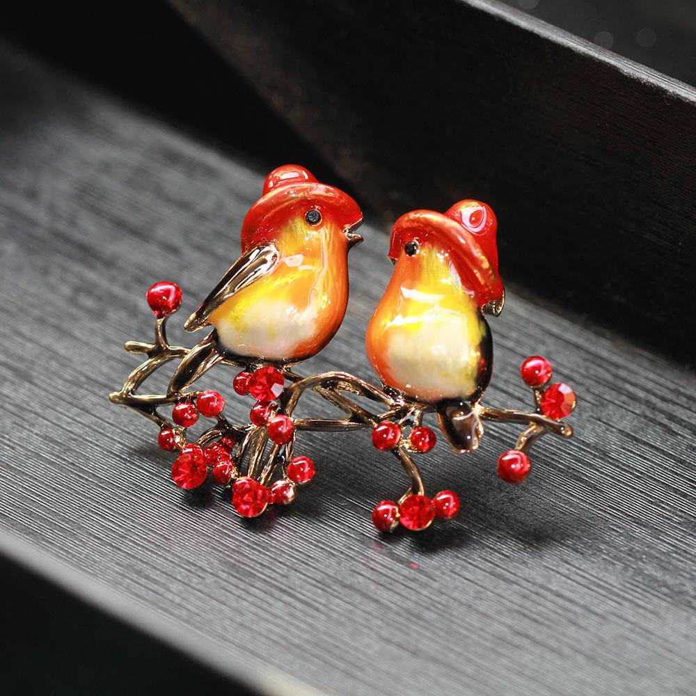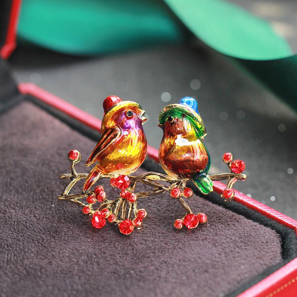 Broche de pájaro amoroso de dos colores con forma de gota de aceite y nube de sol, con personalidad sencilla, pequeños alfileres de animales, venta al por mayor mixta