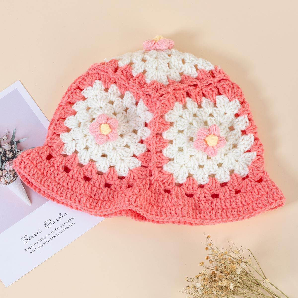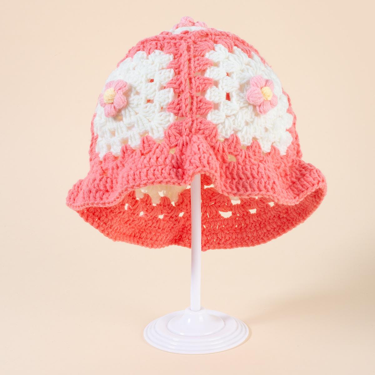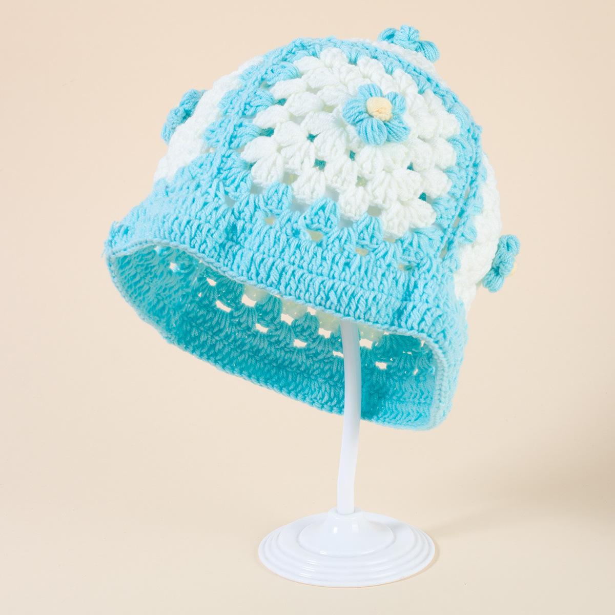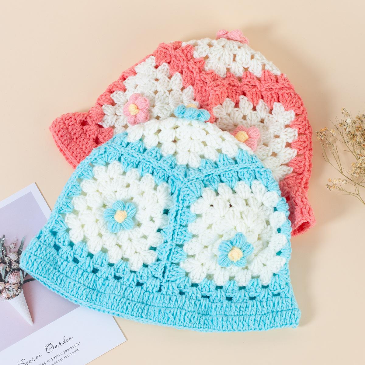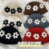 Sombrero de Cubo Tejido a Mano con Flor Hueca Vintage Japonés para Mujer Otoño e Invierno Dulce Combinable Sombrero de Lana para la Cara
