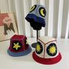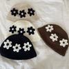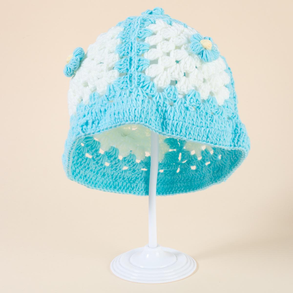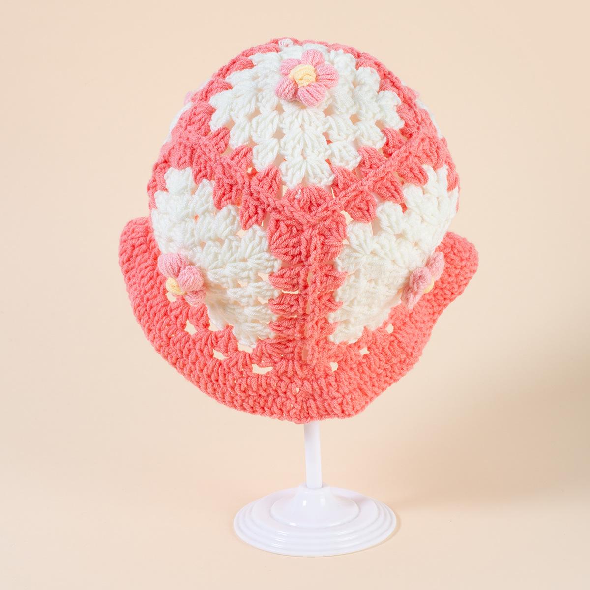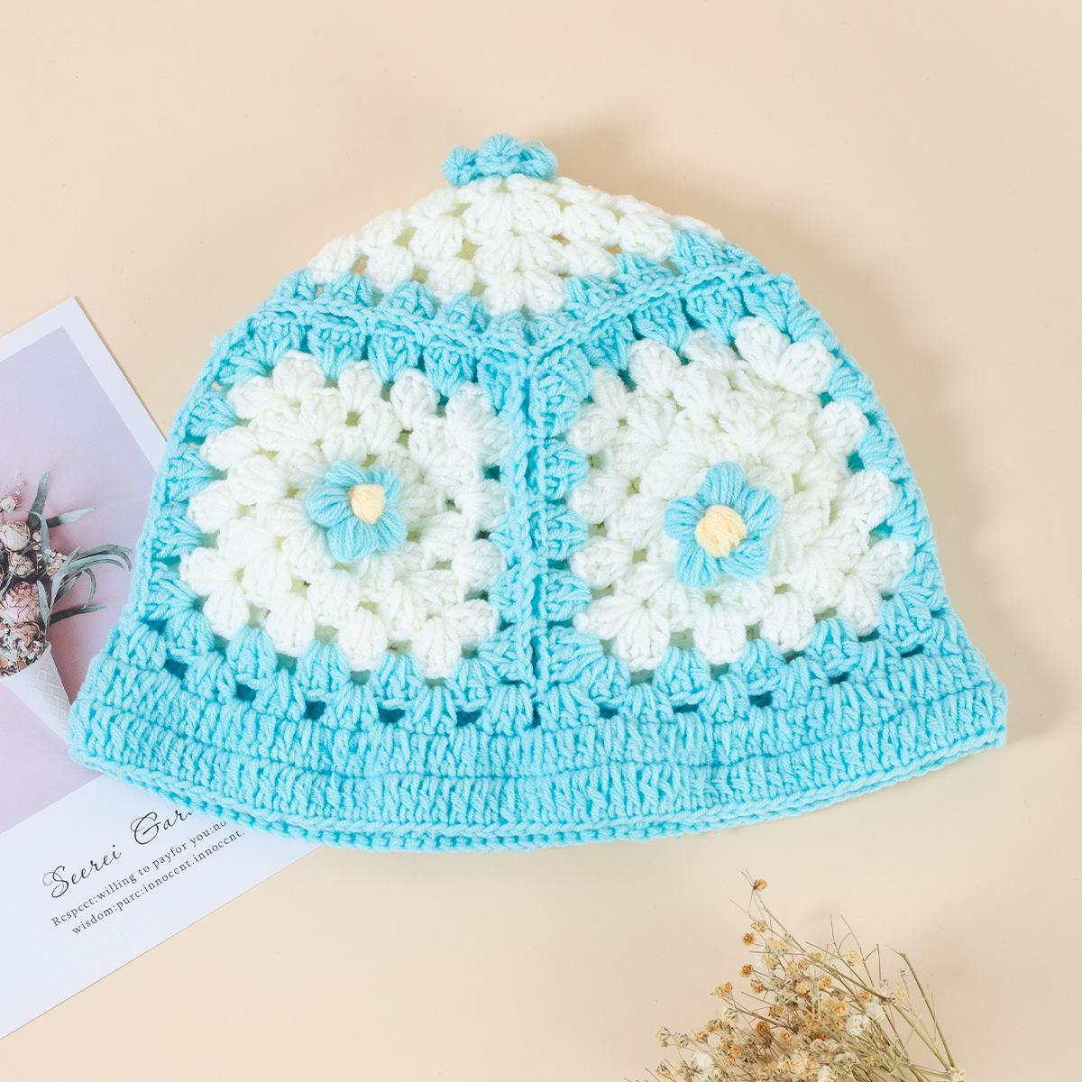Sombrero de Cubo Tejido a Mano con Flor Hueca Vintage Japonés para Mujer Otoño e Invierno Dulce Combinable Sombrero de Lana para la Cara
