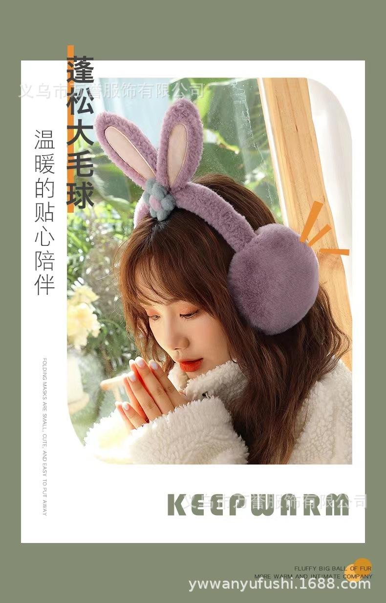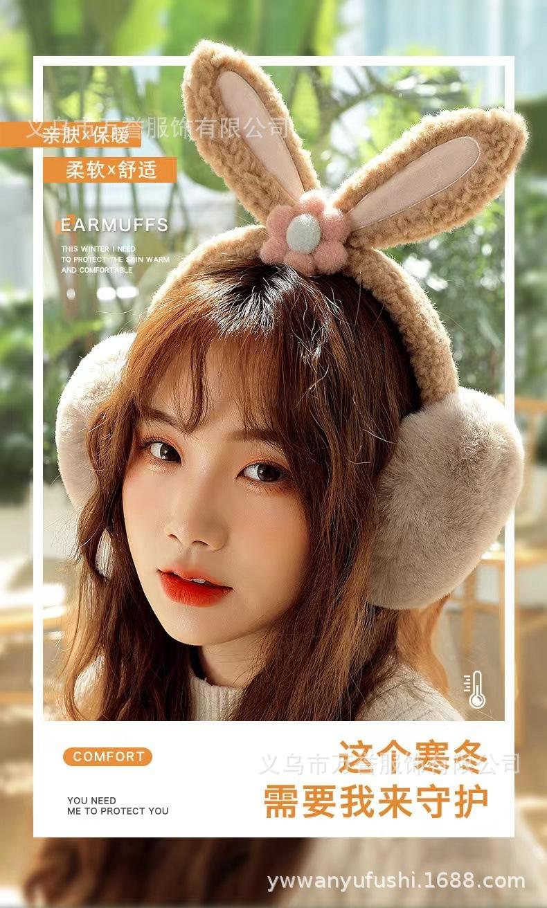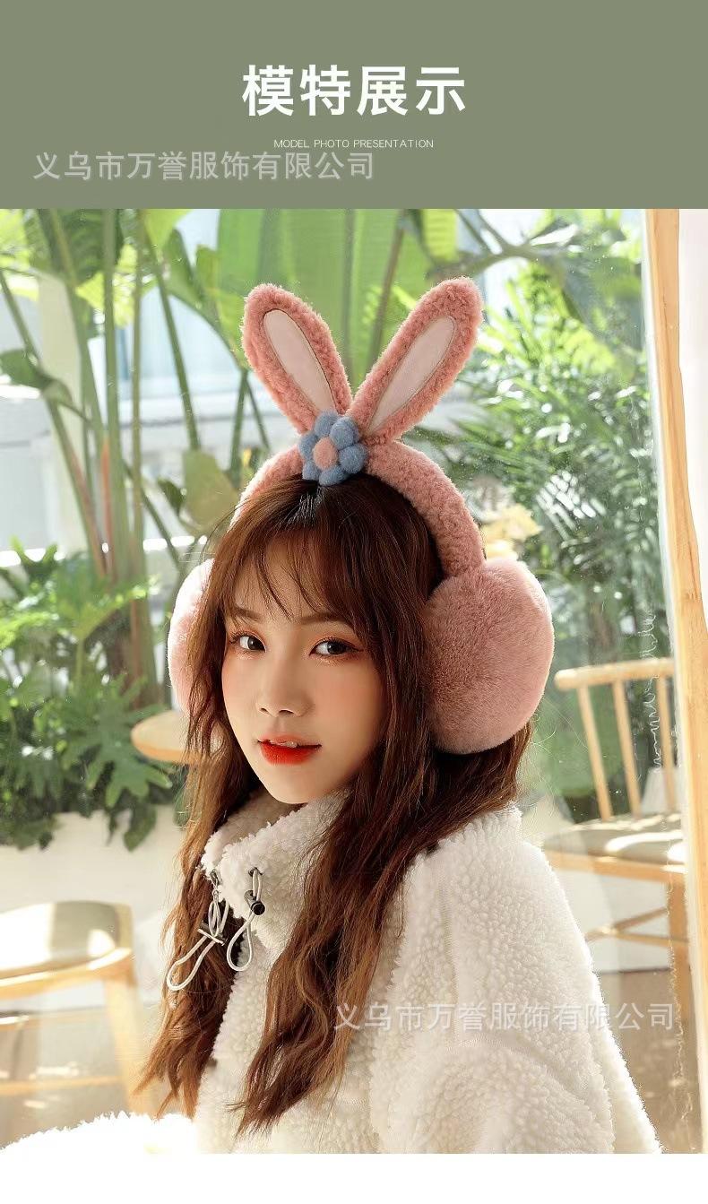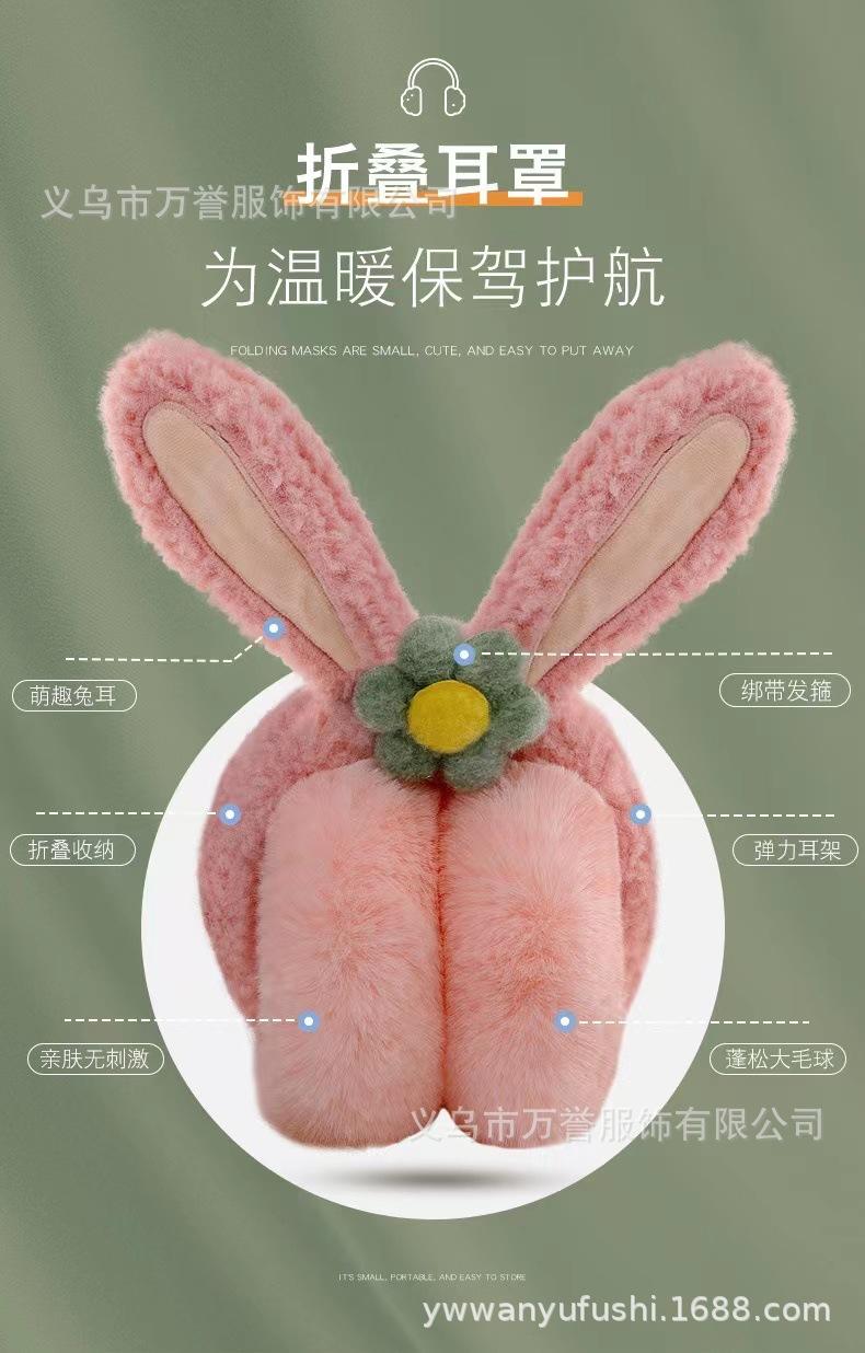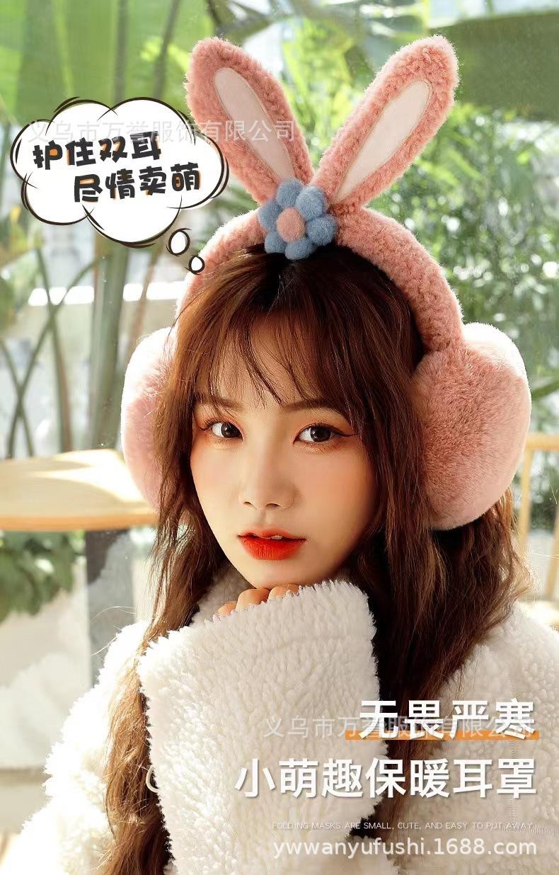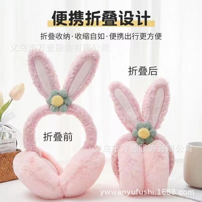 Bonitas orejeras plegables de invierno para mujer, cálidas y resistentes al frío, con lindas orejeras de felpa con flores, orejeras de dibujos animados para estudiantes.