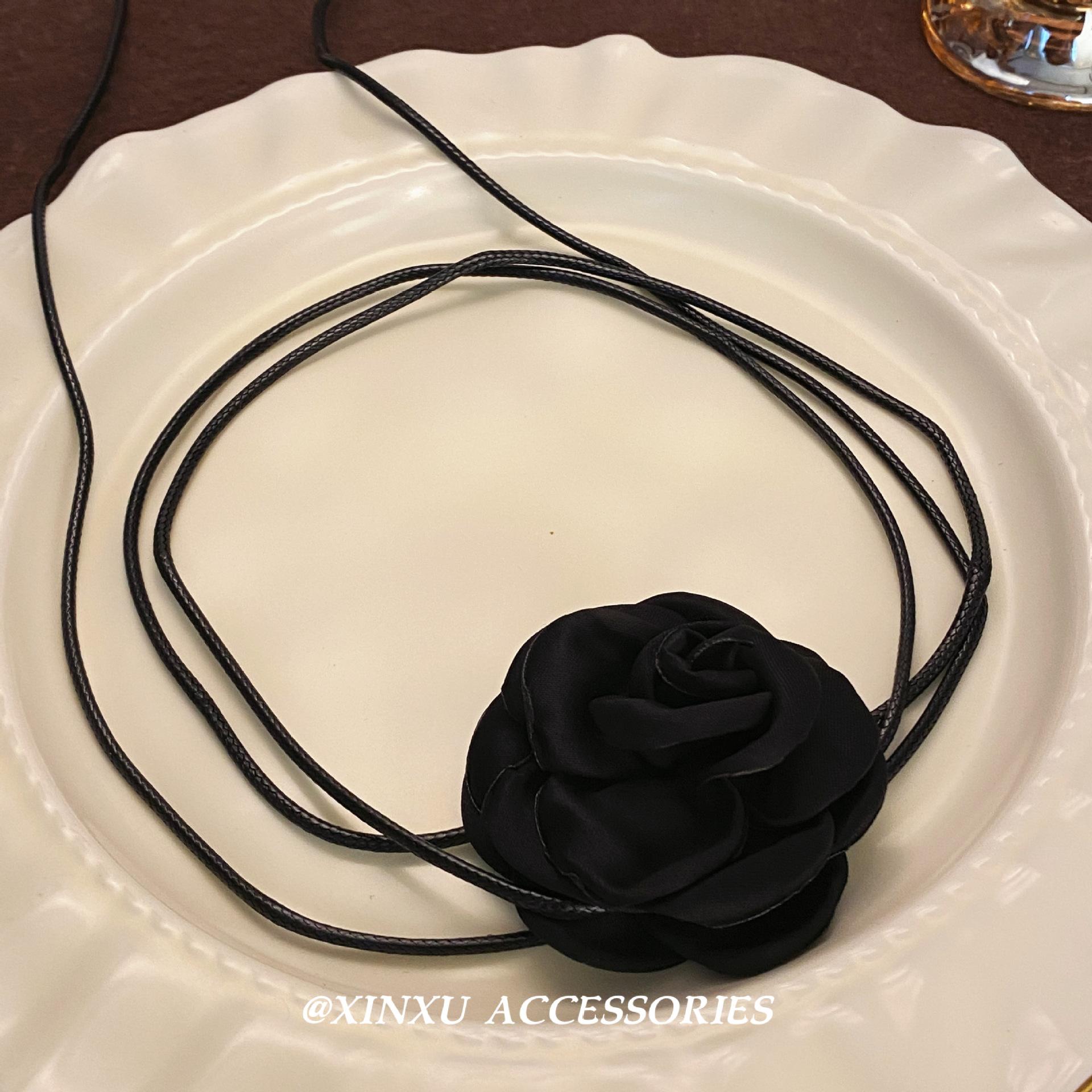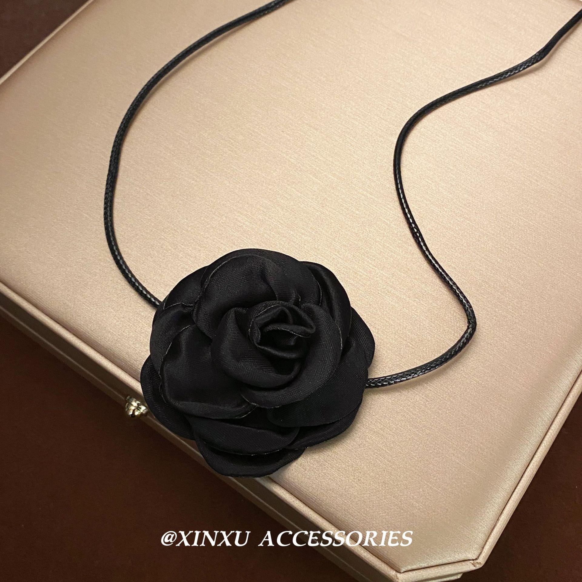 Collar de Flor Negra Rosas Nuevo Estilo Temperamento Collar de Cuello Collar Cadena Collar Cuello para Mujer