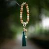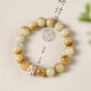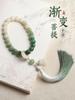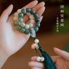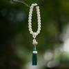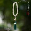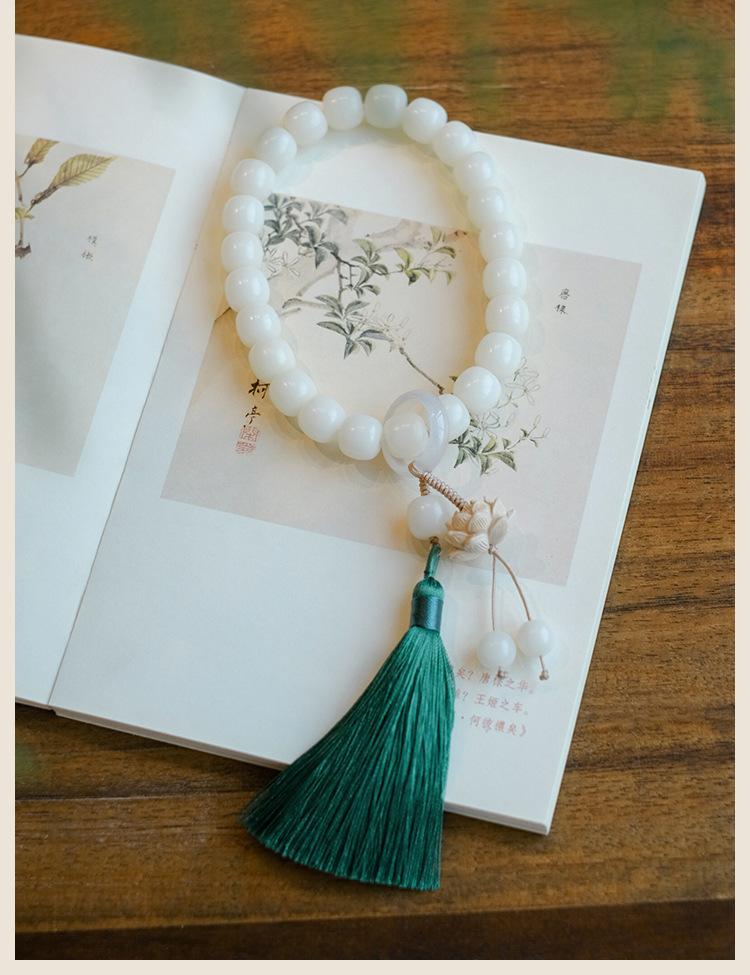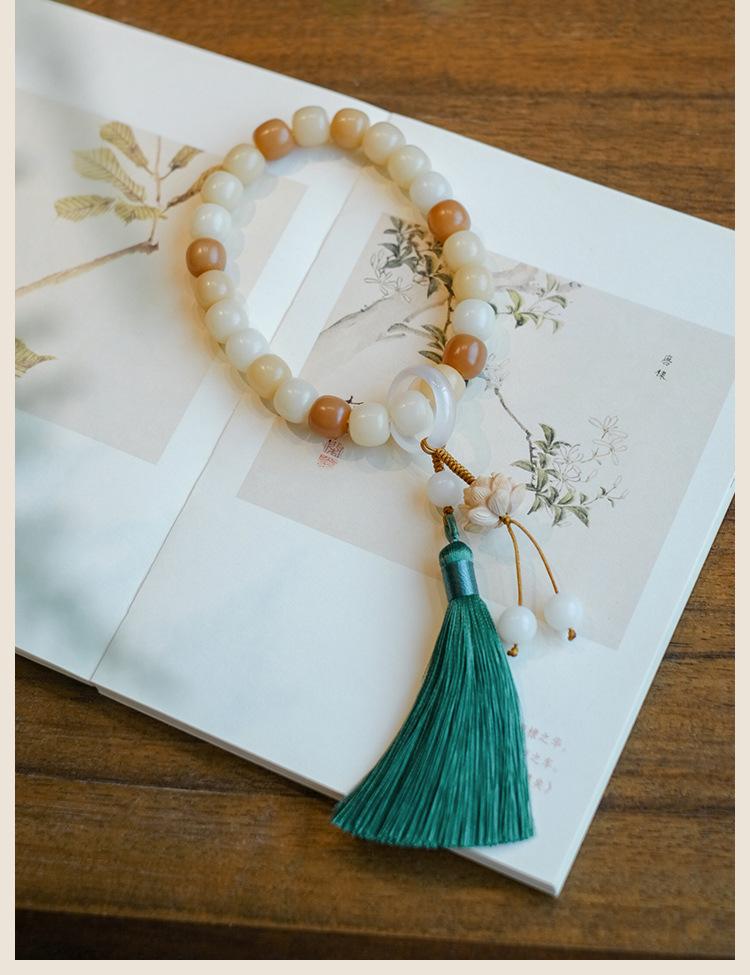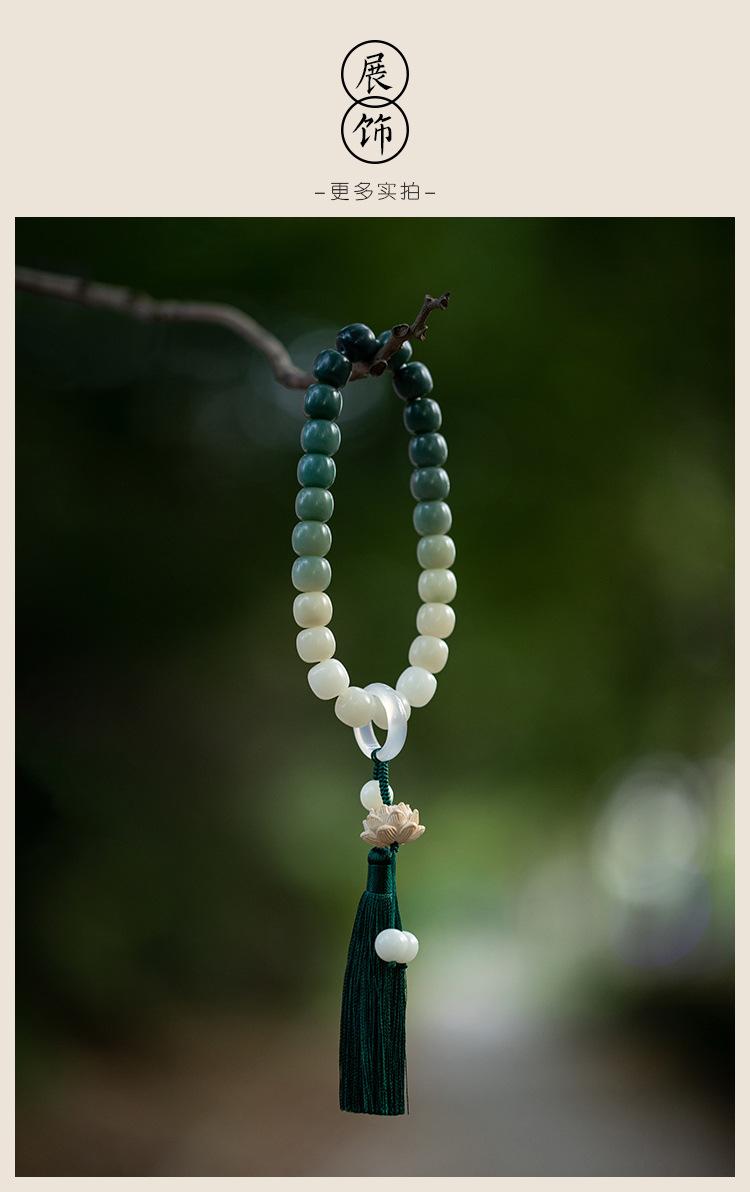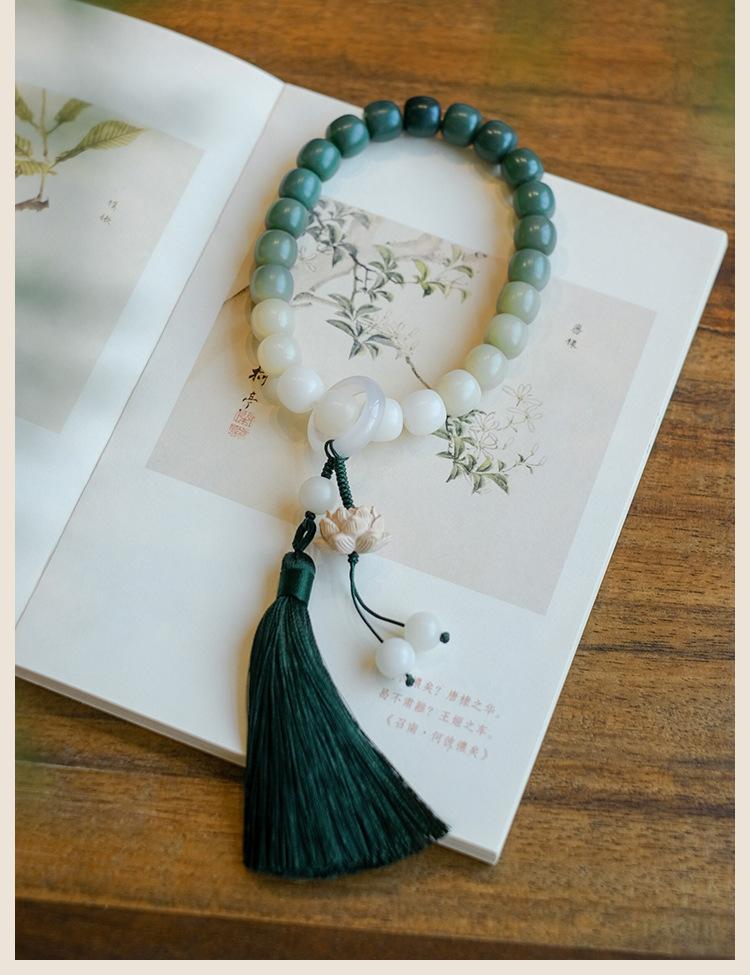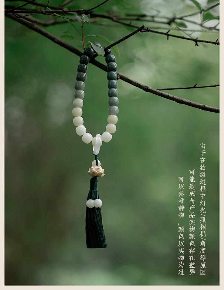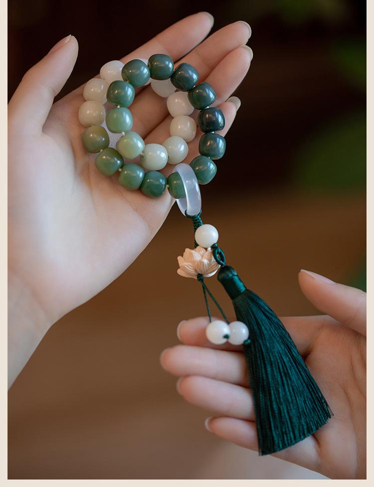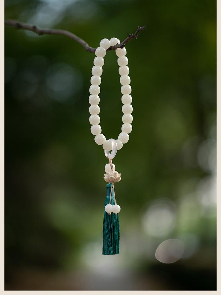 Pulsera de jade blanco degradado con raíz de Bodhi, hecha a mano, con anillo de semillas de loto y orejas de loto, con placa de cuentas de Buda para niños.