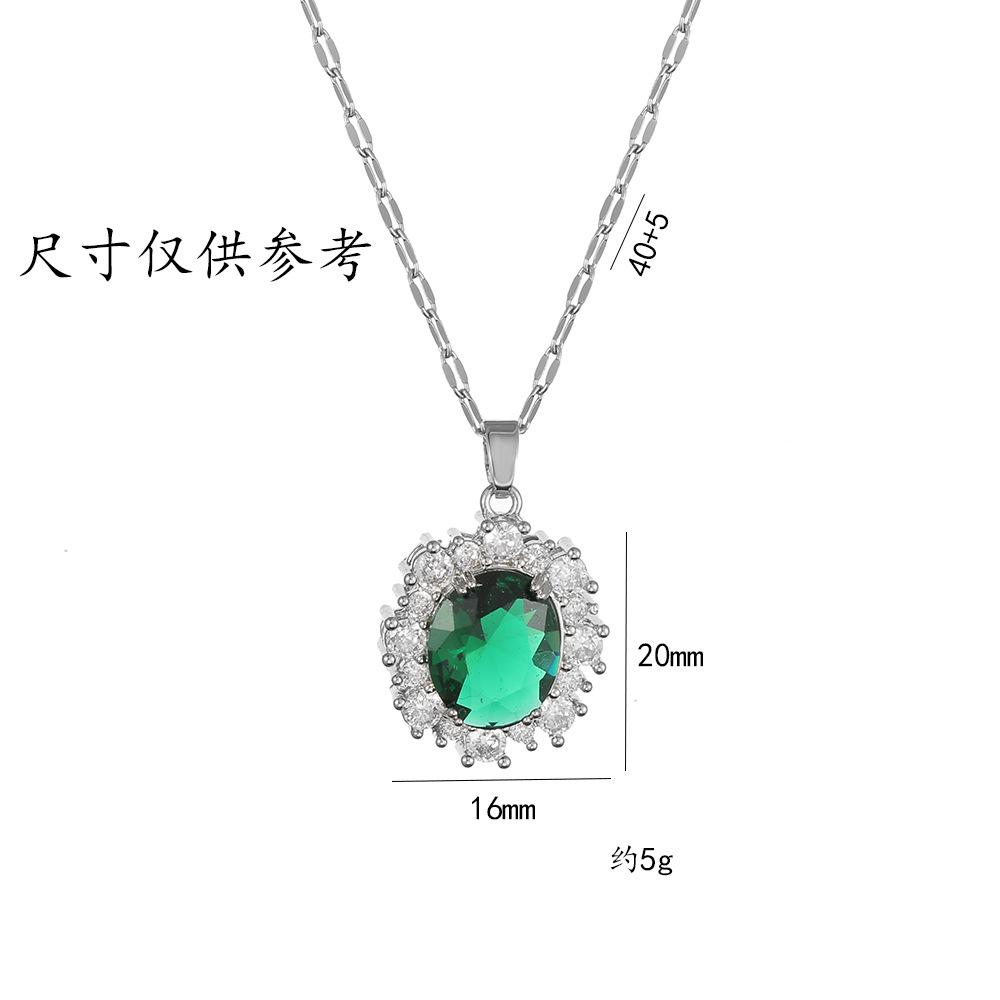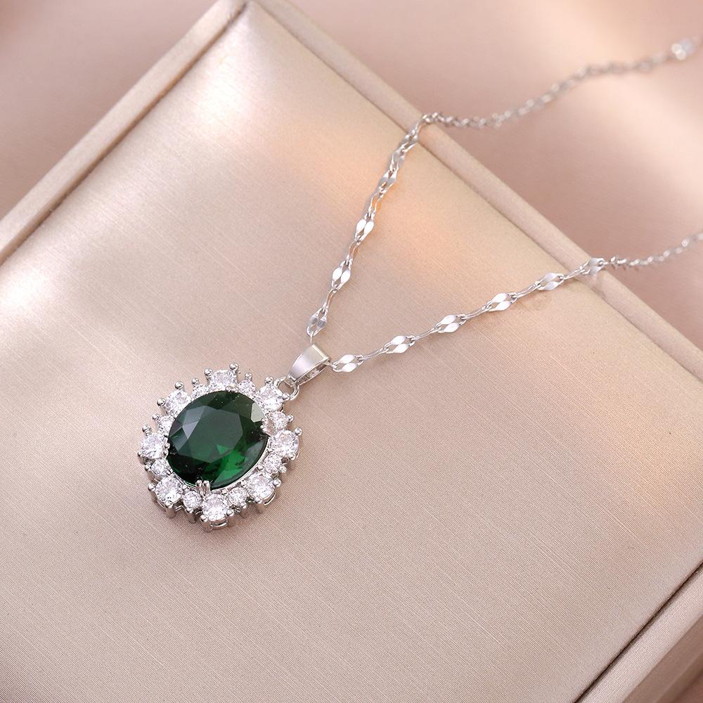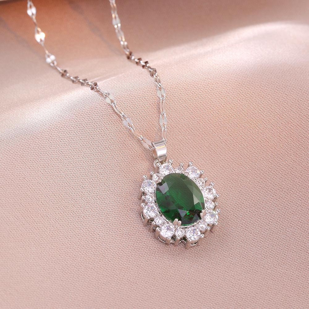 Collar femenino de circonita esmeralda, estilo europeo y americano, con diseño de nicho de flores de moda retro, collar de acero de titanio.