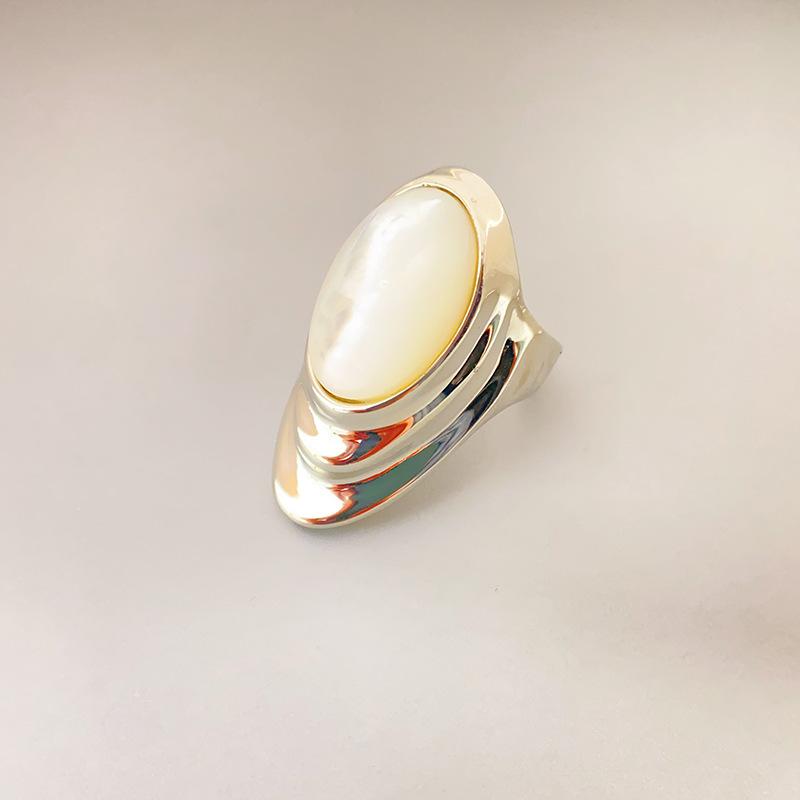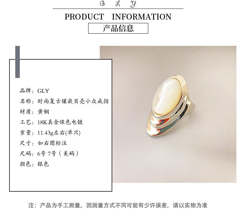 Anillo para el dedo índice con temperamento, estilo frío, con diseño de nicho francés, incrustaciones de concha de mariposa blanca ovalada, cobre plateado y chapado en frío.