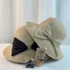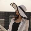 Sombrero de paja estilo Hepburn para mujer, estilo coreano, elegante, de ala grande, para lavabo, para vacaciones en la playa, protección solar y sombrilla, sombrero de playa plegable.