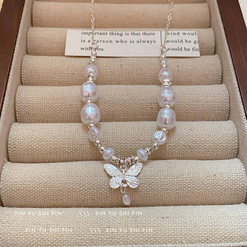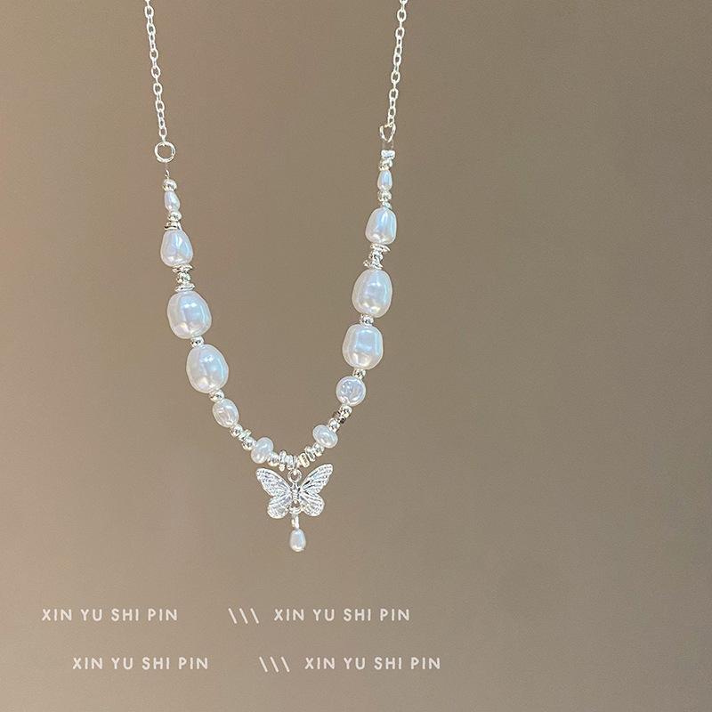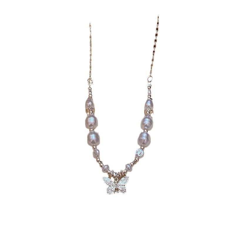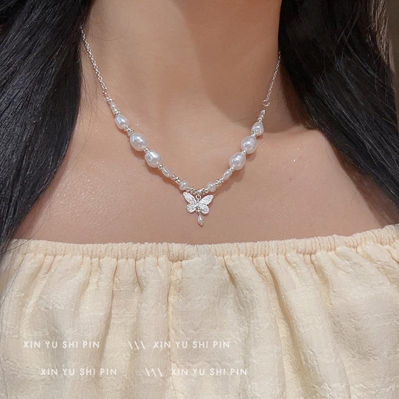 Collar de mariposa con perlas irregulares "Butterfly Dream Set" 2024, nuevo temperamento, ligero, lujoso y exquisito, con cadena de clavícula.