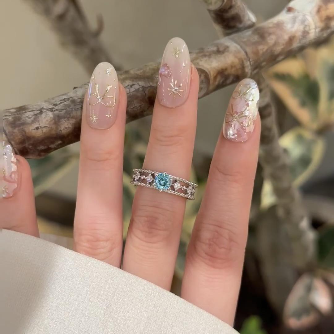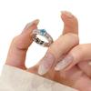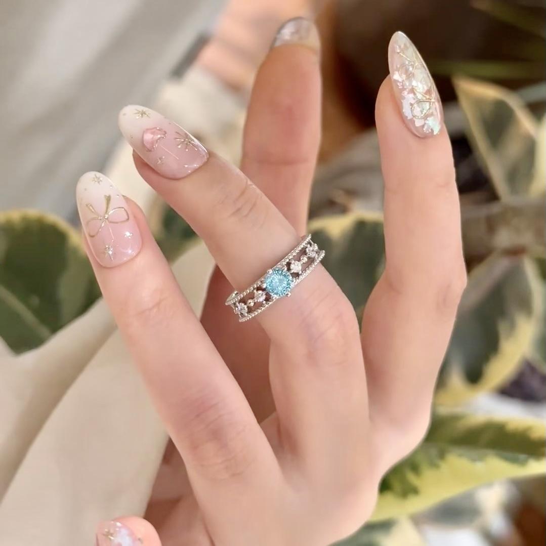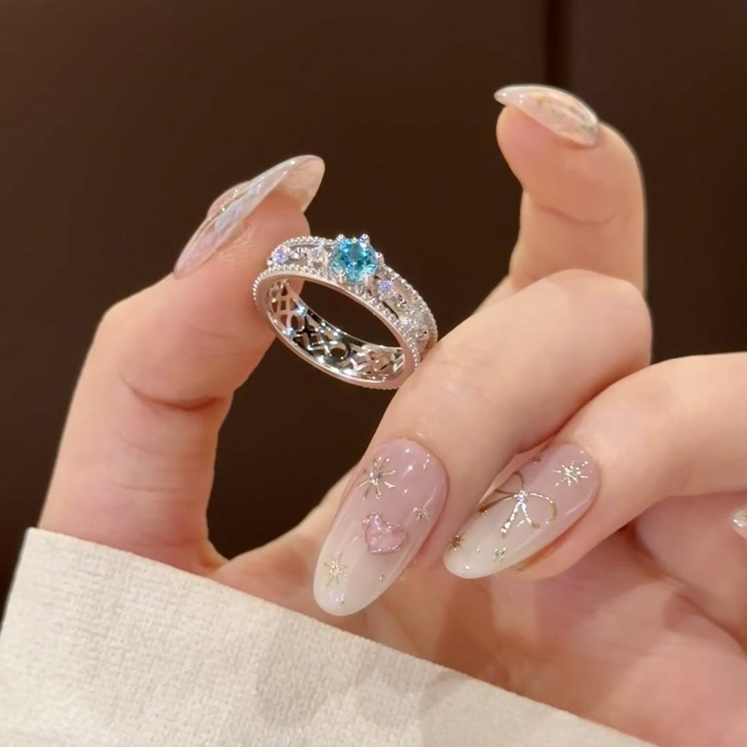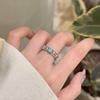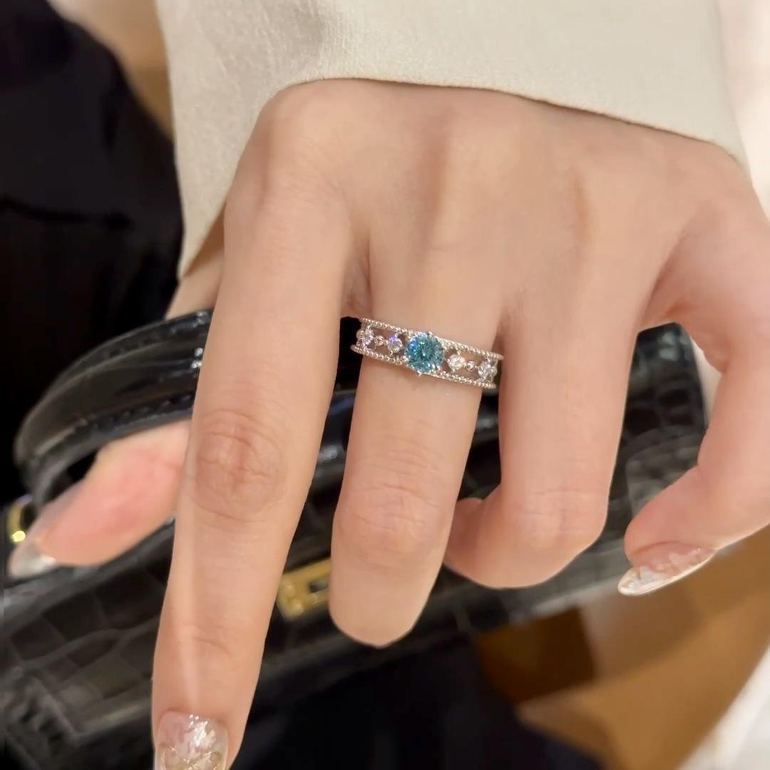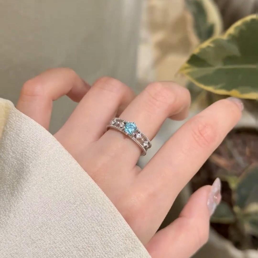 Anillo de Circón Azul Frío Avanzado de Lujo Ligero para Mujer Diseño Calado Nicho Exquisito Abierto Ajustable Anillo de Dedo