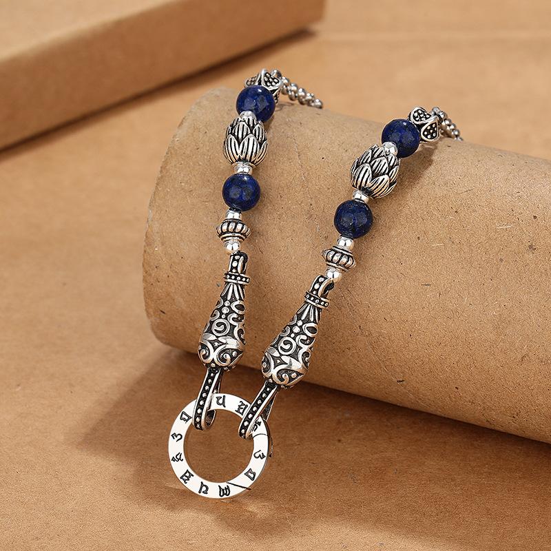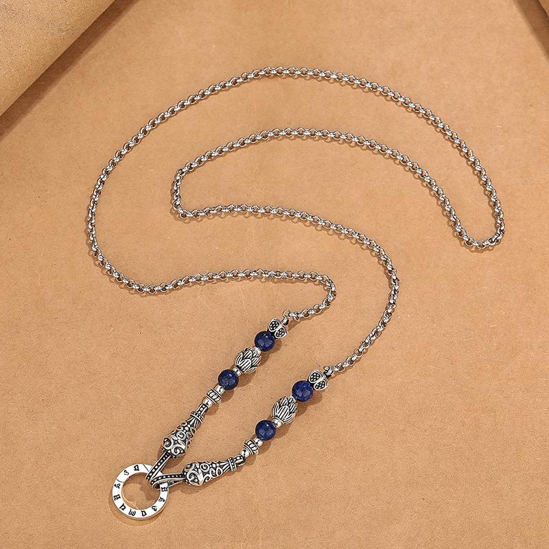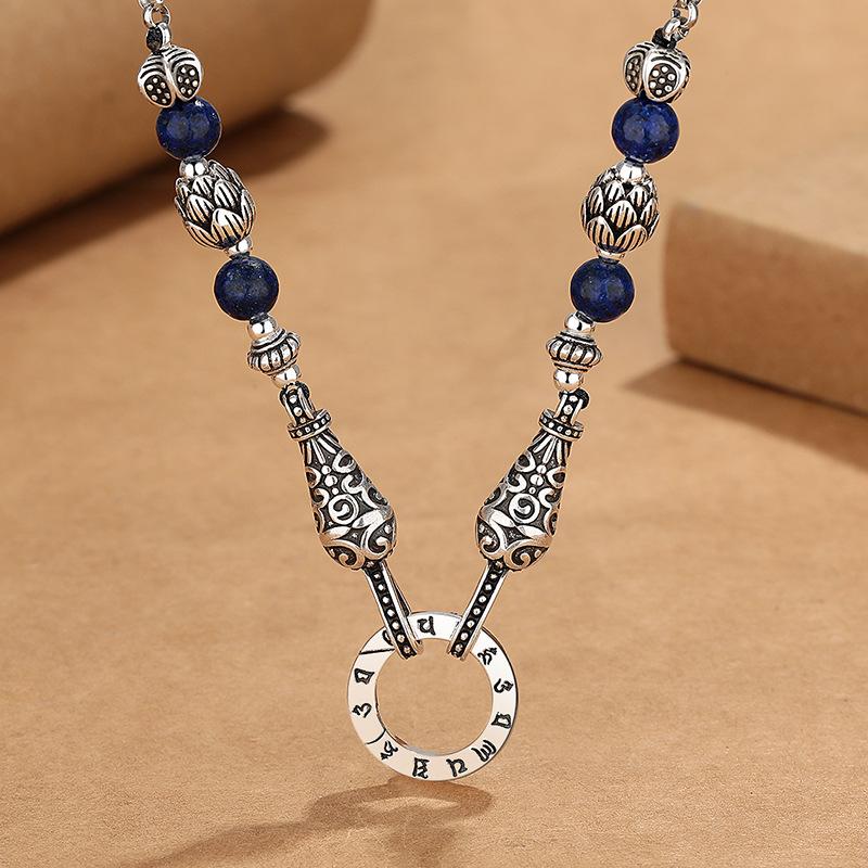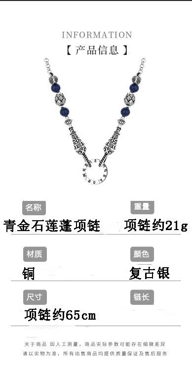 Collar de loto turquesa de estilo étnico retro, moda para mujer, joyería simple, regalo para novia, cadena larga para suéter