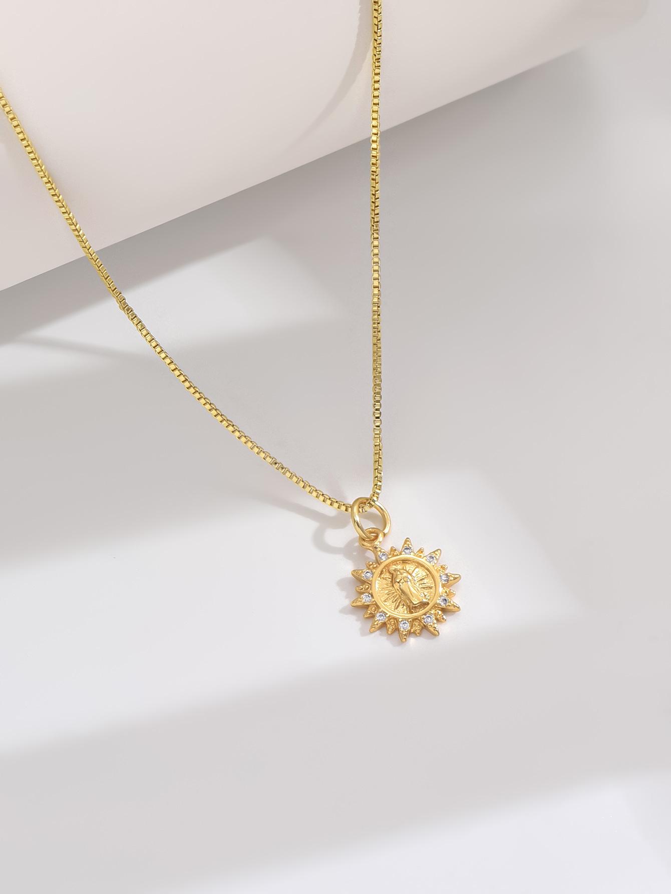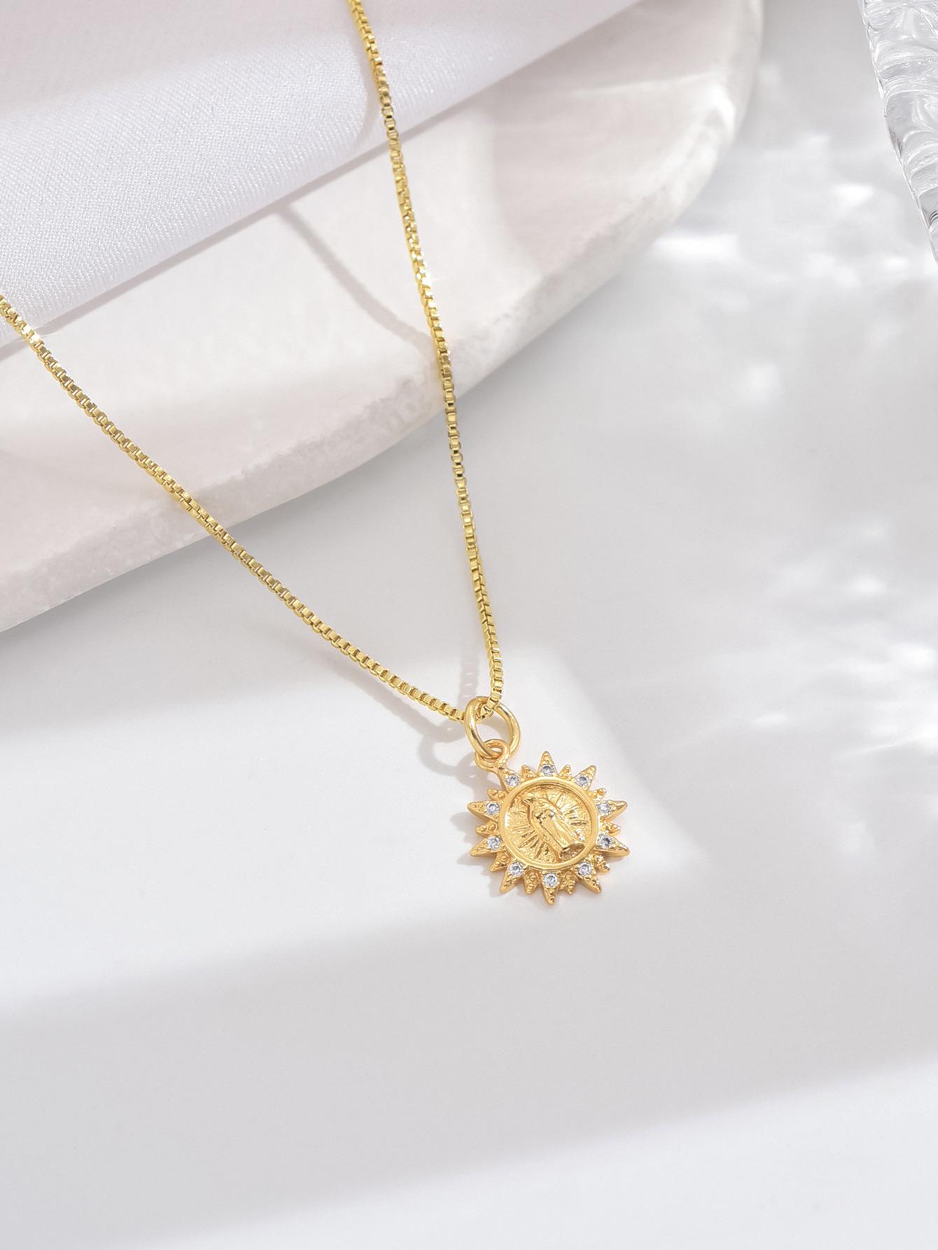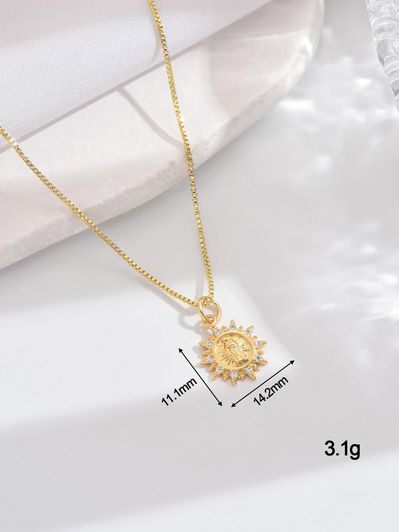 Collar con colgante de oro auténtico chapado en cobre, diseño creativo y sencillo con diseño de girasol y Virgen María para mujer.