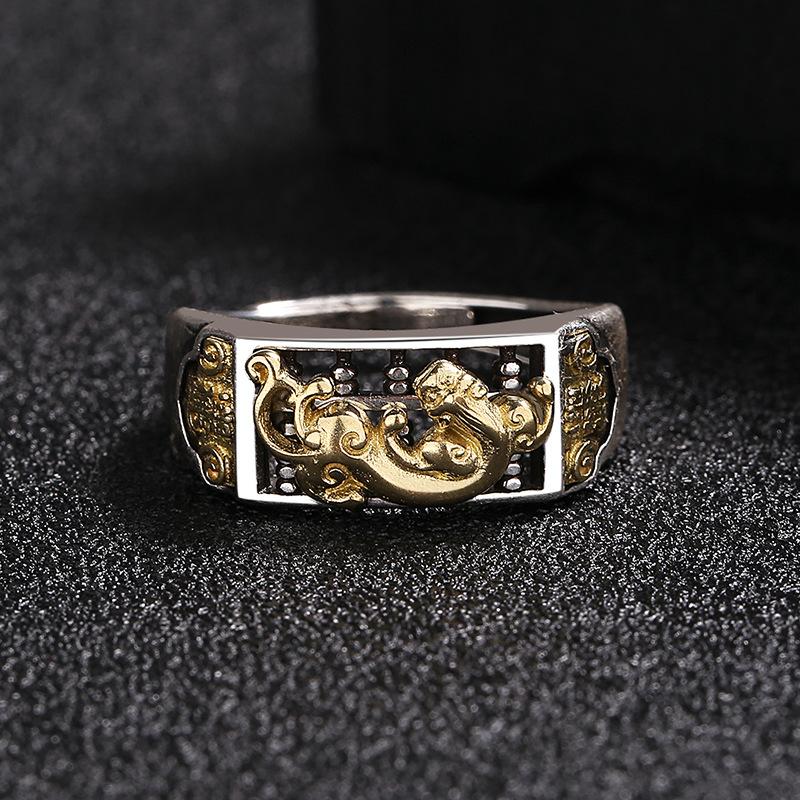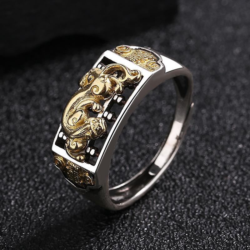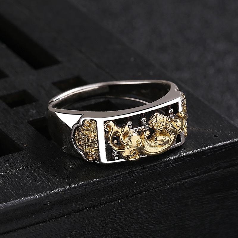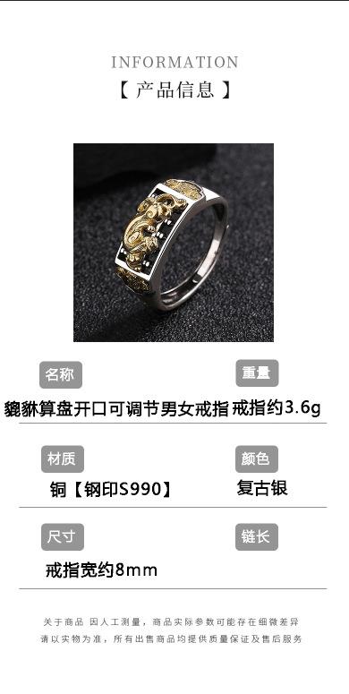 Anillo Ábaco Pixiu de Plata Tailandesa Retro para Hombres y Mujeres, Estilo Literario Creativo Personalizado, Anillo Ajustable Abierto Moderno y Simple