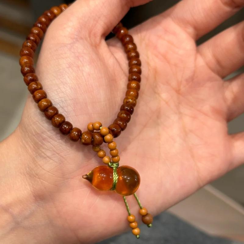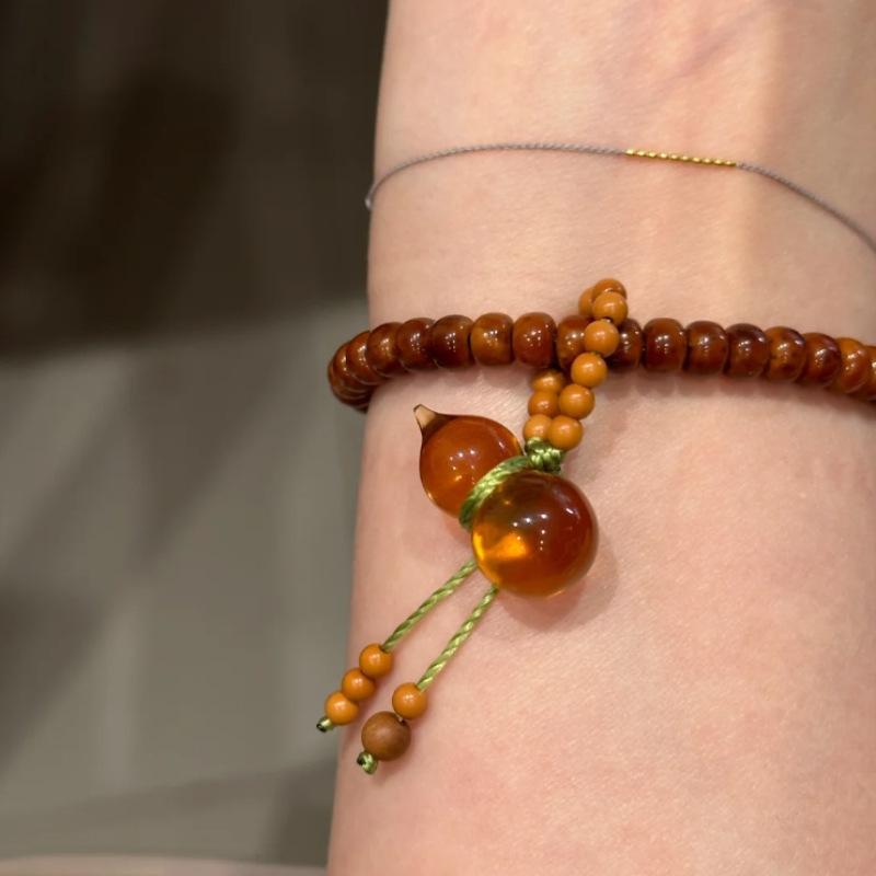 Pulsera de madera estilo chino con cuentas finas de imitación de ámbar y calabaza para mujer, estilo nacional, con diseño de nicho.