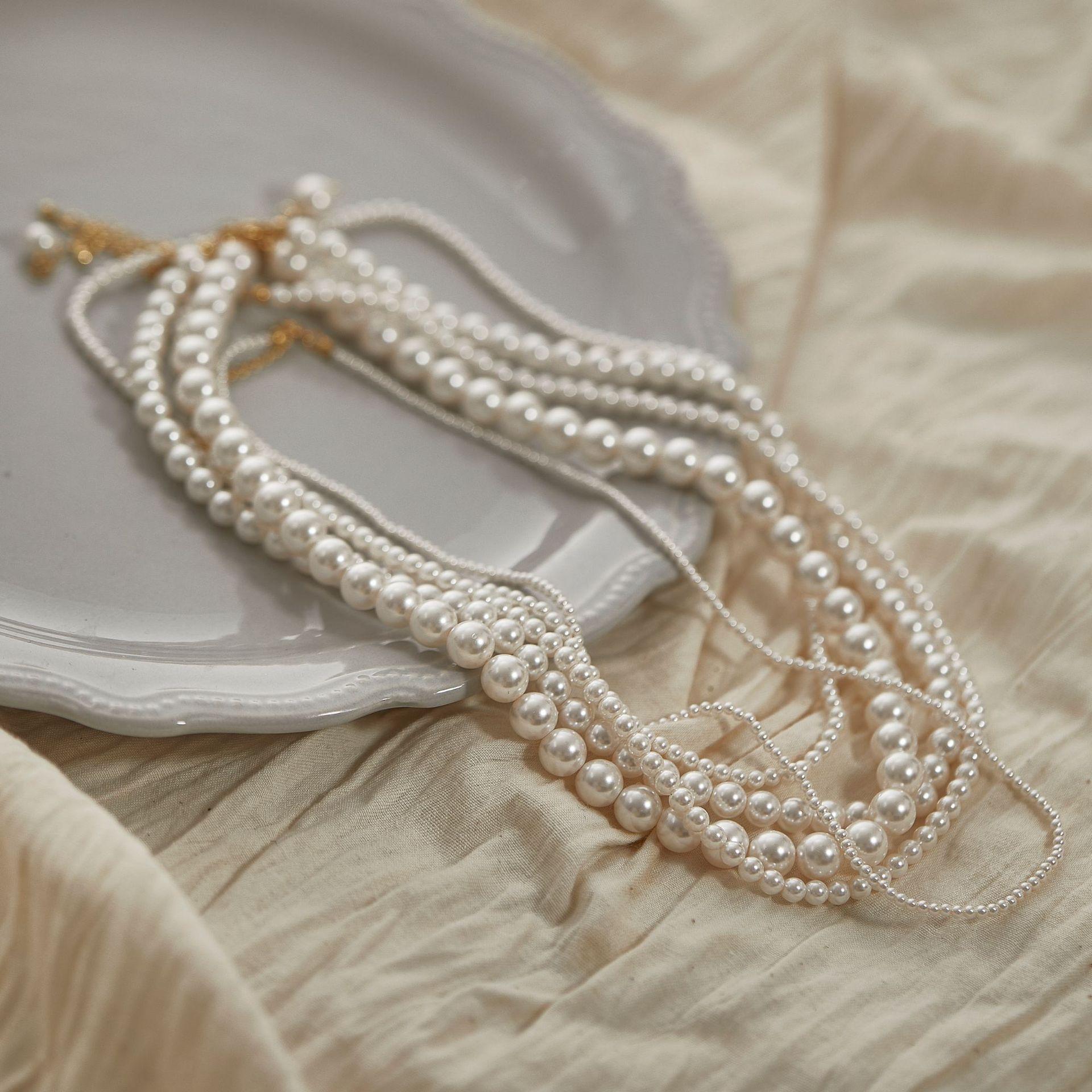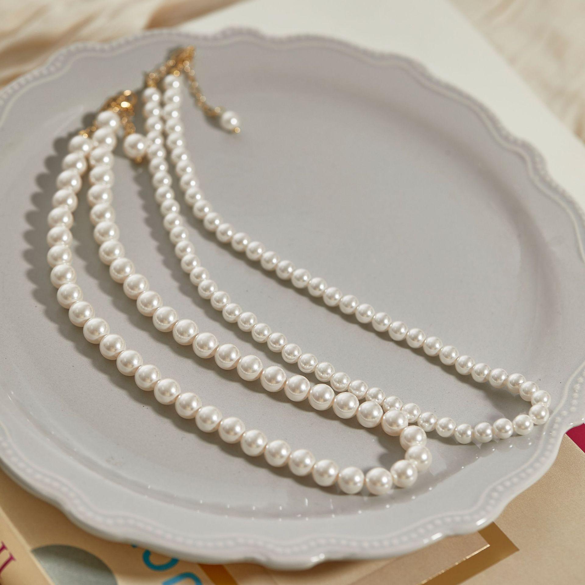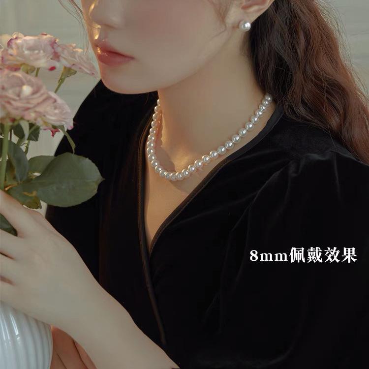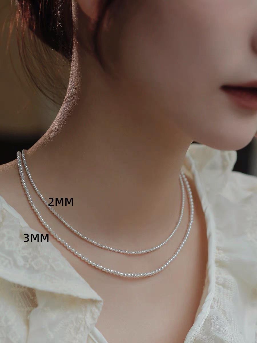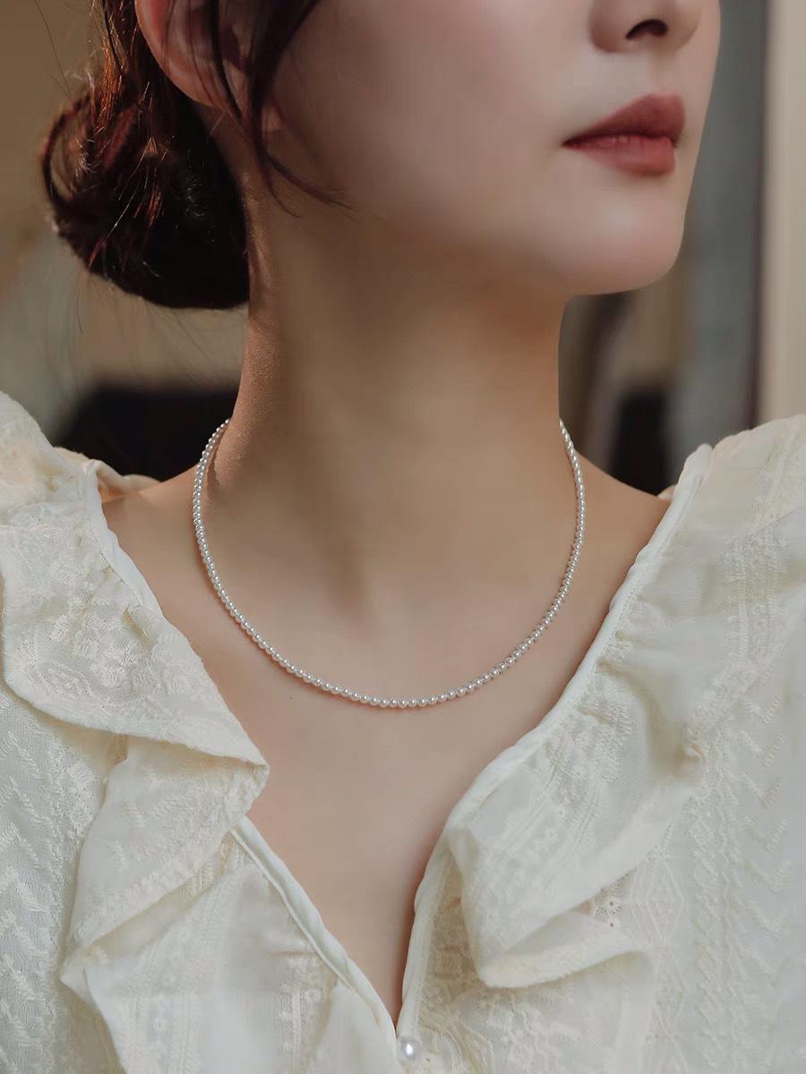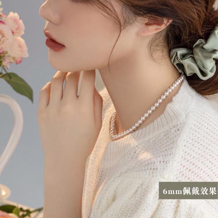 Collar clásico de perlas de bebé de calidad Shi Jia, redondo, brillante, ligero, multitamaño, ultrafino, collar de oro de 18 quilates para mujer