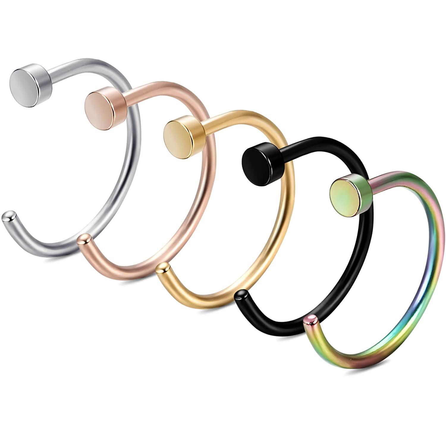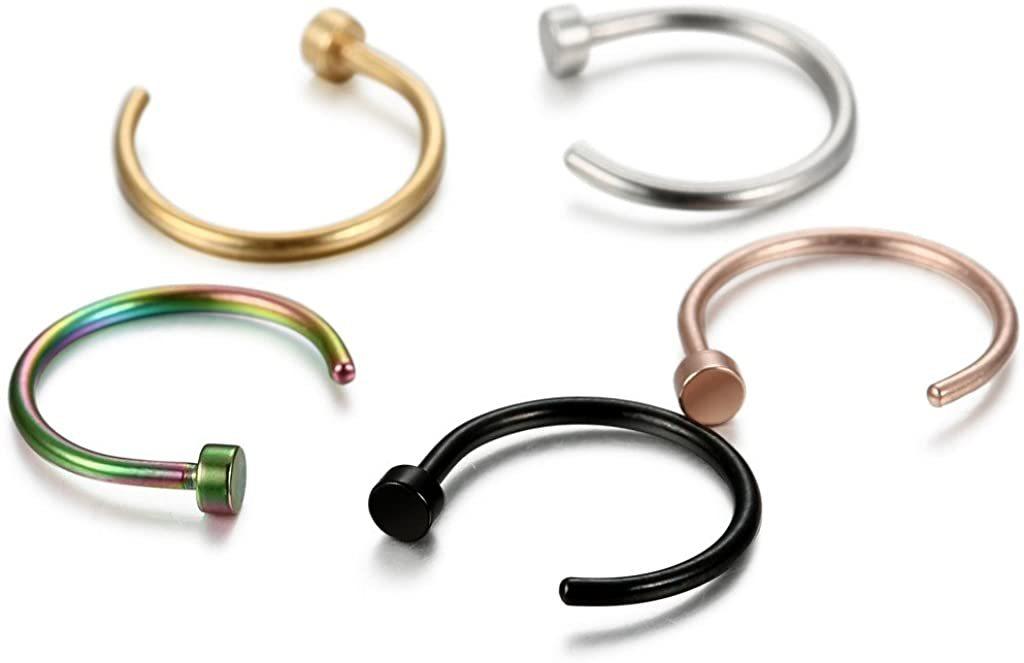 Anillo de nariz falso de acero inoxidable de 5 piezas transfronterizo, joyería para perforaciones de uñas postizas para labios y nariz, venta al por mayor