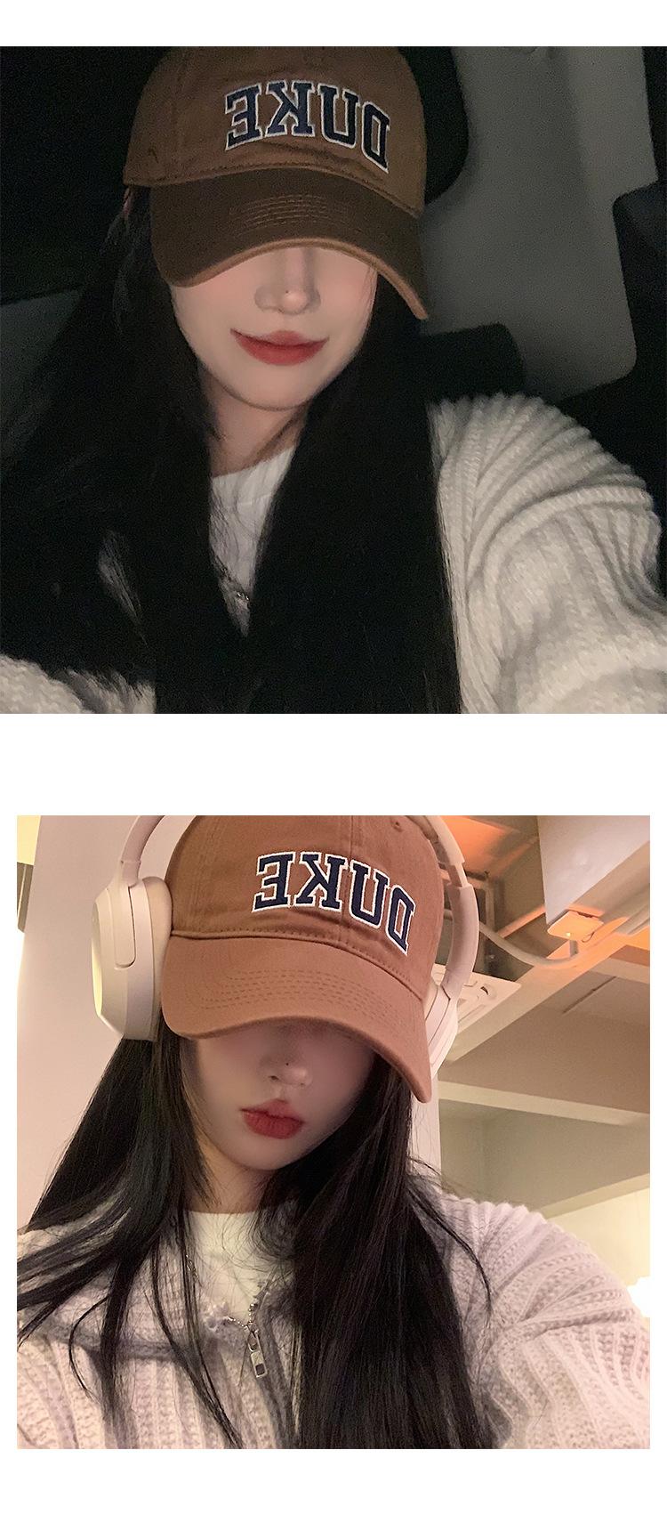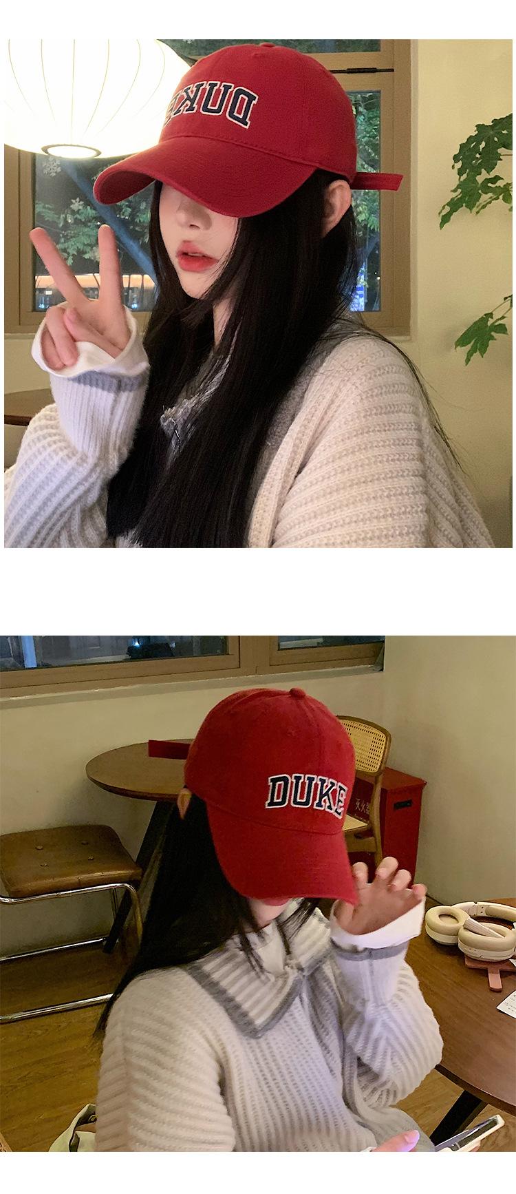 Gorra de Béisbol Cabeza Grande para Mujer Estilo Americano Retro Letra Gorra de Ala Ancha Parte Superior Suave que Muestra la Cara Sombrero Rojo Pequeño Pareja