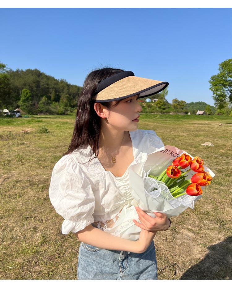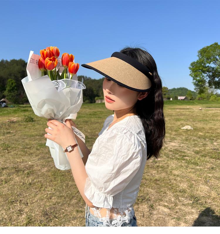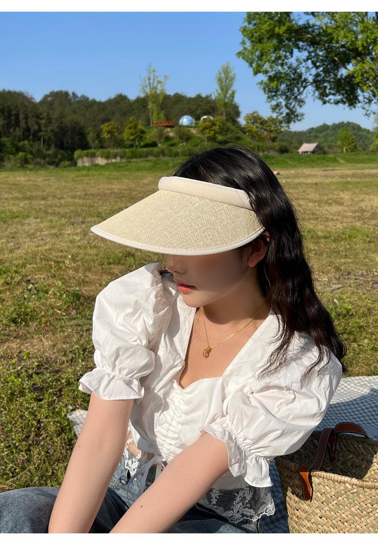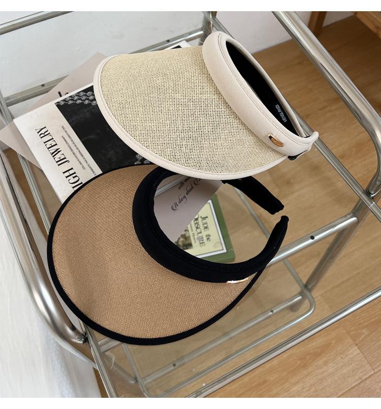 Sombrero casual de ala ancha estilo coreano para viajar sin copa en verano, playa, orilla del mar, parasol y estilo diadema anti-ultravioleta, sombrero de copa vacía