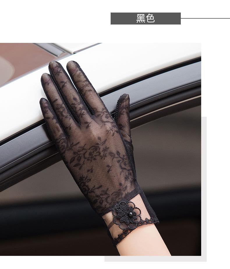 Guantes de protección solar para mujer, de primavera y verano, finos, cortos, con encaje bordado, para conducir, ciclismo al aire libre, con pantalla táctil