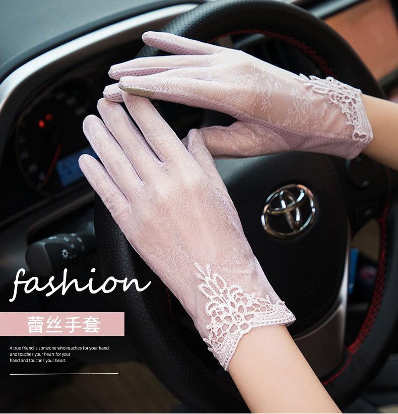 Guantes de protección solar para mujer, primavera y verano, nuevos guantes para conducir y andar en bicicleta al aire libre, de encaje fino, de algodón transpirable, con pantalla táctil