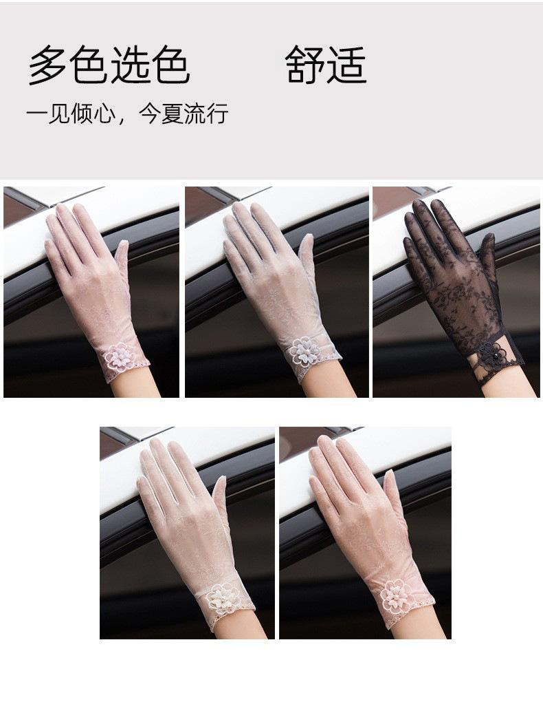Guantes de protección solar para mujer en primavera y verano, guantes de lazo de encaje fino para ciclismo al aire libre, guantes de seda helada con protección solar.