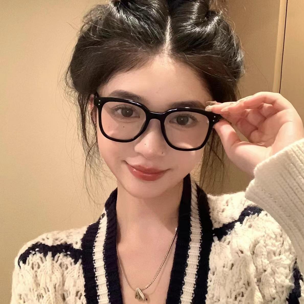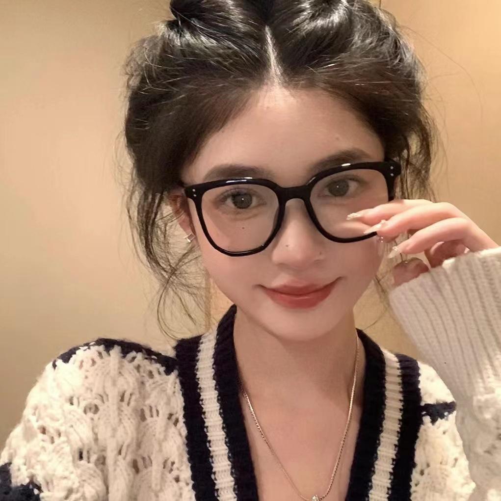 Retro plain face artefato on-line celebridade moldura preta miopia óculos das mulheres estilo coreano na moda big face emagrecimento anti-luz azul óculos armação homens