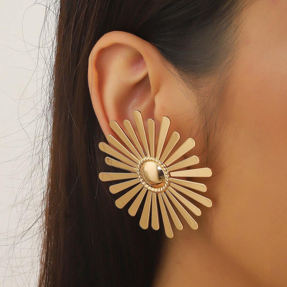 Pendientes de girasol de metal creativos para mujer, moda de verano europea y americana, populares en Internet, elegantes pendientes de diseño de nicho.