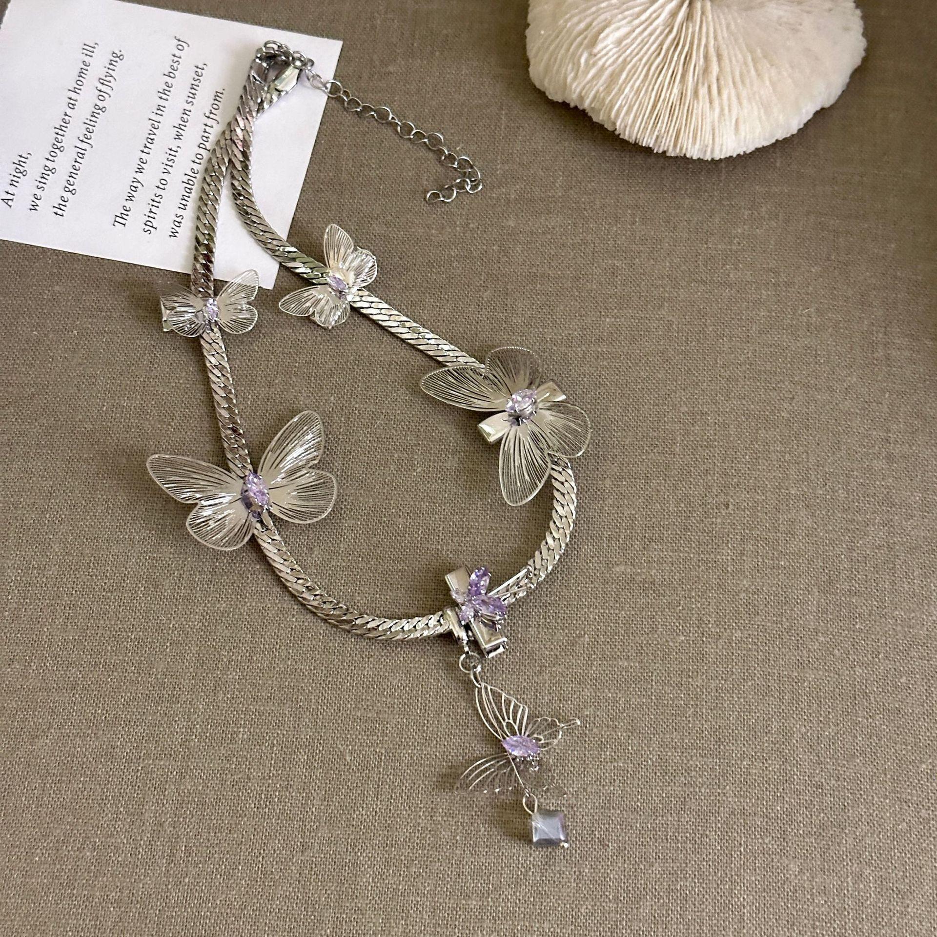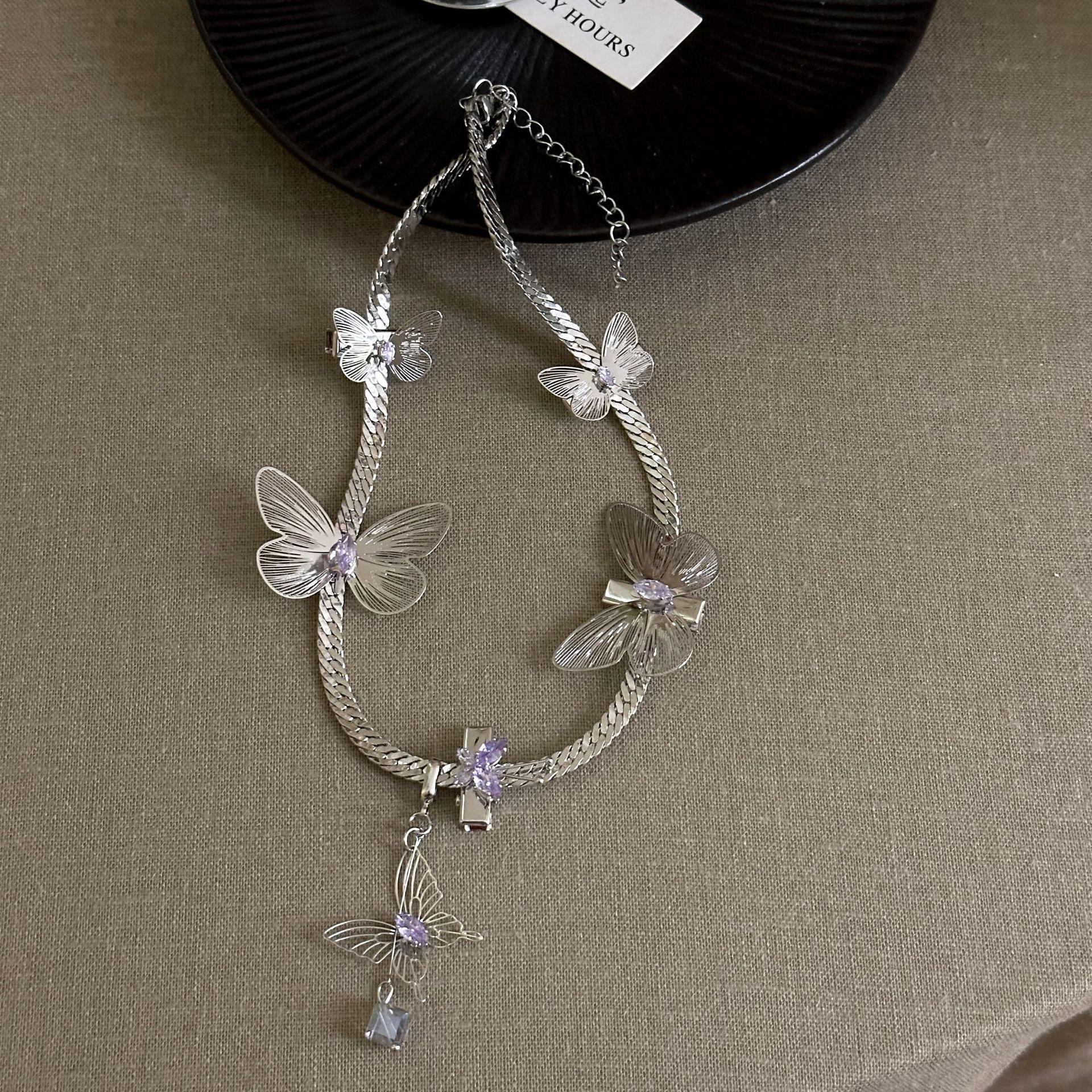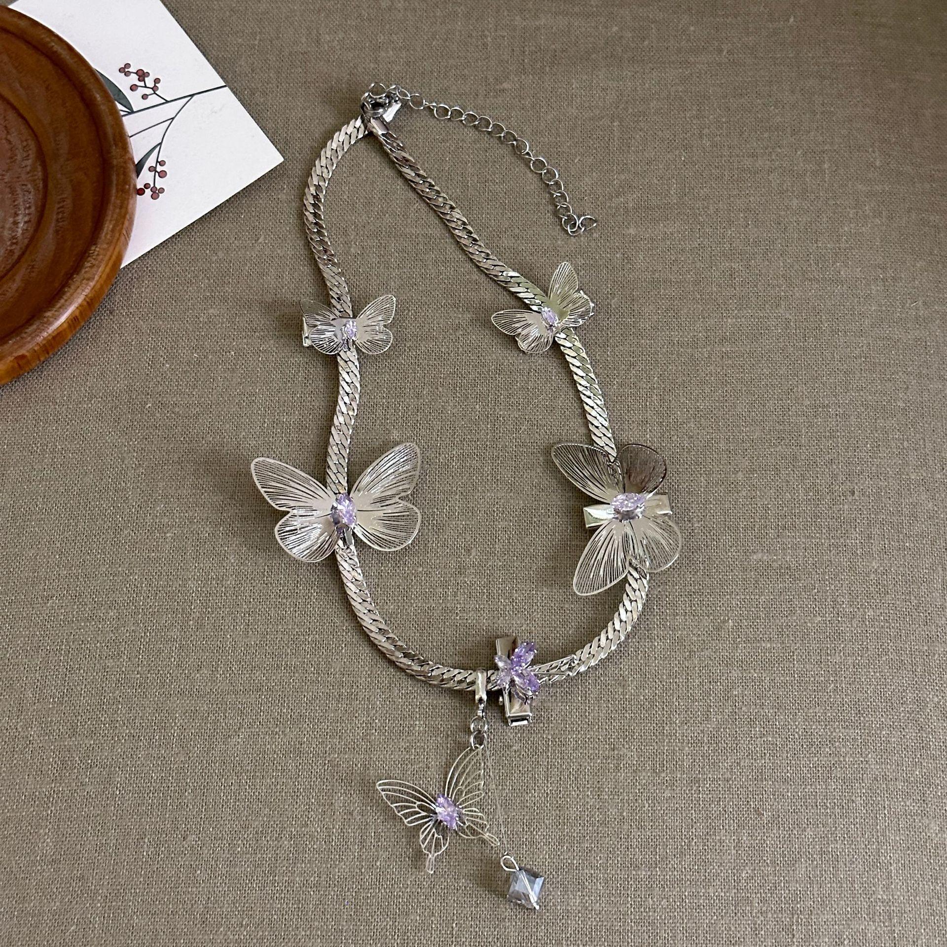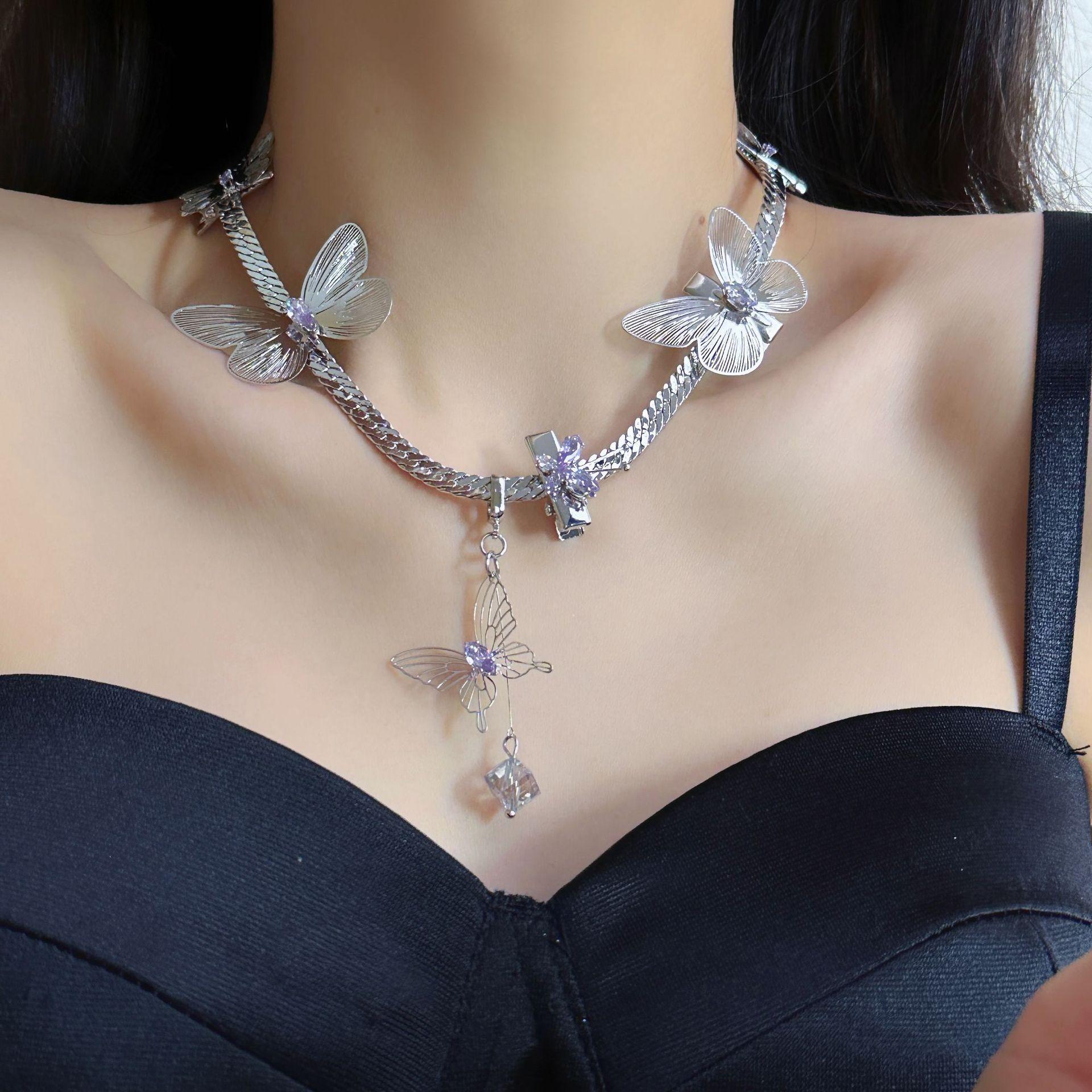 Dulce Cool Spice Metal Mariposa Collar Accesorios Mujer 2024 Nuevo Explosivo Collar de Alta Gama Gargantilla Cadena Clavícula