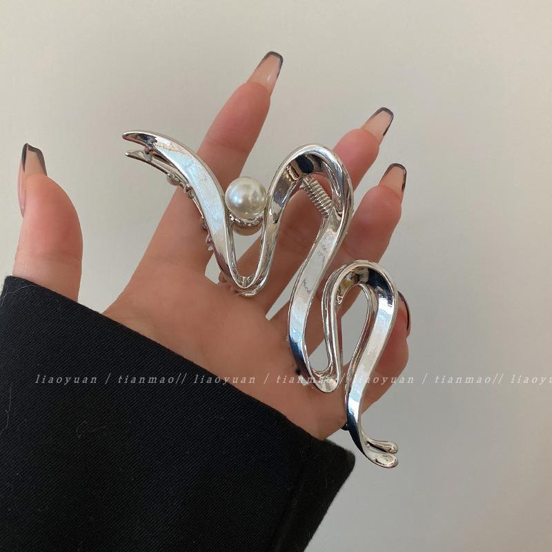 Pinza para el pelo de metal irregular estilo coreano para mujer, con diseño de tiburón en la parte posterior de la cabeza, de alta gama, grande