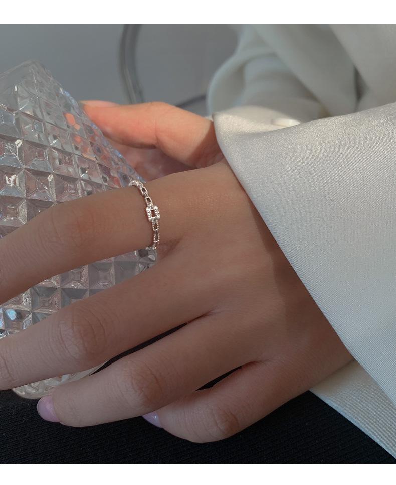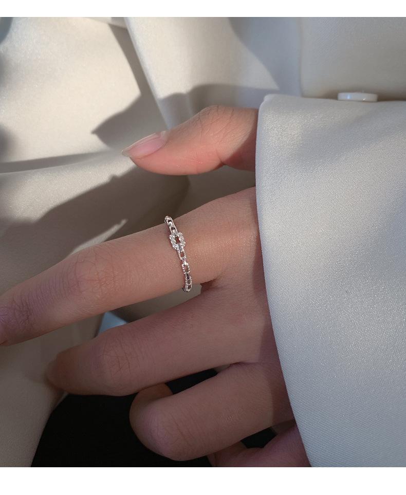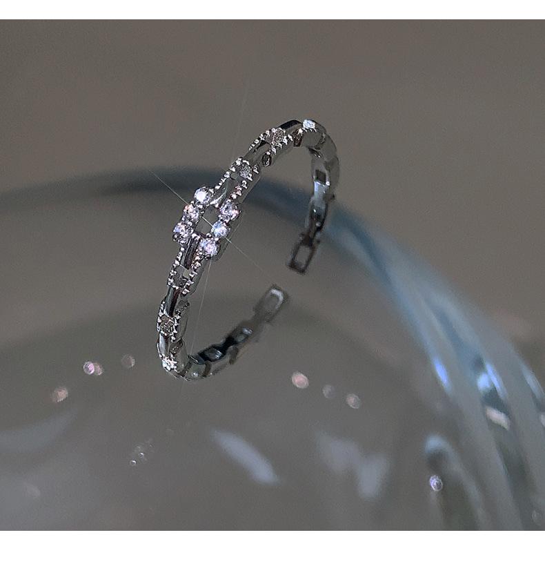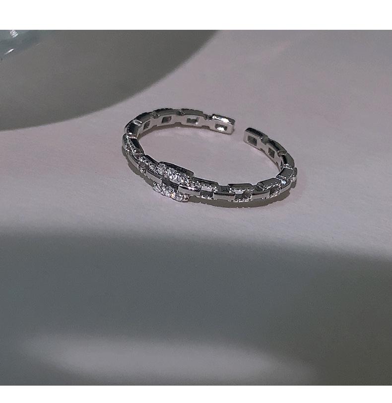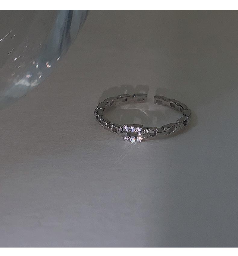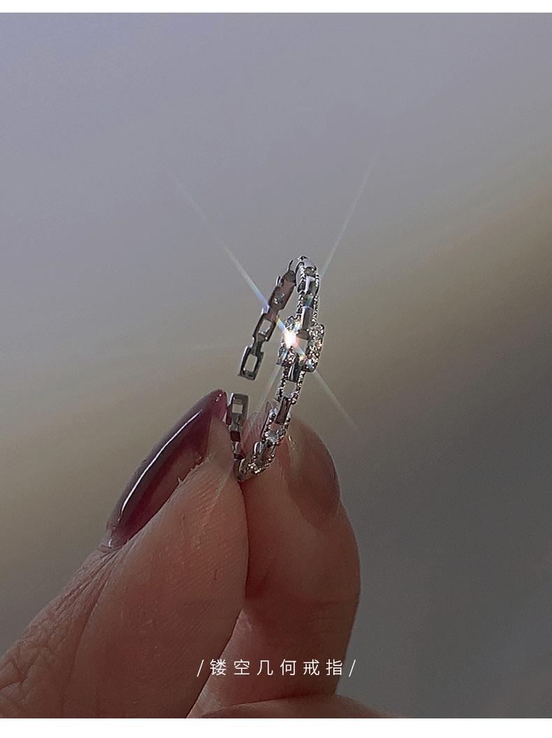 Anillo de Cadena de Diamantes Cuadrados para Mujer, Anillo de Circonita con Micropavé de Moda, Anillo de Dedo Índice con Diseño Nicho de Estilo Coreano con Abertura Ajustable