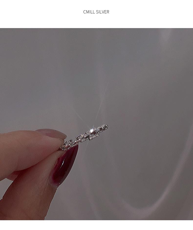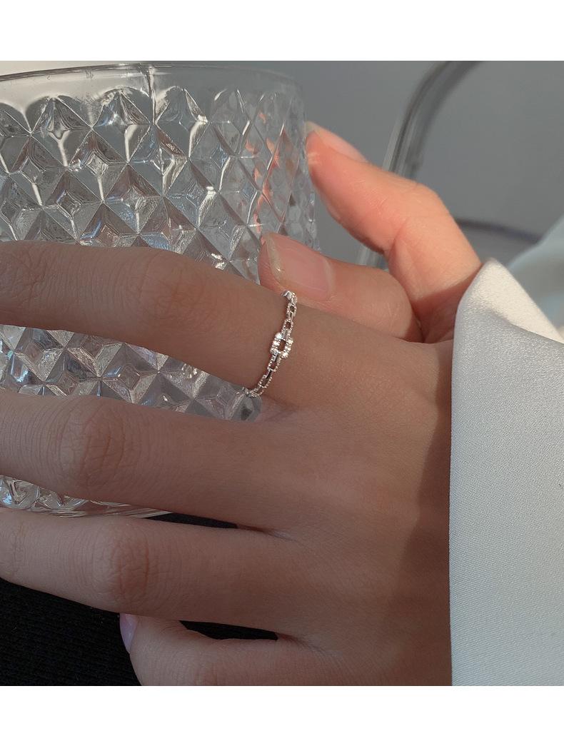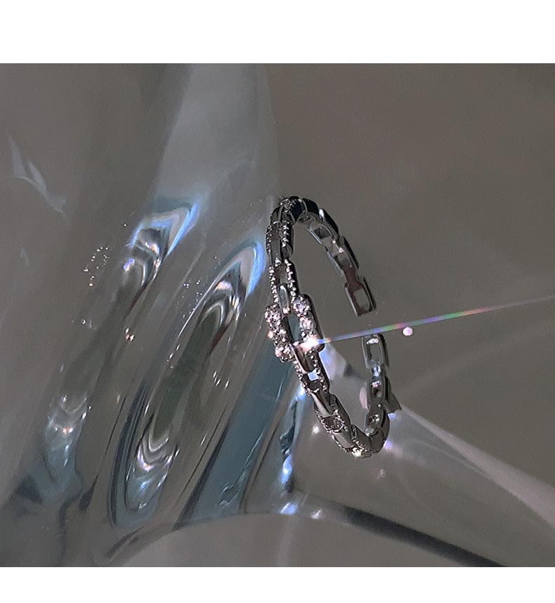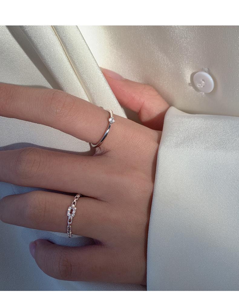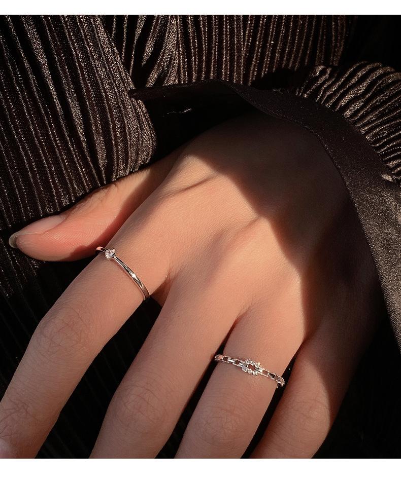 Anillo de Cadena de Diamantes Cuadrados para Mujer, Anillo de Circonita con Micropavé de Moda, Anillo de Dedo Índice con Diseño Nicho de Estilo Coreano con Abertura Ajustable