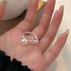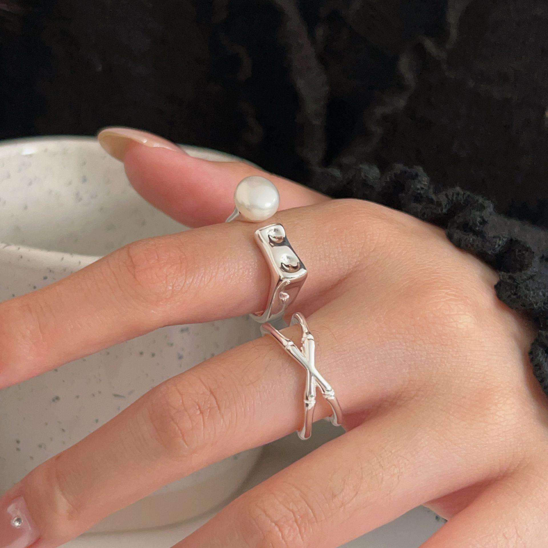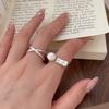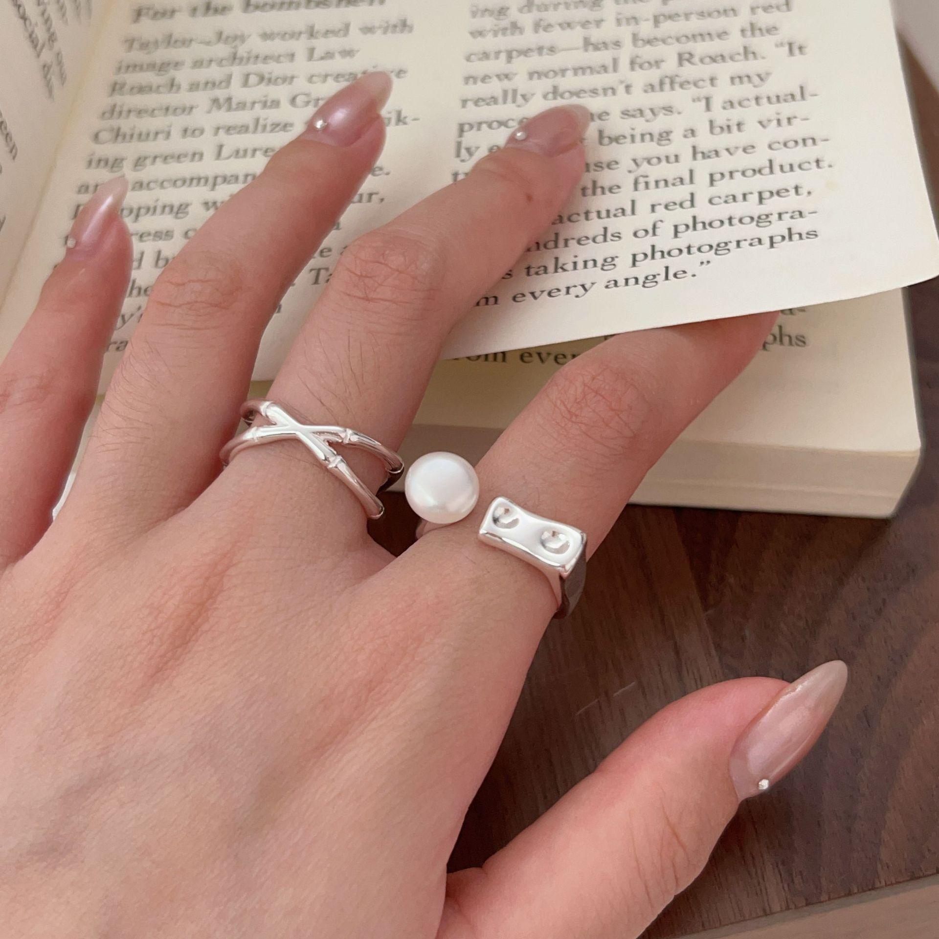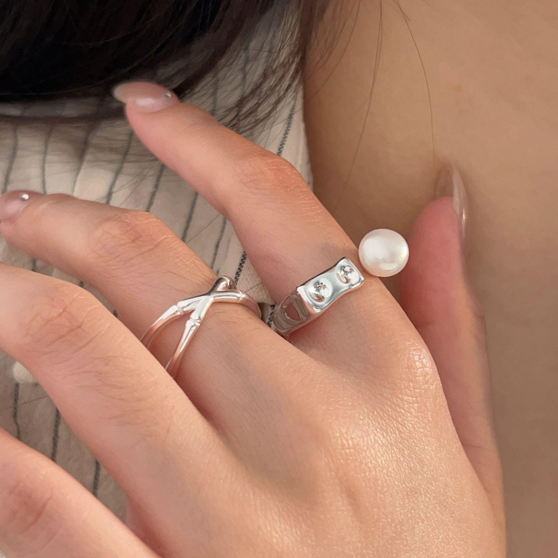 Anillo de perla natural de plata esterlina Zhiheng S925 para mujer, anillo entrelazado simple, estilo frío japonés y coreano, novedad 2024
