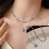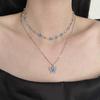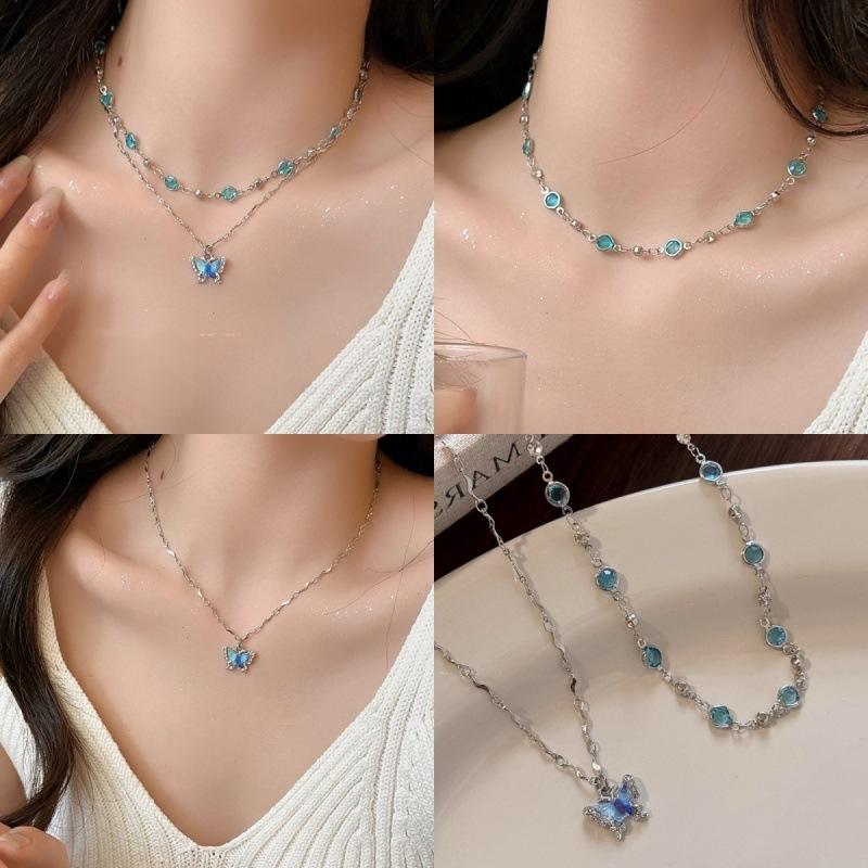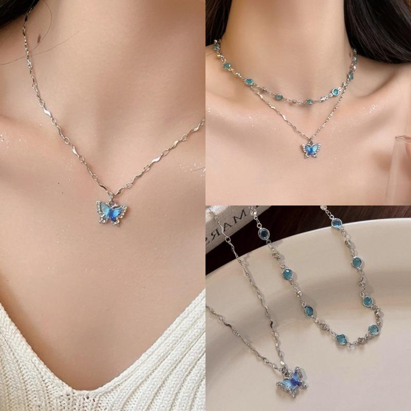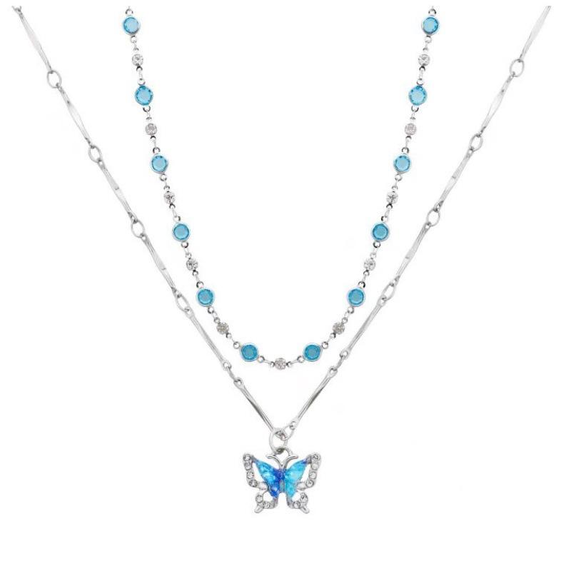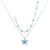 Collar de doble capa con mariposa de diamantes de imitación azules, elegante y de moda para mujer, con cadena de clavícula de alta calidad.