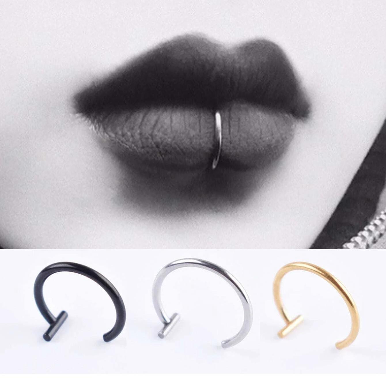 Anillo nasal unisex de acero inoxidable con forma de T, redondo, para labio, con perforación nasal, tricolor, E7976