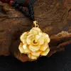 Colgante de rosa de oro real de 24 quilates con baño de cobre estilo étnico para mujer, collar de flor de oro duro 3D de imitación, con forma de rosa de oro de arena de Vietnam