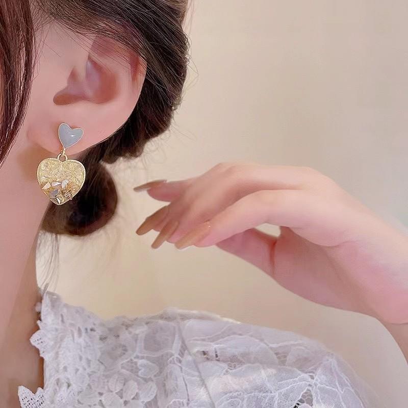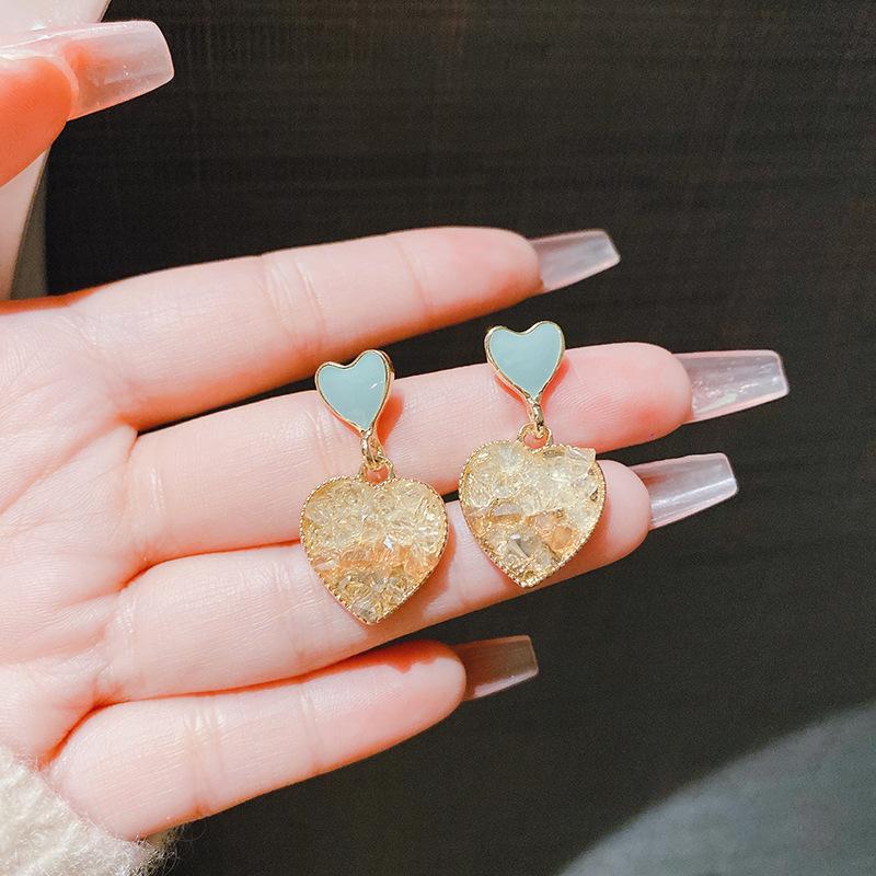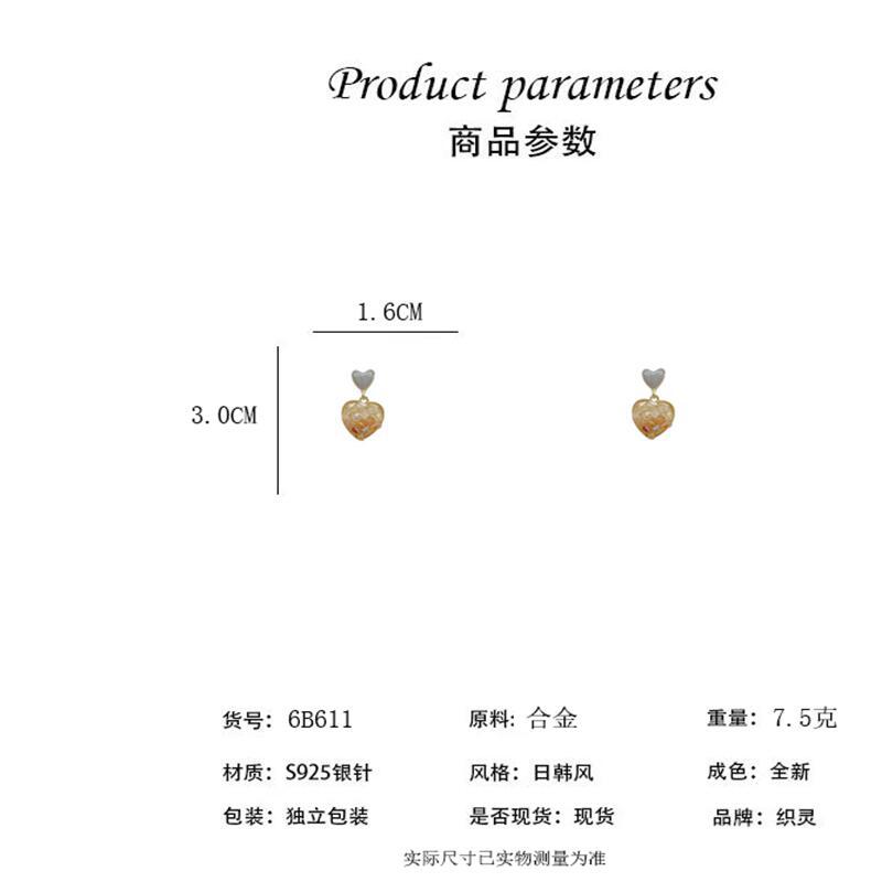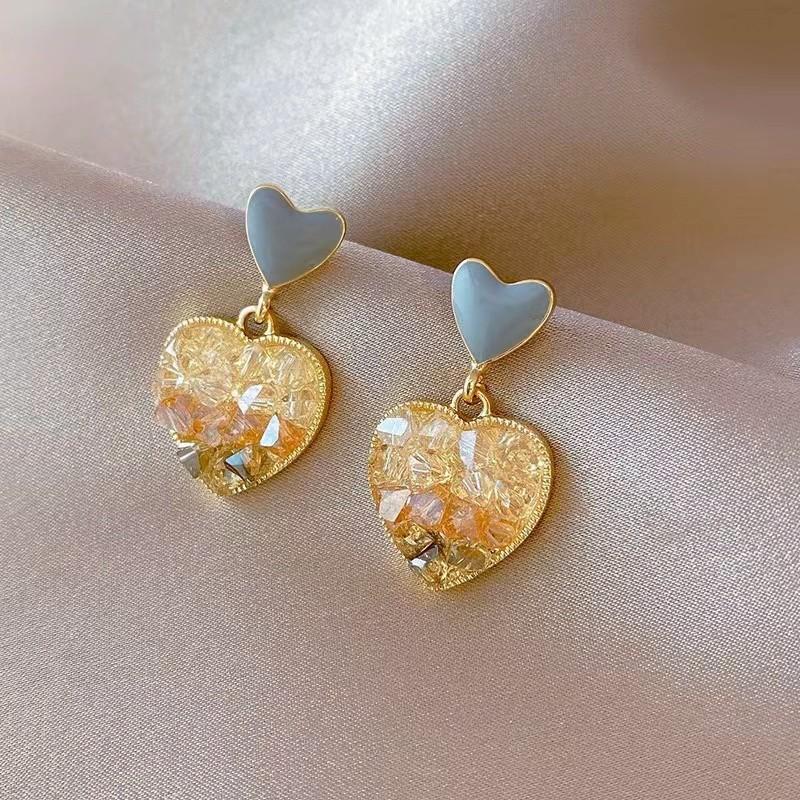 Pendientes de plata s925 con cristales de amor y aguja para mujer, estilo retro de Hong Kong, ligeros, lujosos, con diseño de nicho y tendencia de moda.
