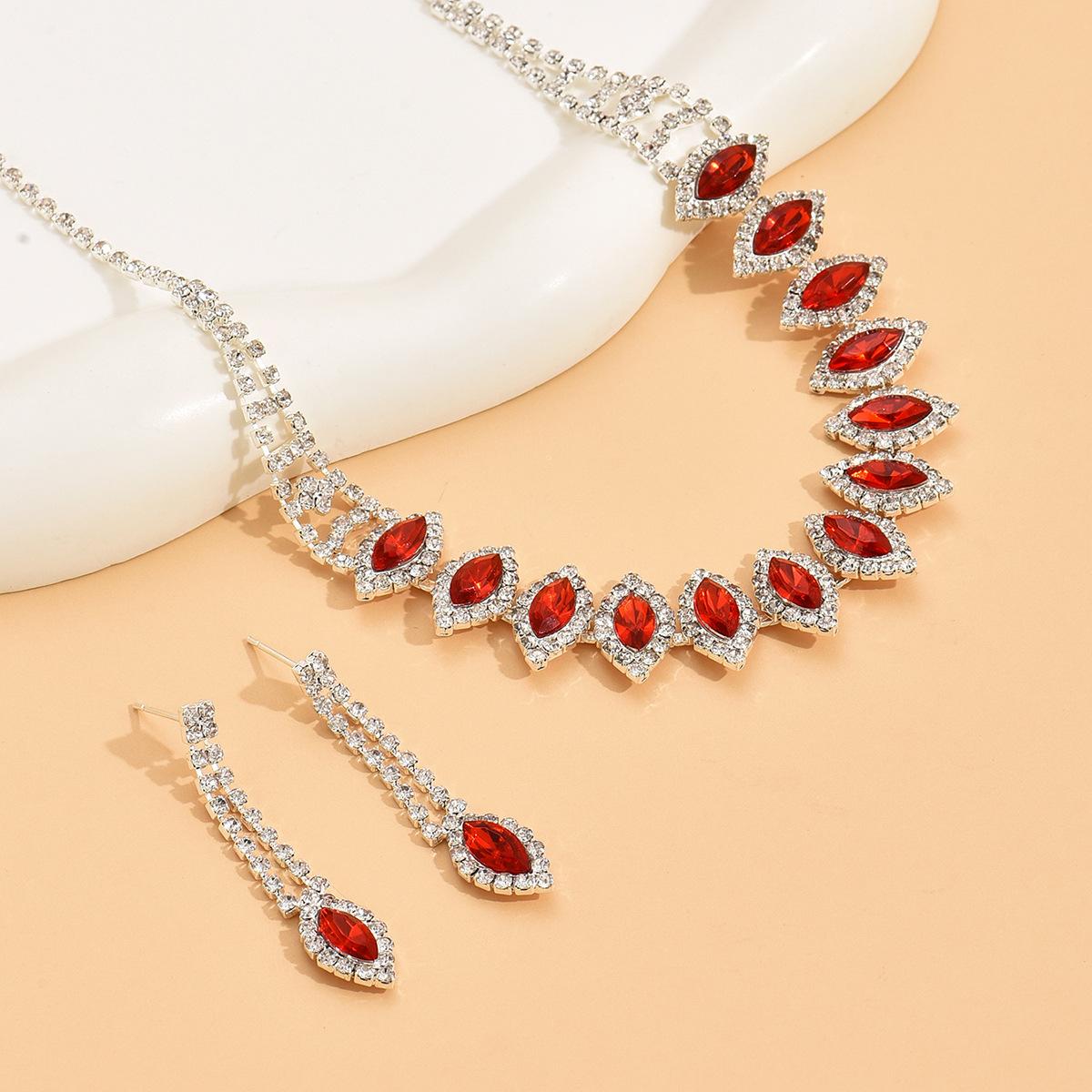 Marca mayorista de joyería transfronteriza, nuevo juego de joyería de alta gama con incrustaciones de cristal para mujer, collar, aretes, traje de joyería, fabricante