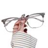 [Protección de las gafas] 1. Ponerse y quitarse las gafas con una sola mano alterará el equilibrio entre la montura y la derecha, causando deformaciones. Se recomienda sujetar las patillas con ambas manos y quitárselas en direcciones paralelas a ambos lados de la mejilla. 2. Al ponérselas y ponérselas, generalmente doble primero la patilla izquierda para evitar deformaciones en la montura. 3. Se recomienda enjuagar las gafas con agua limpia y usar toallas de papel para absorber el agua, y luego usar un paño especial para gafas para intentar limpiarlas. Debe sujetar el alambre del borde de la montura a un lado del espejo de limpieza y limpiar las lentes suavemente para evitar dañar la montura o las lentes causados por una fuerza excesiva. 4. Cuando no use gafas, envuélvalas con un paño para gafas y guárdelas en el estuche. Si lo coloca temporalmente, coloque el lado convexo de las gafas hacia arriba, de lo contrario, las lentes se rayarán fácilmente. Al mismo tiempo, las gafas deben evitar el contacto con elementos corrosivos como repelentes de insectos, productos de limpieza de inodoros, cosméticos, laca para el cabello, medicamentos, etc., y evitar la luz solar directa a largo plazo y las altas temperaturas (superiores a 60 °C); de lo contrario, las lentes y los marcos se deteriorarán, deteriorarán, decolorarán, etc. 5. Acuda a una tienda profesional para cirugía plástica con regularidad. La deformación del marco ejercerá una carga sobre la nariz y las orejas, y las lentes pueden aflojarse fácilmente. 6. No use gafas durante el ejercicio extenuante para evitar un fuerte impacto que pueda causar que las lentes se rompan, causando daños en los ojos y la cara; no use lentes desgastados para evitar que la dispersión de la luz cause pérdida de visión; no mire directamente al sol ni a una luz deslumbrante intensa para evitar daños en los ojos. 7. Mantenimiento de las gafas de sol: Unas gafas de sol hermosas le permiten estar activo bajo el sol, tan libre. De hecho, las gafas de sol pueden bloquear la luz solar, pero no pueden bloquear el daño de la contaminación, por lo que debe cuidarlas bien para evitar perder la cara. De hecho, el método para cuidar las gafas de sol es similar al de las gafas comunes. Limpiarlas, doblarlas y guardarlas debe convertirse en un hábito. Sin embargo, las gafas de sol se quitan y se ponen con frecuencia, y si no se tiene cuidado, se rayan. Por lo tanto, hay algunos pequeños detalles que me gustaría recordarles: si las gafas de sol tienen manchas, no las froten con las uñas, ya que son fáciles de rayar. Superficie. Cuando no se usan, muchas personas las cuelgan en la cabeza, el cuello o el bolsillo. En ese momento, no se debe mover demasiado para evitar rasgarlas o dañarlas. También se pueden guardar en un bolso. Se recomienda colocarlas primero en un estuche rígido y luego en el bolso para evitar que las lentes se dañen con llaves, peines, placas de cobre u otros objetos pequeños, o que se contaminen con lápiz labial u otros cosméticos.