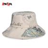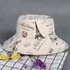Sombrero de pescador de ala grande con estampado de moda europea y americana, estilo Harajuku, plegable, de algodón y cáñamo, venta al por mayor