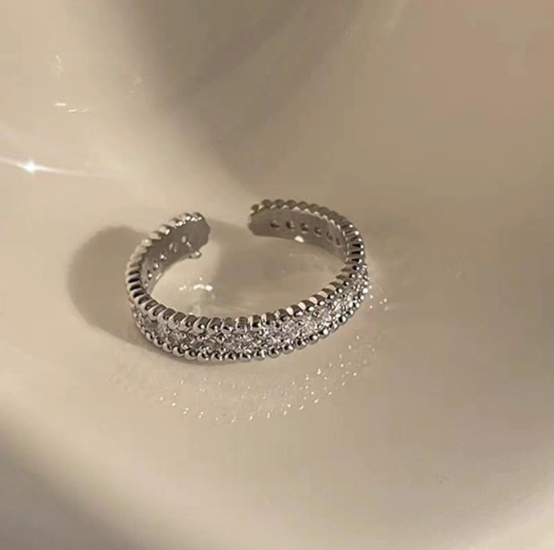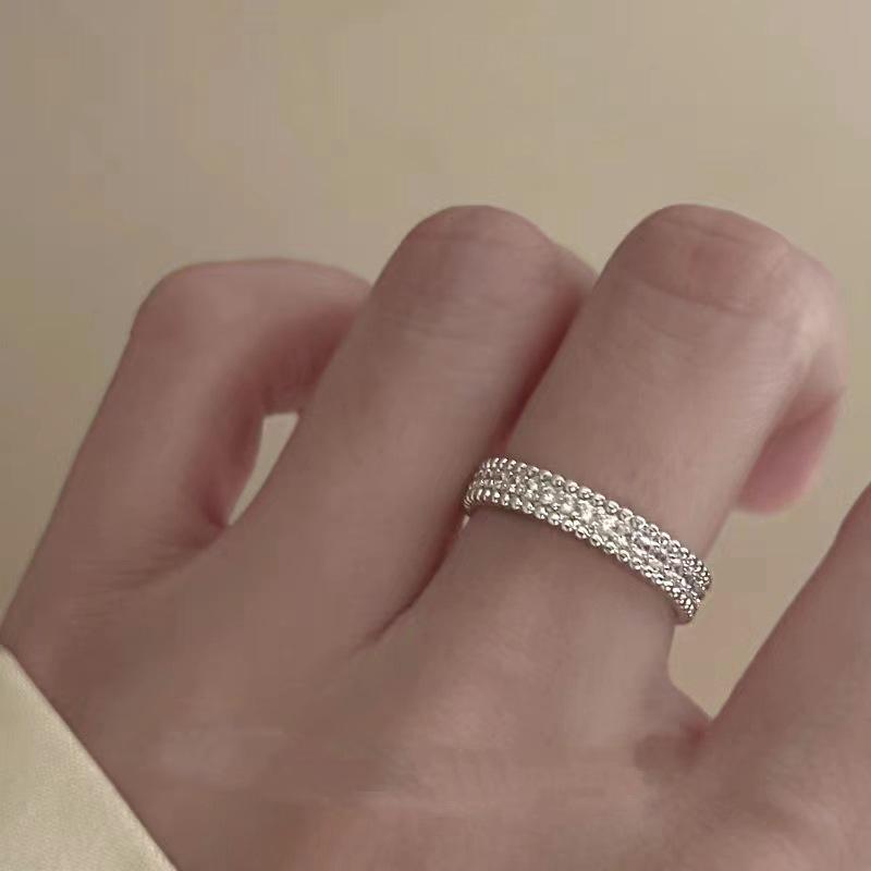 Anillo abierto de cuentas retro personalizado europeo y americano nuevo 2024, anillo brillante de diamantes completo, anillo simple y avanzado