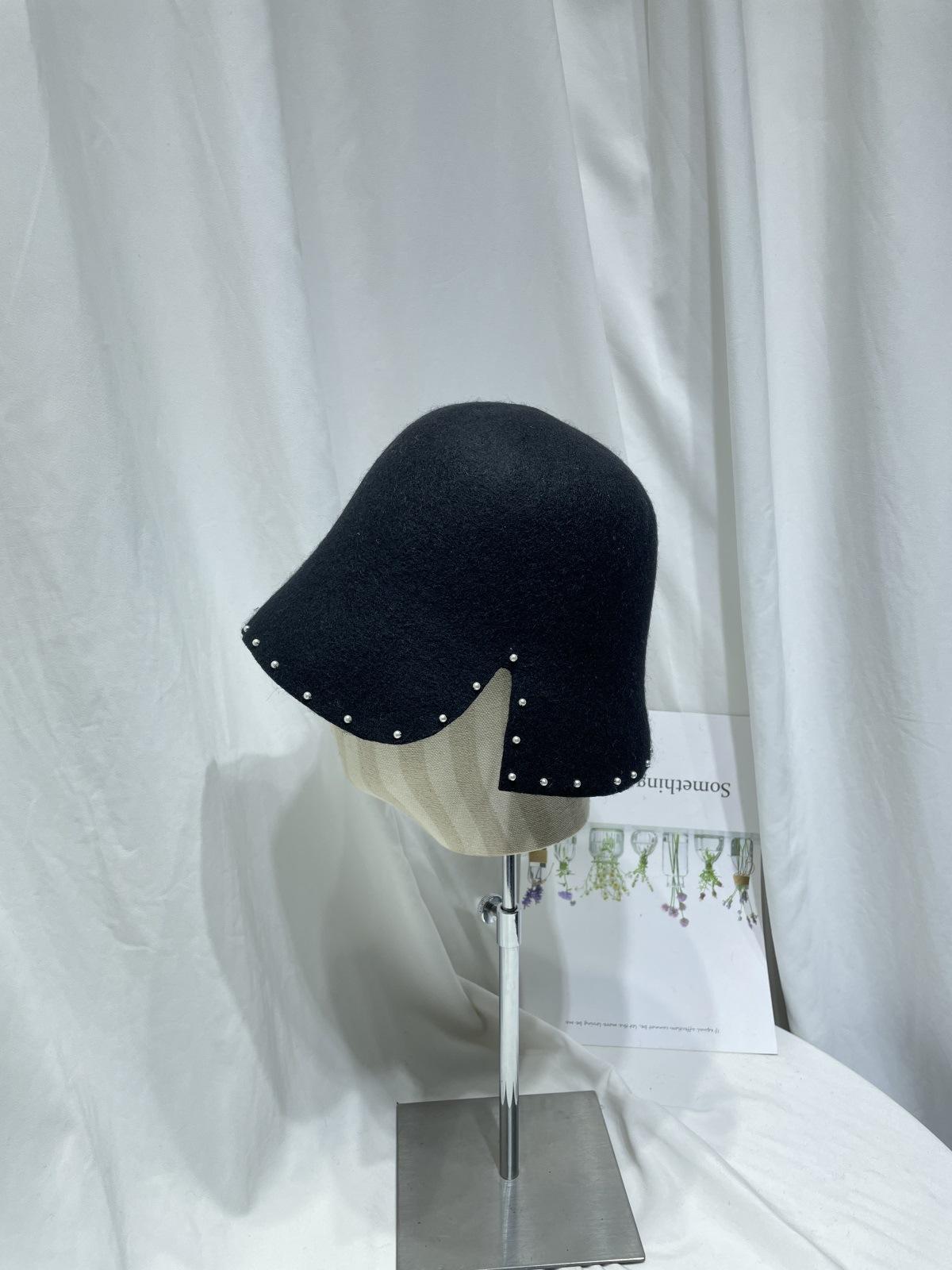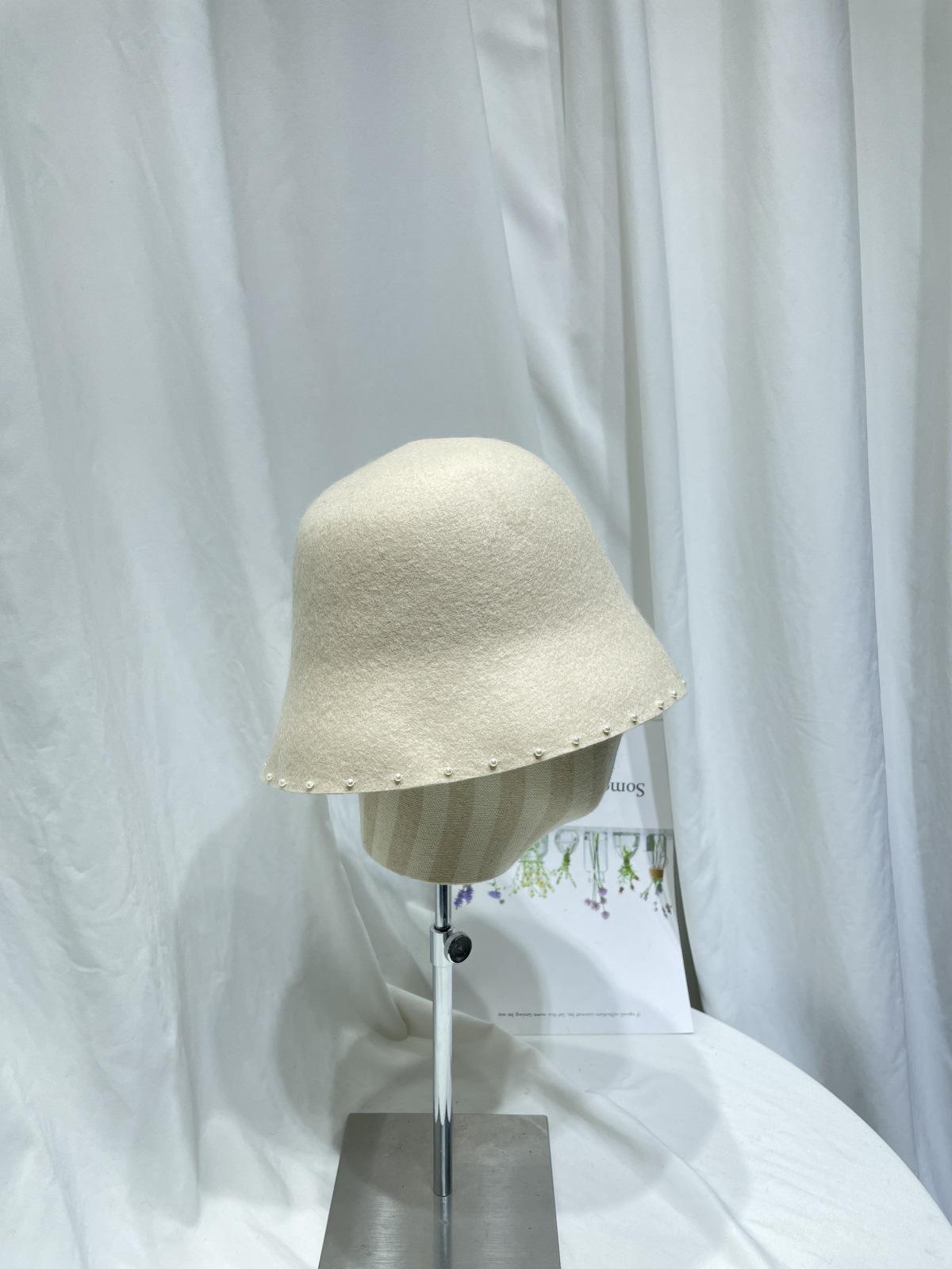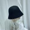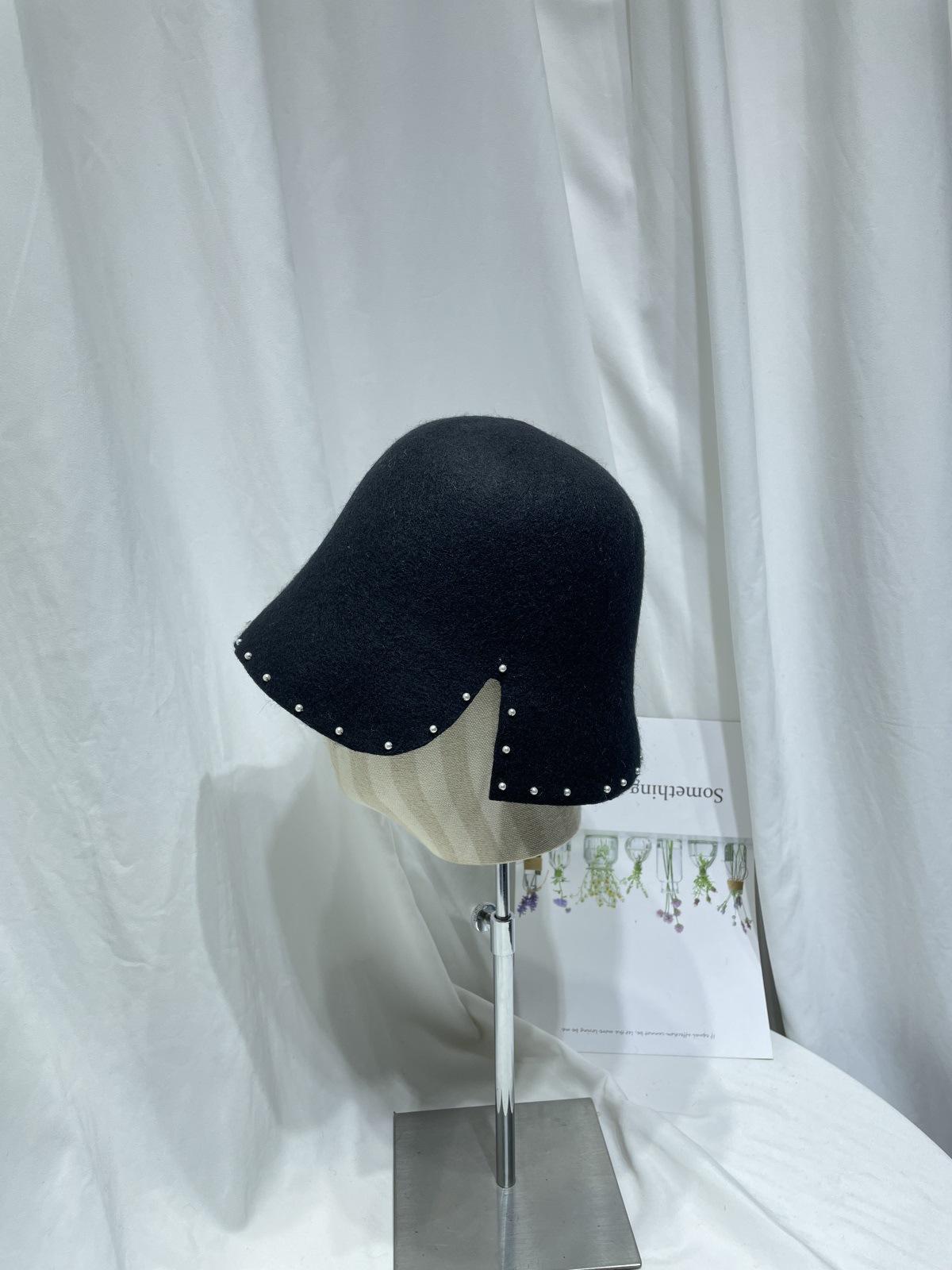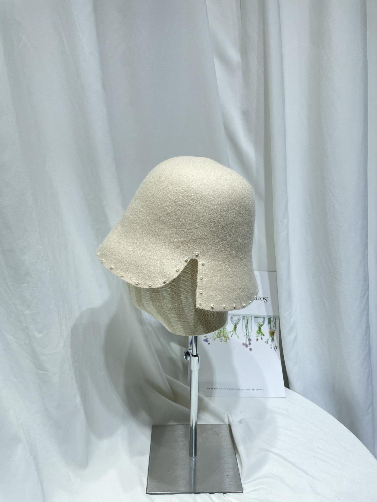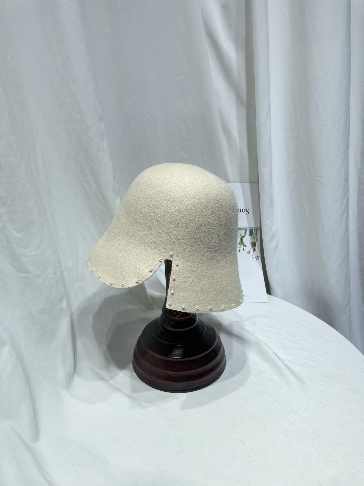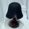 Gorro de lana estilo Hepburn francés para mujer, otoño e invierno, estilo Chanel, gorro de lavabo de lana con división de perlas, elegante gorro de pescador con temperamento