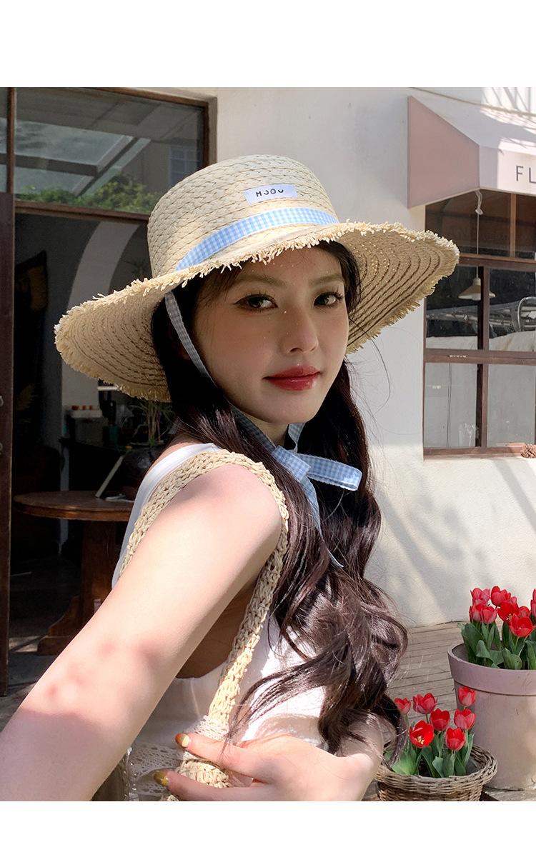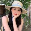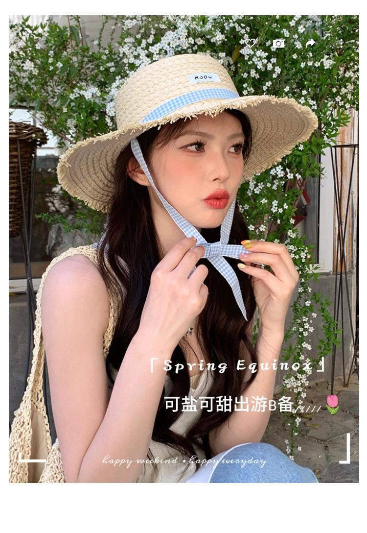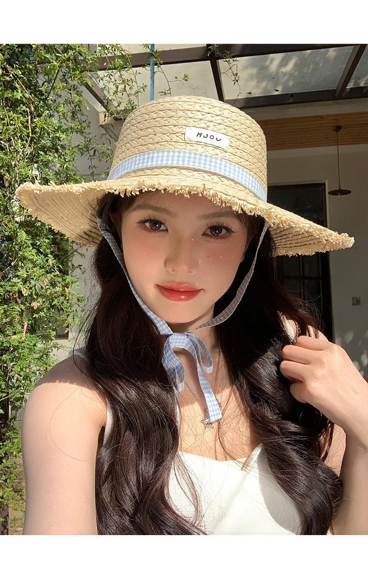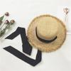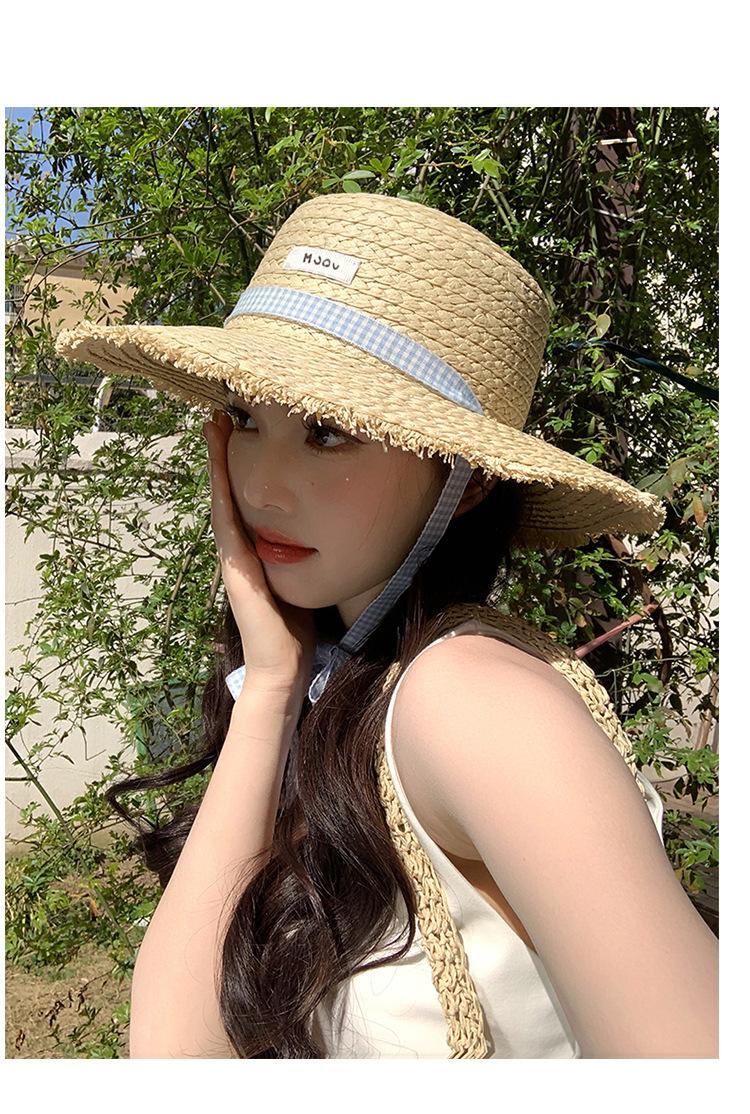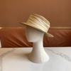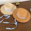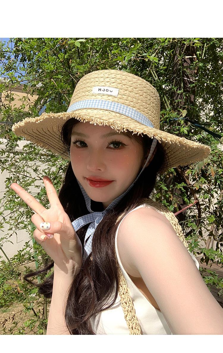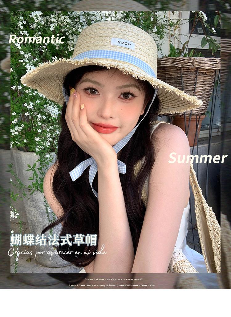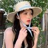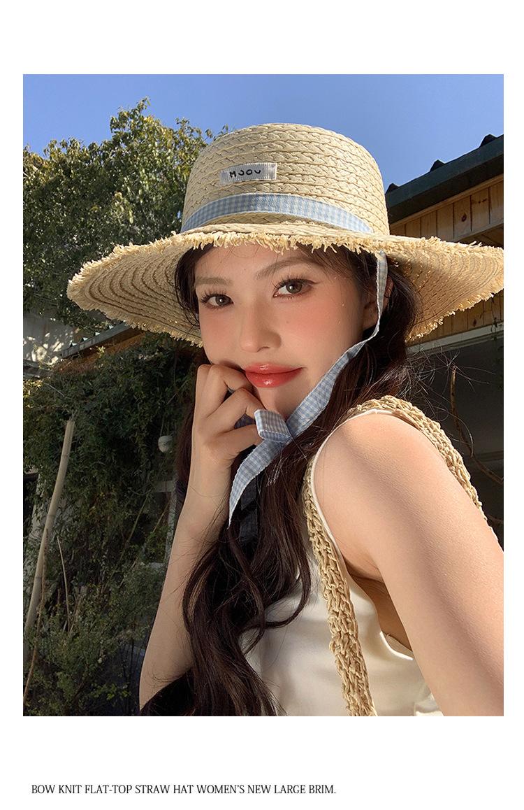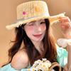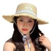 Sombrero de Paja de Verano Francés Dulce Combinable de Copa Plana Tejido con Cordones para Mujer Sombrero para el Sol de Ala Ancha Sombrero de Playa
