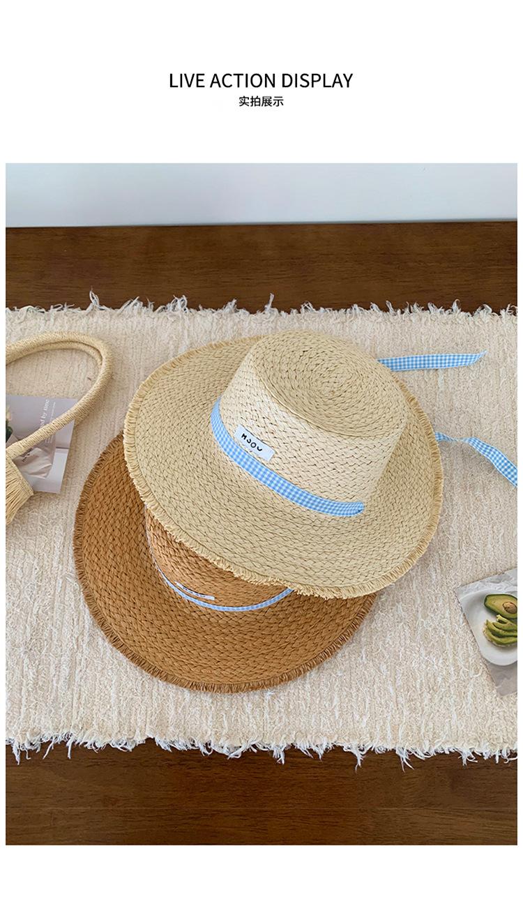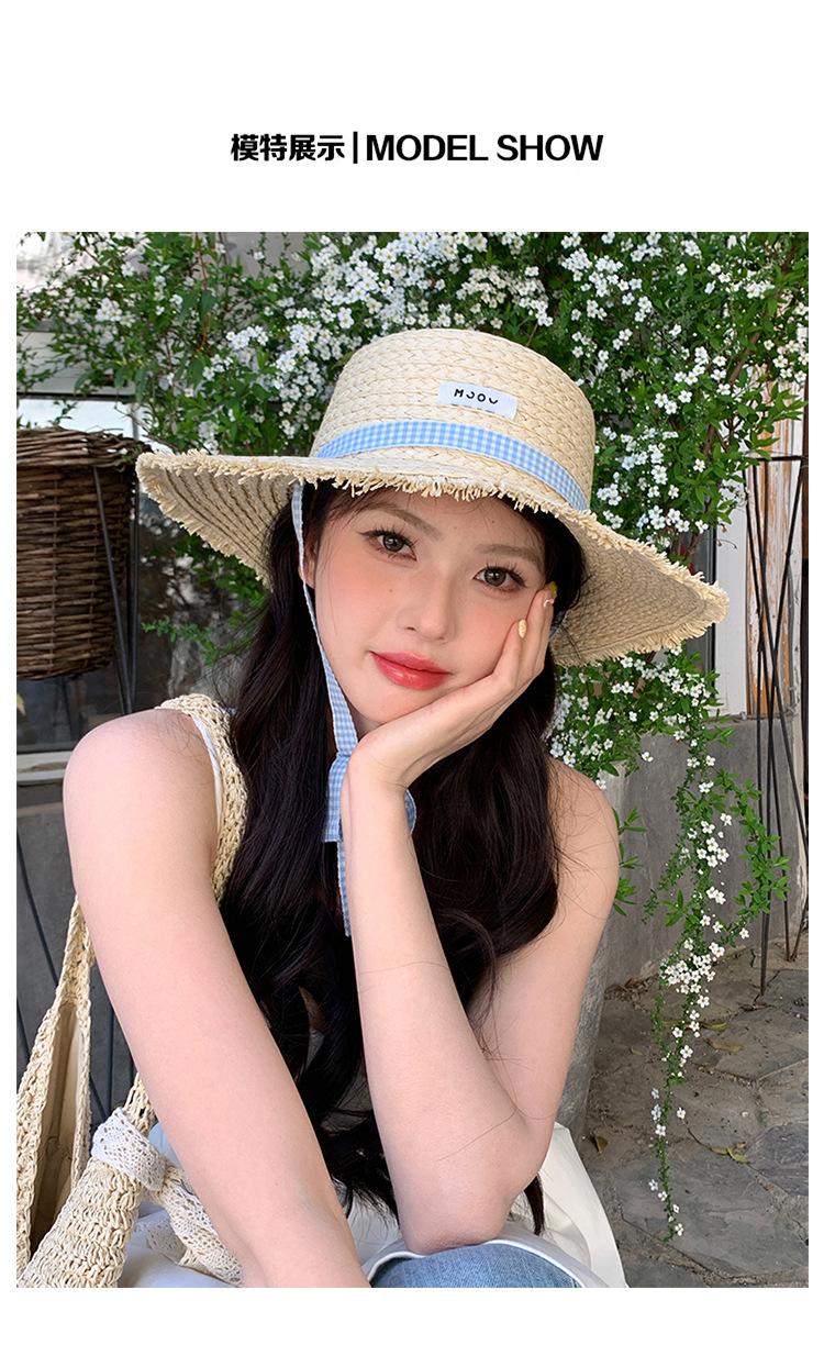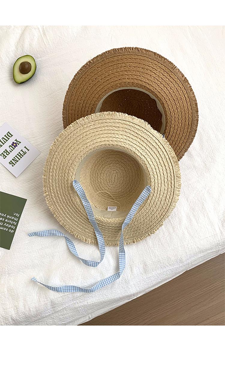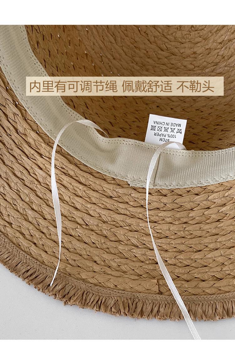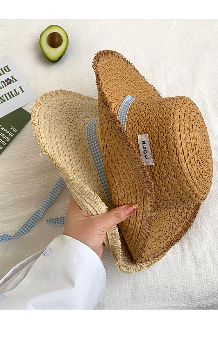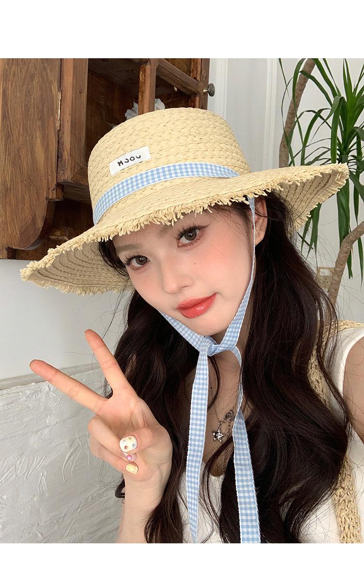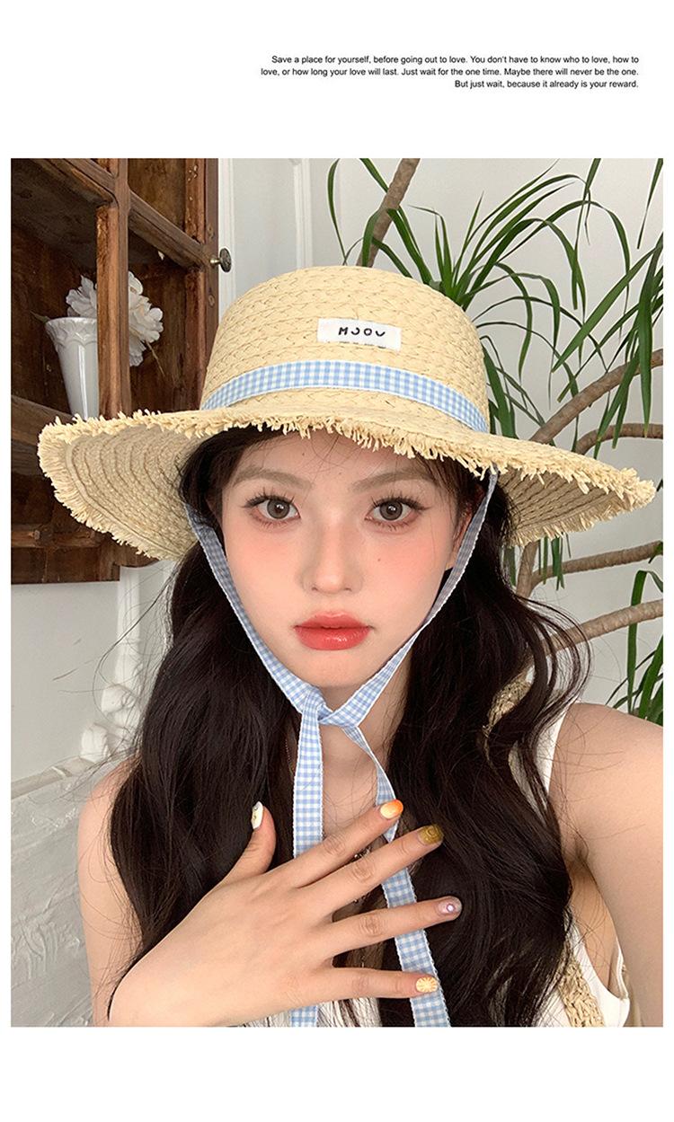 Sombrero de Paja de Verano Francés Dulce Combinable de Copa Plana Tejido con Cordones para Mujer Sombrero para el Sol de Ala Ancha Sombrero de Playa
